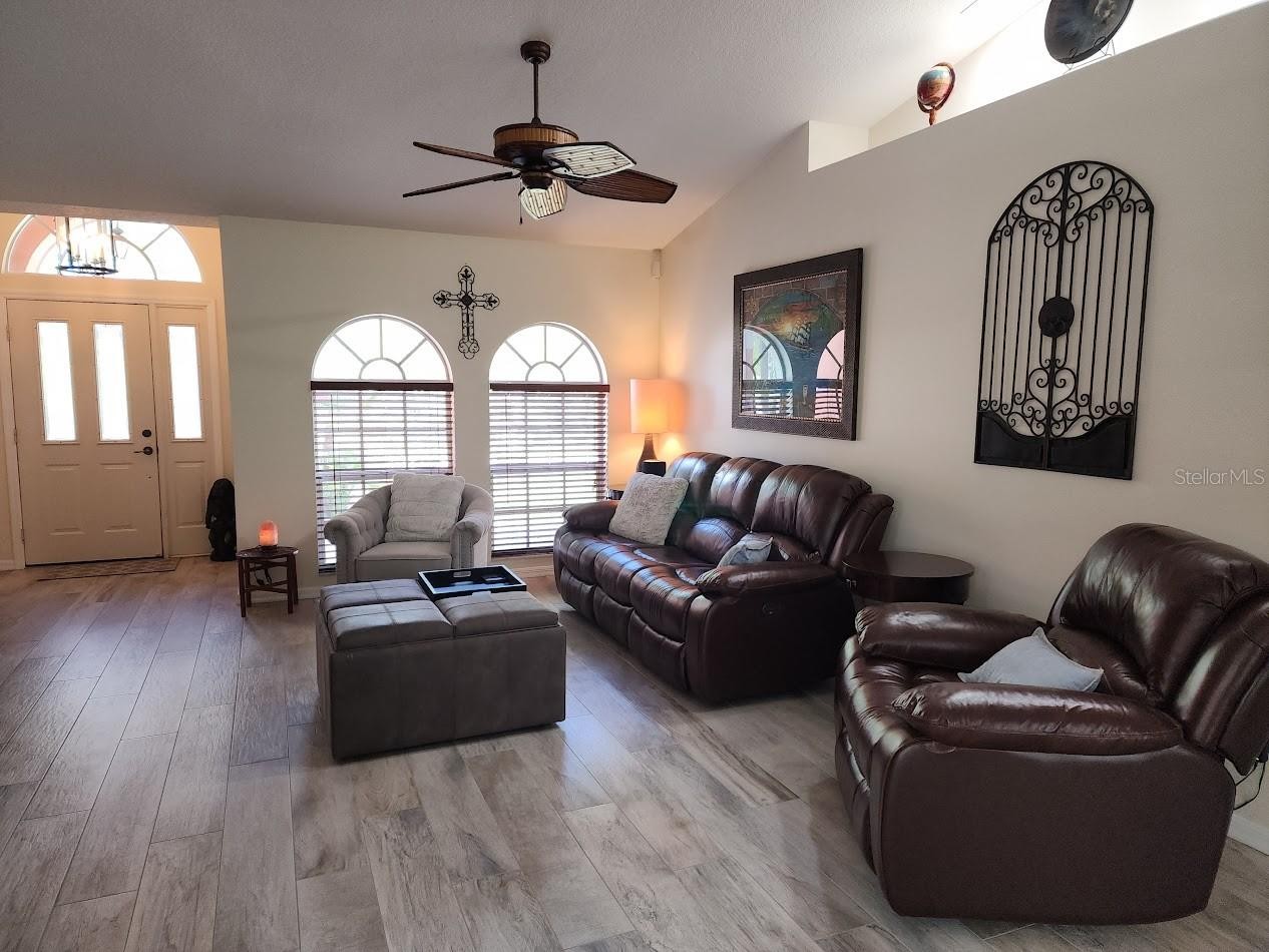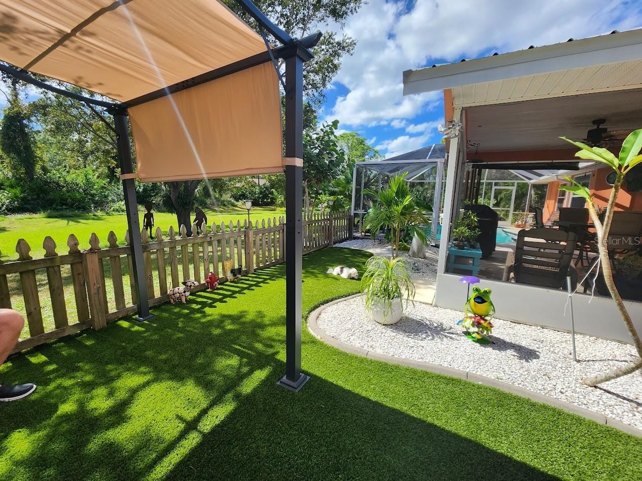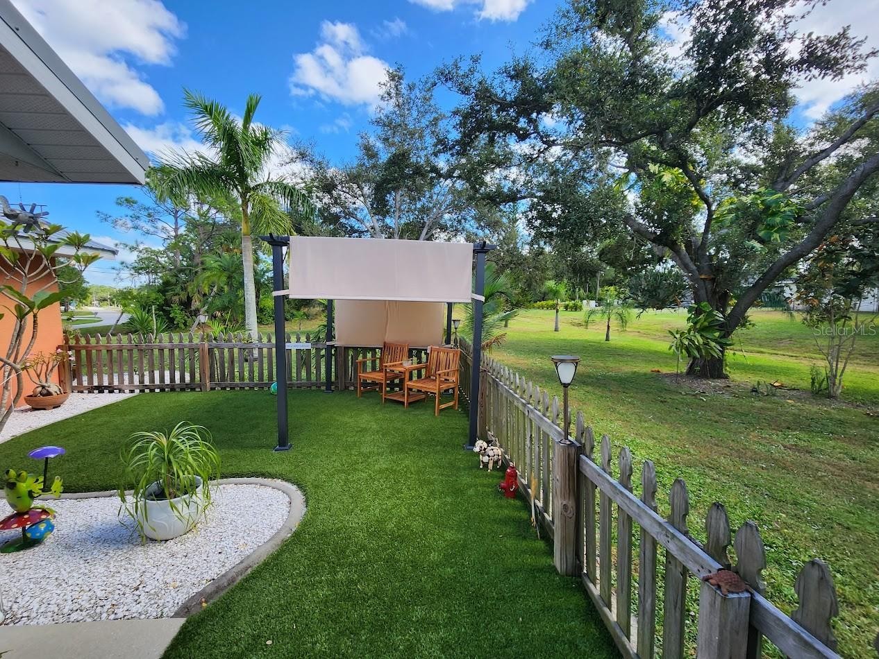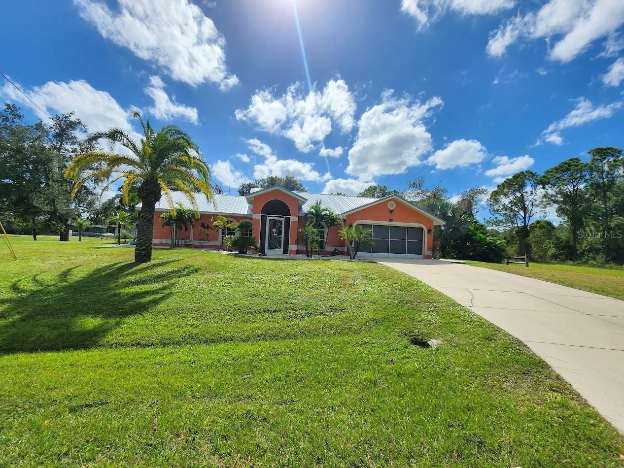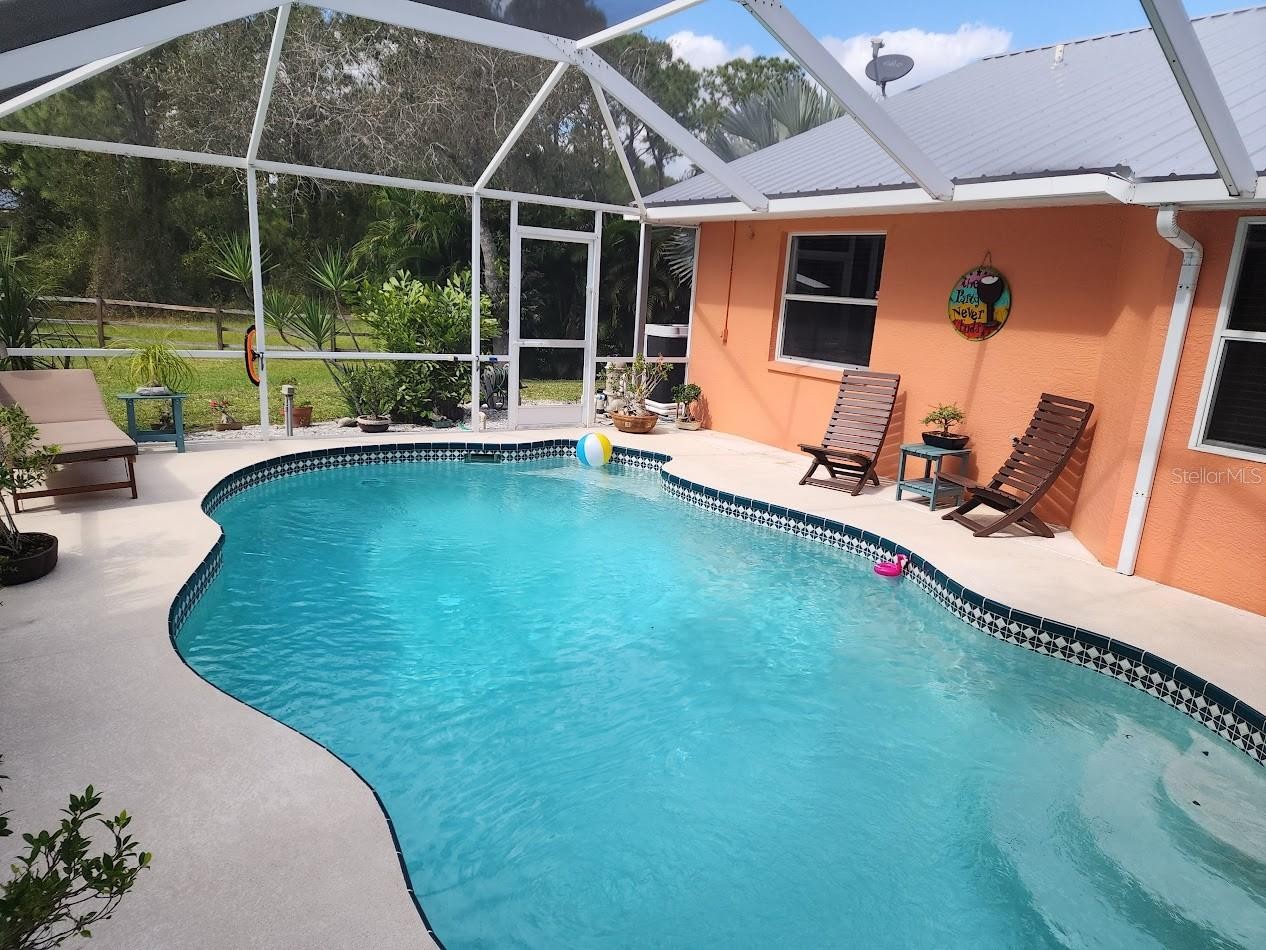Step into your tropical paradise and prepare to be impressed by this impeccably maintained and truly stunning home. This 3/2 POOL home has a split floor plan, cathedral ceiling, walk-in closets, storage closet and pantry, full attic access and is in move-in ready condition. All this on a double pie lot with many updates. You will absolutely love your new outdoor living area. It has a large yard that features a park-like setting with full mature landscaping, a beautiful in-ground pool with cage and tropical outdoor area for all your entertaining. As an added bonus, it has an adorable fenced in play/pet yard with artificial turf. Major updates add peace of mind Including FULL SECURITY SYSTEM, CAMERAS and MOTION DETECTION LIGHTING. 2022-2023 updates include: NEW CARPETING and TILE FLOORS, NEW METAL ROOF (40 yr warranty), NEW HURRICANE GARAGE and SIDE DOOR, NEW PATIO SCREENING, NEW PECKY CYPRESS PATIO CEILING, NEW WATER HEATER, POOL HEATER, POOL PUMP (2025) AND WELL AND WATER SYSTEM, 16x10 FREE STANDING SHED WITH ELECTRICITY and a WHOLE HOUSE GENERATOR PLUG---- No HOA, most furnishings negotiable. This home’s location is another standout feature. Ideally located just 30 minutes from award-winning Gulf beaches and close to shopping, dining, golf, medical facilities, and entertainment, everyday convenience is truly at your doorstep. Whether you're looking for a year-round residence or a seasonal Florida retreat, this property is suitable for a wide range of lifestyles. Homes like this are rare in today’s market. Hurry and make this your new home before someone else does!