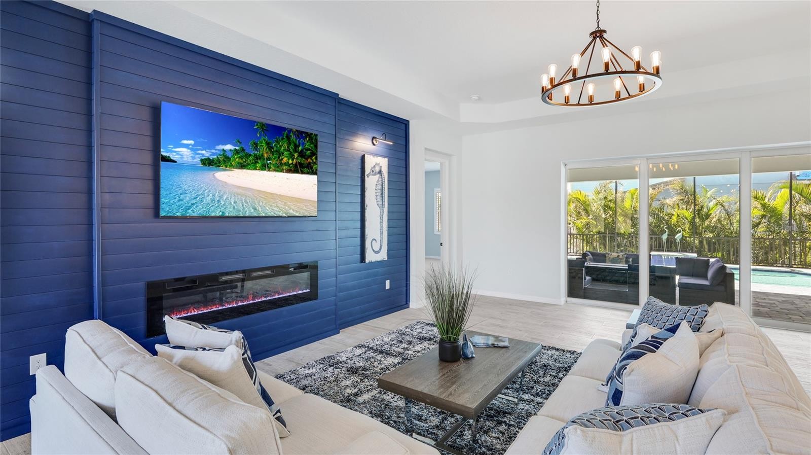 Welcome to this stunning 4-bedroom plus den or possible 5th bedroom home, just a few minutes' bike ride from the beautiful Anna Maria Beach. Built just 3 years ago presents just like new. This home boasts modern luxury with a heated saltwater pool and an extended lanai, complete with custom pavers and a caged pool area perfect for entertaining or relaxing. Inside, enjoy high-end appliances, porcelain ceramic plank flooring, and a spacious walk-in pantry. The living room is an entertainer's dream, featuring a custom wall with an sleek fireplace and a 75-inch high-def TV. The owner's suite offers a private retreat with his and her walk-in closets and a custom glass and ceramic tile walk-in shower with double sinks. Pocket sliders lead to the pool area, creating a seamless indoor-outdoor living experience. The kitchen is a chef’s delight, featuring a large quartz island, 42” custom cabinetry with crown molding, and smart home technology. This home is built to the latest flood elevation standards, with hurricane windows and doors offering added peace of mind. It has been tested with no damage from two hurricanes. Additional features include elevated construction, enclosed soffits, gutters on all four sides, and a two-zone Trane HVAC system. The garage is ready for an electric vehicle with a dedicated plug and features an epoxy floor. A 50-gallon water heater, paver driveways, and walkways complete this move-in-ready masterpiece. Don’t miss out on the opportunity to live in this gorgeous, meticulously designed home minutes from the beach! COMING SOON. COMMUNITY HAS BEEN APPROVED FOR 15 BOAT SLIPS. SELLER HAS PAID AND CONTRIBITED TO THE RESERVE STUDY FEE & IS ONE OF THE ELIGIBLE HOMES FOR THE BOAT SLIPS WHEN THEY BECOME AVAILABLE TO PUCHASE . THERE WILL ALSO BE A SUNSET PIER, KAYAKE STORAGE & LAUNCH AREA.