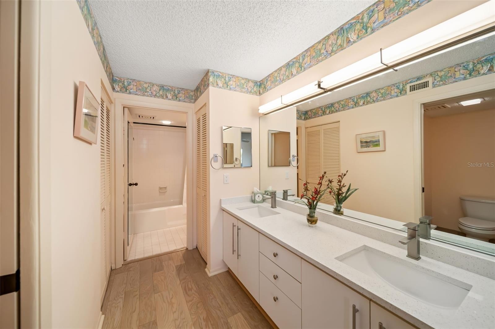 Welcome to a true hidden gem of tropical paradise at Bayport Beach and Tennis Club on Longboat Key. Designed by renowned architect Tim Seibert, this one-of-a-kind community spans 27 lush, tropical acres and offers an unmatched coastal lifestyle with 1,200 feet of pristine private beach, where chairs and umbrellas are ready for you to enjoy endless days along the Gulf. As you arrive, you’re immediately surrounded by beautifully maintained grounds and the relaxed, resort-style atmosphere that makes this community so special. Stepping inside this spacious 2 bedroom, 2 bathroom furnished residence, you’re welcomed by a light and airy interior with terracotta-look tile flooring flowing throughout the main living areas, setting a warm coastal tone. The kitchen has been thoughtfully renovated with all new cabinetry, under-cabinet lighting, quartz countertops, a modern backsplash, and stainless steel appliances, creating a clean and functional space that opens seamlessly into the living and dining areas. The expansive living room is both inviting and impressive, designed to feel like a single-family home, with stunning Sarasota Bay views that instantly capture your attention. Shutter doors provide privacy while leading into a sunroom, offering a flexible space to relax and take in the scenery. The owner’s suite is a true retreat, complete with a dedicated office nook perfectly positioned to enjoy peaceful water views. The ensuite bathroom features dual quartz-topped vanities and a walk-in closet, combining comfort and convenience. A split bedroom floorplan ensures privacy, with the guest bedroom offering its own walk-in closet and easy access to the updated guest bathroom. An in-unit laundry area adds to the everyday ease of living. Step outside onto your expansive private deck, where breathtaking views of Sarasota Bay create the perfect backdrop for morning coffee, evening wine, or entertaining guests while surrounded by nature. Bayport Beach and Tennis Club offers an incredible array of amenities, including a Junior-Olympic heated pool, four Har-Tru tennis courts, a fitness center, fishing pier, kayak storage + launch, and an active clubhouse filled with social events. Scenic walking trails wind through the property, where you’ll often spot local wildlife such as osprey, herons, ibis, and egrets, enhancing the serene, natural setting. Just moments away, Bayfront Park offers pickleball courts, green space, and stunning bay views, while St. Armands Circle provides exceptional shopping and dining. A short drive over the iconic Ringling Bridge brings you into vibrant downtown Sarasota, known for its world-class arts scene, including theaters, museums, galleries, and waterfront dining. From private beach access to unmatched amenities and breathtaking bay views, this residence offers the perfect blend of comfort, nature, and coastal elegance in one of Longboat Key’s most sought-after communities.