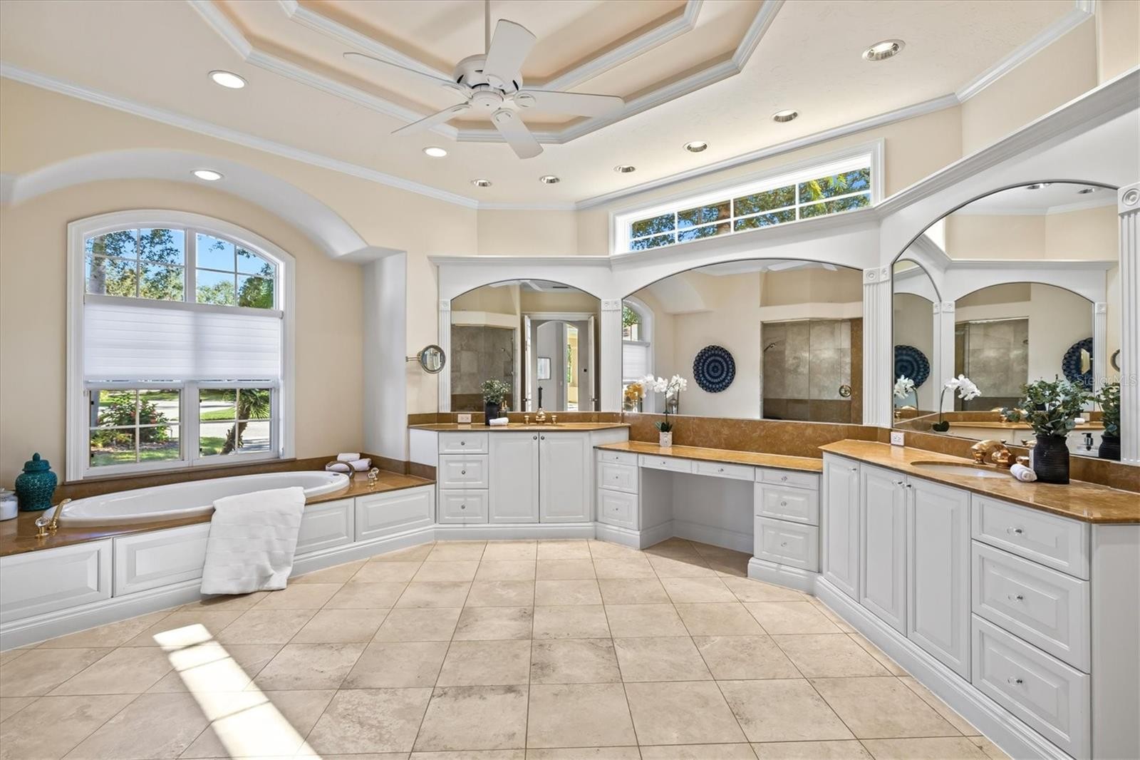 This meticulously maintained, custom-built Dan Najjar Sterling Manor home offers timeless elegance and exceptional craftsmanship in the sought-after Richmond Park neighborhood of award-winning University Park Country Club. With 3,732 square feet of living space on a .36-acre lot, this one-story, split-floorplan home features 3 bedrooms, 3 bathrooms, a study, and a 3-car garage. A circular driveway with landscape lighting welcomes you to the home, where the front entry provides a brilliant direct view of the sparkling pool and spa and serene pond beyond. Expansive living areas open seamlessly to the outdoors through three sets of sliding glass doors, leading to the screened lanai with a large pool featuring automatic popups, spa with gas heating, and a full outdoor kitchen complete with Corian counters, sink, and built-in gas grill. Inside, the home is richly appointed with granite and marble surfaces, trayed and beam ceilings, and custom details throughout. The chef’s kitchen is both functional and refined, offering a Sub-Zero refrigerator, Thermador gas range and double oven, Bosch extra-quiet dishwasher, walk-in hidden pantry with built-in safe, refrigerated wine cabinet, instant hot water tap, and center island. The family room showcases a striking custom wood built-in with shelving, TV display, and hidden storage, while the study impresses with handsome wood cabinetry, Bermuda shutters, and built-ins designed for both beauty and functionality. The luxurious primary suite features a custom walk-in closet with two entrances, abundant built-in shelving and storage, and a spa-like bathroom with dual vanities, dual showers, Jacuzzi tub, and elegant cabinetry. Two additional guest bedrooms and baths provide comfort and privacy for visitors. This home also offers significant updates and conveniences, including a NEW TILE ROOF (2024) with transferrable warranty, NEW TWO-ZONE CARRIER HVAC SYSTEM (2025), NEW Rheem 55-gallon GAS WATER HEATER with expansion bladder and circulation system (2024), three Bose surround sound systems, eight Casablanca fans with Inteli-Touch controls, recessed lighting, and four unique chandeliers. Blending elegance, comfort, and thoughtful design, this Sterling Manor home presents a rare opportunity to enjoy resort-style living in one of Sarasota’s premier communities. University Park Country Club is consistently ranked one of the top courses in Florida featuring 27 holes of championship golf; tennis and pickleball; fitness center, croquet – as well as an array of social and group activities. Just a short drive outside this peaceful enclave is downtown Sarasota, with shopping, arts & theatres, museums, dining and entertainment, top-ranked healthcare, beaches and SRQ International Airport.