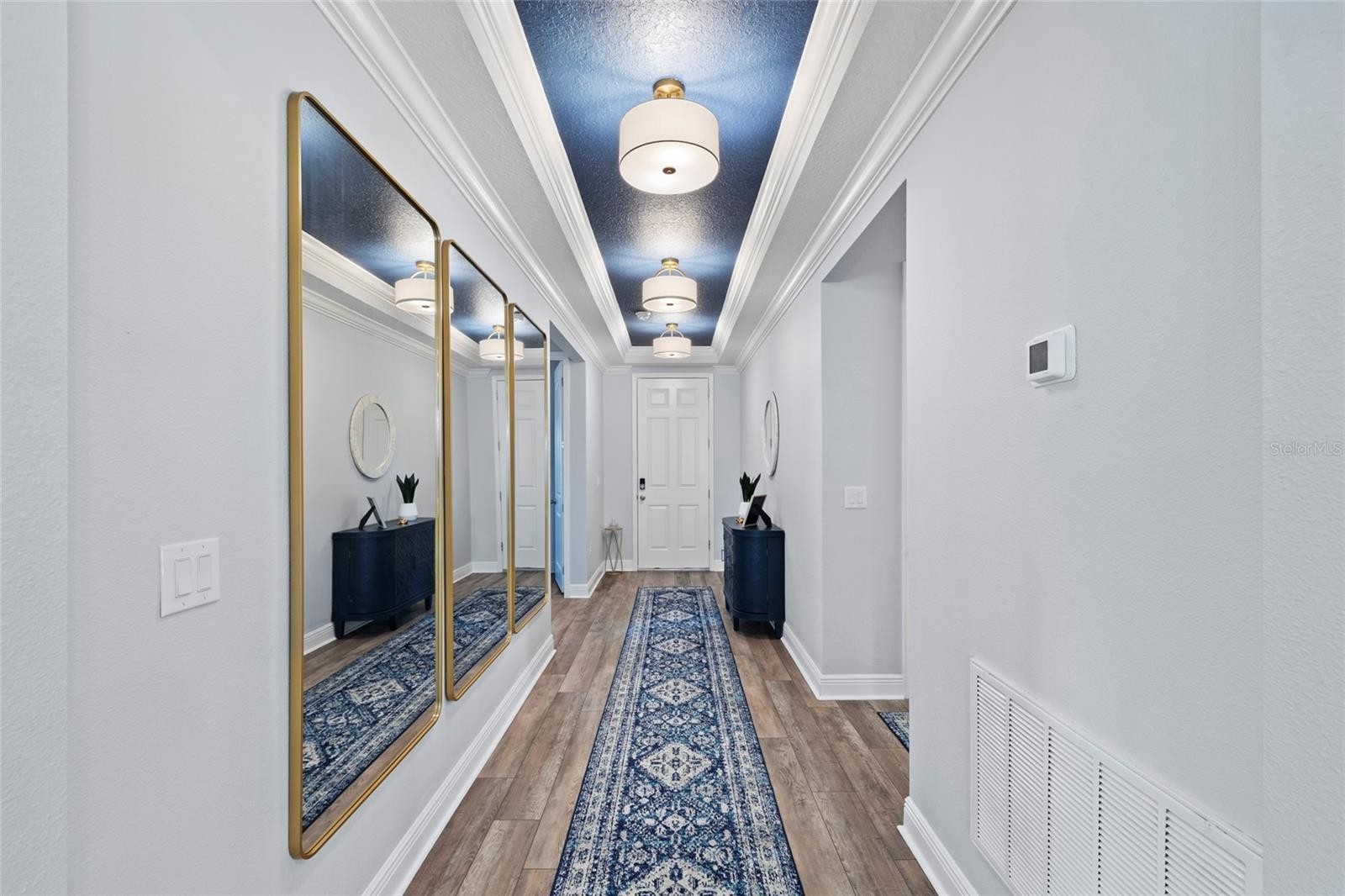 Under Construction. Builder incentives for year-end cover all closing up to $20,000 costs or offering a 2-1 Permanent Rate buydown, starting at 4.99%. You are going to love this new 2 story home-designed with you in mind. This floor plan has it all, starting with a very large 4 bed, 2.5 bath, covered lanai, 2 car garage with an open floor plan on both floors offering over 2700 sq. ft. of living space. The flexibility in a floor plan that you deserve where you decide how to use the flex room down stairs and the loft upstairs. As you enter through the double front doors your eyes are drawn to the natural light coming from the foyer that is open to above. The main level offers living area with open space for your dining/kitchen/great room, plus the flex room off the front entry. On the main level you will also find a resort style primary suite with a large walk in closet, a spa-like primary bath with room to roam and featuring a stand alone garden tub, Frost white quartz counters and white maple wood cabinets and frameless glass enclosure with a tiled shower to the ceiling. The natural light package provides plenty of light that shines through as you enter the kitchen with triple slider doors in the main living room, double sliders off the dining room and skylights over the larger center kitchen island. The kitchen counter space includes frost white quartz counter tops on top of 42" White Maple cabinets with a large center island to provide additional seating. The kitchen offers a convection slide in range with stainless steel range hood, built in microwave. Wood Like ceramic tile floors in the downstairs common areas and carpet in all bedrooms. There is a lot of storage in this home, starting with the walk in kitchen pantry, built in pocket office and closets on both floors. The 2nd floor offers, three bedrooms are nice size and all separated by an open loft area and guest bathroom that has two undermount sinks. Don’t forget the additional storage in the loft closet space and a second pocket office built. Other features include 8' tall interior doors, and 9'4" ceilings on both levels and block exterior walls on both levels, trendy fixtures and decor that separates the home from most spec homes. Isles at Bayview offers residents amenities that include a Pool and Clubhouse and Playground and is one of the newest communities in Manatee county. Schedule a tour today before its gone!