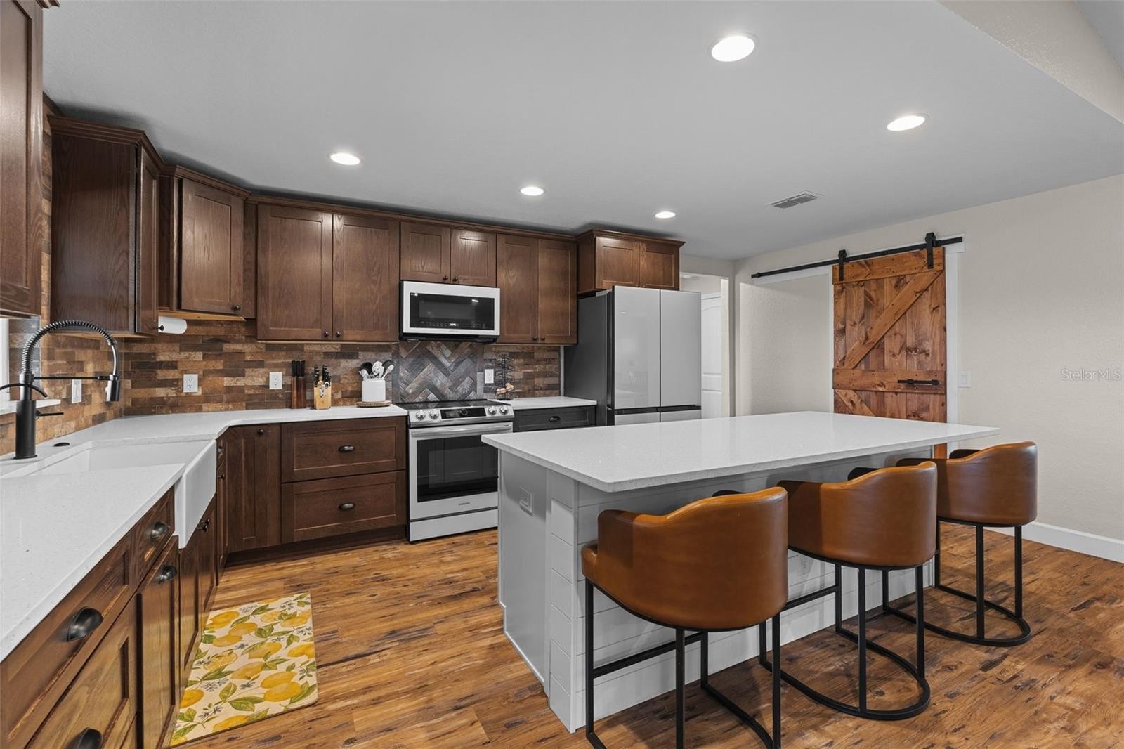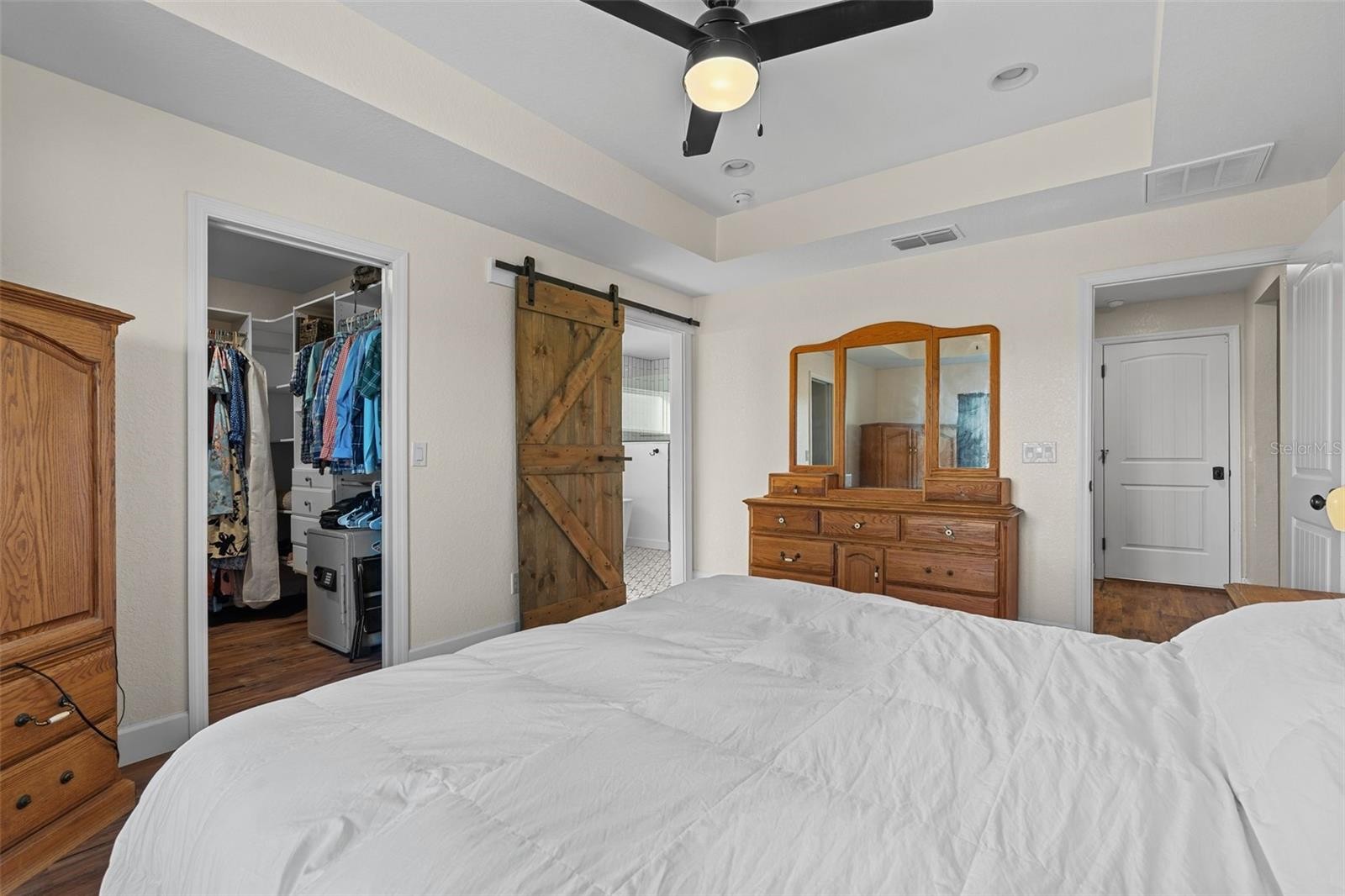 Take a look at this custom modern farmhouse on nearly 17 acres! Welcome to a rare stretch of usable acreage with a peaceful creek that ties into the Little Manatee River. This amount of acreage allows TWO additional accessory dwellings up to 80% of the size of the primary home making it the perfect multi-generational compound. Built in 2023, this home blends modern finishes with country serenity and offers 1,770 square feet, 3 bedrooms, and 2.5 baths. The kitchen features Samsung Bespoke appliances, a farm sink, quartz countertops, solid wood cabinetry, and an oversized walk-in pantry with a sliding barn door. The primary suite includes a stand-alone soaking tub, a spacious shower, and a custom walk-in closet with built-ins. An upgraded stem wall foundation adds value, and a hurricane-rated garage door secures the 24-by-24 garage. Additional highlights include partial fencing and a water treatment system with aerator. The home is high and dry in flood zone X which doesn't require flood insurance. Step out to the porch for sunrise coffee and return for sunset views. With almost 17 acres of open possibility, this is a prime setting for a private homestead, a small farm, future outbuildings, or guest house. Acreage of this size and quality is rarely available. Only a 15-minute drive to the center of Parrish, where development and new amenities are booming. Come experience the privacy, space, and potential of life in the country.