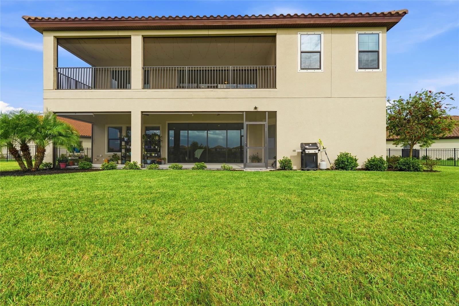 Looking for room to grow? Multi-generational living? This 2023 built WestBay home has 4,211 of living sqft and sits on over a 1/4 Acre with a private water view and fully faced yard! Wow! 3 Car garage and two oversized screened-in lanais! Located in the community of Crosswind Ranch with a LOW HOA of $45/quarter, Community Pool, 2 Dogs Parks, Playground, Clubhouse and Pickleball courts! This floorplan is one of the LARGEST in the community! The First Floor provides all the common areas, 1 Bedroom with 1 Full Bathroom ideal for an In-Law/Guest Suite, Den/Office and Bonus/Flex room. The Second Floor includes the Primary Suite with attached Luxury Bathroom, 3 Secondary Bedrooms, Laundry Room, Entertaining Loft with Wet Bar and 3 Full Bathrooms! The Kitchen has GAS Cooking, a walk-in Pantry, TONS of cabinetry for storage and an expansive Kitchen Island combined with built in Dining space! Wide open Living Room with lots if natural lighting leads you to an oversized covered screened-in lanai for easy access to the backyard. Three car garage for all of your storage and vehicles with a pavered driveway for additional parking. Enjoy your days lounging on your second story screened-in lanai or paying in the yard! The opportunities are endless with this home and community! Parrish is BOOMING and this home is located close to major routes, schools, shopping, dining and MORE!