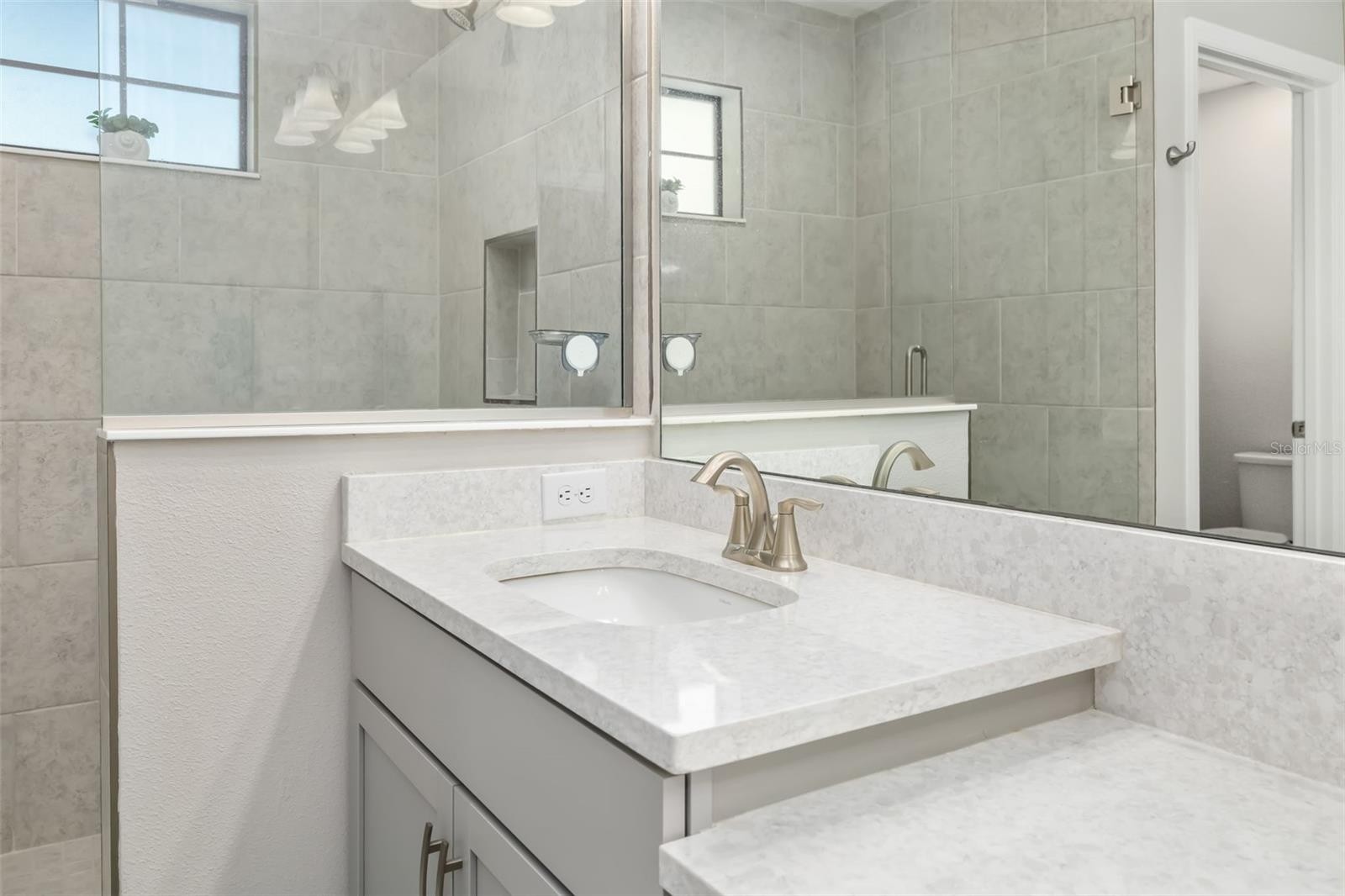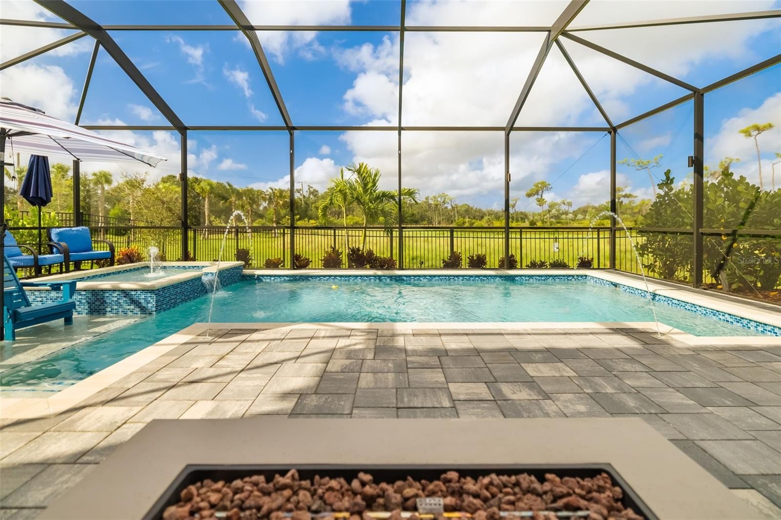 Welcome to ultimate luxury living in the prestigious Crosswind Ranch community. This 2023-built masterpiece offers the perfect blend of elegance, functionality, and modern design across nearly 3,400 sq. ft. of beautifully appointed living space. Step inside to discover a spacious open-concept layout, designed for both grand entertaining and everyday comfort. The gourmet kitchen features a large kitchen island with quartz countertops, custom cabinetry with crown molding, glass tile backsplash, walk-in pantry, gas range, convection oven, under-cabinet lighting, upper cabinet lighting, premium appliances, stylish pendant lights, and a shiplap accent wall—ideal for any home chef. The heart of the home flows effortlessly into the living and dining areas, all of which open to a breathtaking, oversized screened lanai with serene conservation views. The true showstopper is the custom resort-style pool and Jacuzzi, surrounded by elegant pavers and lush landscaping—your own private paradise for relaxation or entertaining under the Florida sun. Retreat to your expansive owner’s suite, complete with a sitting area, oversized walk-in closet, and a spa-inspired ensuite bath featuring a custom dual vanity, frameless glass shower, and private water closet. Additional features include a downstairs guest suite with pool access, a large bonus room and dedicated office, designer upgrades: stair treads, updated lighting with dimmer switches, ceiling fans, water softener, accent walls, Ring doorbell, keypad door lock, ceiling storage racks, window treatments, fenced yard, extended driveway, extensive custom landscaping, a 3-car garage with ample storage, and located on a quiet cul-de-sac lot. Crosswind Ranch offers exclusive amenities, including a pool, cabana, pocket parks, and scenic pond views—with future additions like Pickleball courts and a Dog Park on the way. Enjoy unmatched convenience with quick access to I-75 and I-275—just 30 minutes to downtown St. Pete or Sarasota, and 40 minutes to Tampa. This home is a true testament to pride of ownership and an incredible opportunity to own a luxury residence loaded with upgrades in one of the area's most sought-after communities. Don’t miss your chance to experience this exceptional lifestyle—schedule your private tour today!