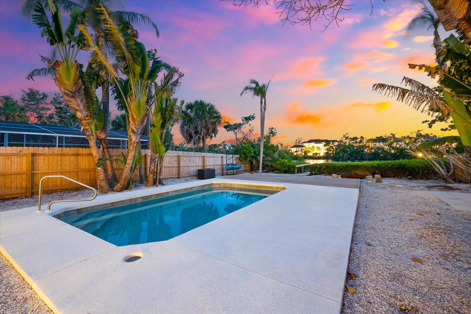 One or more photo(s) has been virtually staged. Incredible Value! Don't miss this one! Buy now and enjoy for season. Welcome to The Blue Lagoon... when you walk in it feels like new construction! A private modern coastal retreat perfectly positioned on Siesta Key’s tranquil Heron Lagoon... the ultimate vacation home or investment property. This exceptional, gated quarter-acre compound offers the rare combination of serenity, design, and functionality, ideally located between Turtle Beach and Crescent Beach, just moments from the iconic Point of Rocks. Enter through a secure electric gate framed by custom wood fencing and arrive under a majestic live oak canopy that sets the tone for the natural beauty and privacy within. Designed to maximize indoor-outdoor living, the home features two expansive screened lanais, a sparkling private pool, an extensive wood deck, lush tropical landscaping, and a private dock where you can launch a paddleboard, kayak, or canoe directly into the peaceful lagoon. The single-level custom residence offers a thoughtfully designed 3-bedroom, 2-bath layout with wide-plank wood-look tile flooring in soft white and gray tones, crisp white walls, black metal hardware, and premium wood and metal ceiling fans throughout. Soaring ceilings are clad in hand-cut cypress wood shiplap, adding both natural warmth and acoustic insulation. The gourmet kitchen is a chef’s dream, featuring high-gloss European cabinetry, quartz countertops, a striking wood-grain tile backsplash, and Café Series stainless steel appliances including a six-burner gas range with a double oven and a counter-depth French door refrigerator with filtered and instant hot water. A whole-home water filtration system ensures pure water at every tap. The spacious master suite is a true sanctuary with a double-closet hallway, soaring ceilings, and a large window and sliding glass door that open to the lanai. The spa-inspired en suite bath features floating dual white European vanities, a luxurious rainwater shower with Kohler gold fixtures, floor-to-ceiling “blue skies” tile, and organic gray cobbled stone flooring. The peaceful sound of rainfall on the metal roof at the rear of the home enhances the retreat-like experience. The guest bath offers equally sophisticated design, with iridescent honeycomb tile behind a deep soaking tub and rich gray tilework throughout. Every detail of this home has been carefully curated to reflect the essence of the Siesta Key lifestyle, luxurious, relaxed, and deeply connected to nature. Whether you’re looking for a full-time residence or a seasonal escape, The Blue Lagoon offers a once-in-a-lifetime opportunity to own a coastal property where water views, natural beauty, and modern comforts unite in perfect harmony. In addition to being a stunning private residence, this property is also ideal for seasonal use or as a high-performing vacation rental. Similar properties on Siesta Key routinely generate over $100,000 per year in rental income, making this an excellent opportunity to enjoy the home while having it support itself or even contribute toward paying it off. Use it as a vacation retreat while earning income and always have a beautiful place to stay on Siesta Key. And if your long-term vision includes building your dream home, please inquire directly about available building plans for the lot by Island Series with Yoder Homes. Visit the link for a 3D tour, video and floor plan. https://nextlevelmediasrq.hd.pics/8234-Midnight-Pass-Rd/idx