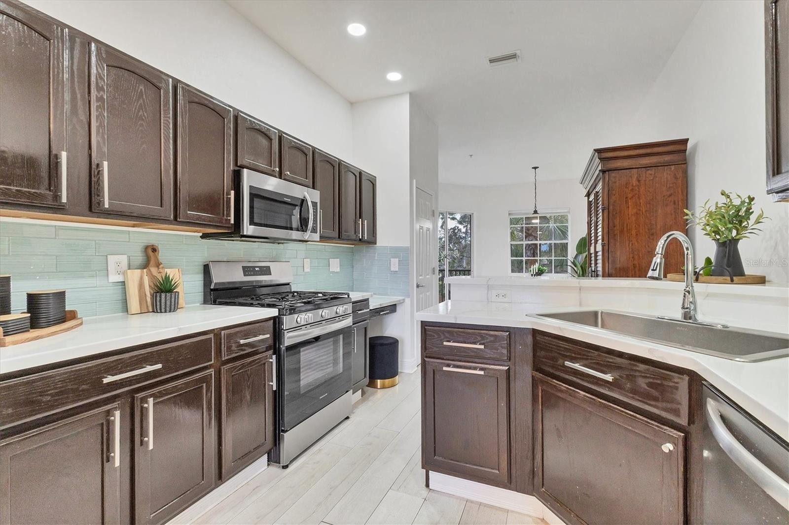 Welcome to this beautifully updated and move-in-ready three-bedroom, two-bath condominium in sought-after Miramar Lagoons neighborhood, in the prestigious Lakewood Ranch Country Club. Designed for comfort, style and low-maintenance living, this second-floor residence offers a spacious layout with an open-concept great room, a bright eat-in kitchen, formal dining room, and a flexible den ideal for a home office or guest space. The renovated kitchen boasts light countertops, modern tile backsplash, stainless steel appliances and plenty of cabinet space. Neutral laminate flooring and white paint throughout create a clean, airy ambiance, complemented by soaring ceilings and abundant natural light. The primary suite is a retreat with a large custom walk-in closet and a luxurious en-suite bath featuring a freestanding soaking tub, glossy tile Roman shower and dual vanities. Two additional bedrooms and an updated guest bath provide plenty of space for family or visitors. Enjoy tranquil, elevated views from the screened lanai or head just a short walk to the community’s amenity center, where resort-style living awaits with a heated pool and spa, ample lounging areas, a cabana and a fully equipped fitness center. This lock-and-leave home includes a convenient attached one-car garage, and the HOA covers all landscaping, irrigation, exterior maintenance and roofing, making ownership effortless. Behind secure gated entrances off Lorraine Road and University Parkway, Miramar Lagoons offers a serene, private setting with monthly rental options, making it ideal for full-time living, seasonal enjoyment or investment. Additional upgrades include updates air-conditioning (2021), water filtration system (2021) and a new tankless water heater (2024). You’re just five minutes from everyday essentials like grocery stores, pharmacies, coffee shops, fine dining and more, everything you need is right around the corner. With quick access to Interstate 75 and just 10 minutes to the UTC Mall, getting to shopping, dining and weekend entertainment is a breeze. And when it’s time to relax, some of Florida’s most beautiful Gulf Coast beaches are only a short drive away. Don’t miss your opportunity to enjoy easy living in Lakewood Ranch’s, America’s #1 best-selling multi-generational community!