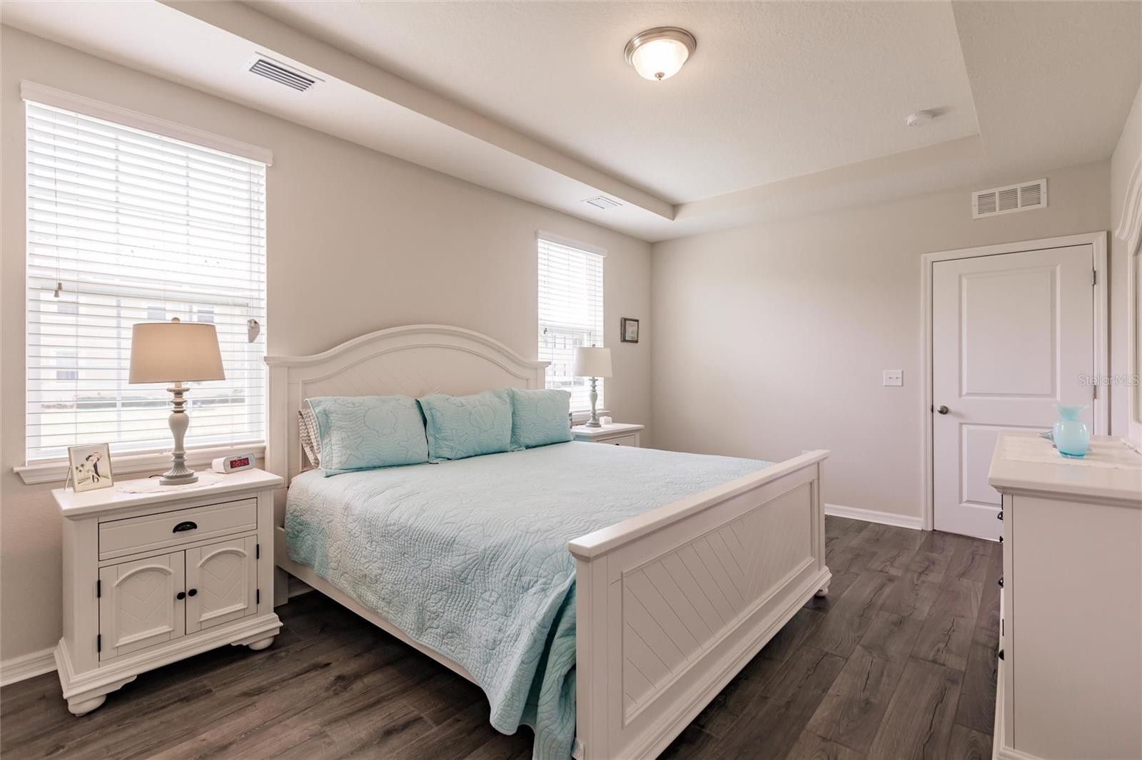 Say hello to the MOST UPGRADED and LOWEST-PRICED first-floor unit on the market in the highly sought-after Soleil! Situated on a PREMIUM WATER-VIEW LOT, enjoy the sights and sounds of nature from your PRIVATE screened lanai. Built in 2017, this PRISTINE two-bedroom plus den, two-bathroom condo has been METICULOUSLY MAINTAINED by its original owners and SHOWS LIKE A MODEL HOME. The kitchen boasts WHITE CABINETRY with crown molding, STAINLESS-STEEL APPLIANCES, gleaming GRANITE COUNTERTOPS, and a designer tile backsplash. The SPACIOUS master suite features Pergo Outlast+ laminate wood flooring, a tray ceiling, WHITE CABINETRY with a double-bowl vanity and granite countertops, a walk-in shower with storage niche and decorative listello, and a WALK-IN CLOSET. Additional highlights include a generous-sized guest bedroom and den that also feature Pergo Outlast+ laminate wood flooring (no carpeting anywhere), a murphy bed in the den for sleeping additional guests, and a one-car ATTACHED GARAGE. The washer and dryer and window treatments are also included, making this unit truly MOVE-IN-READY! Soleil is a centrally-located, gated community with NO CDD; and features a resort-style heated pool, clubhouse, fitness center, dog park, and bocce ball court. Minutes from downtown Sarasota, St. Armand's Circle, Siesta Beach, Sarasota Bradenton International Airport, The Mall at University Town Center, top-rated golf courses and country clubs, and much more. Welcome to paradise!