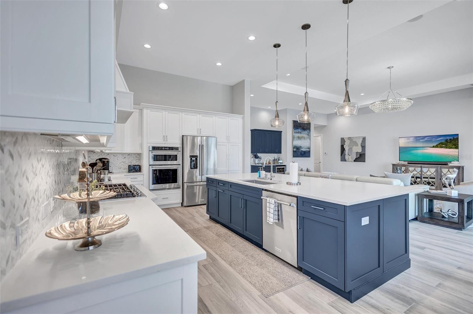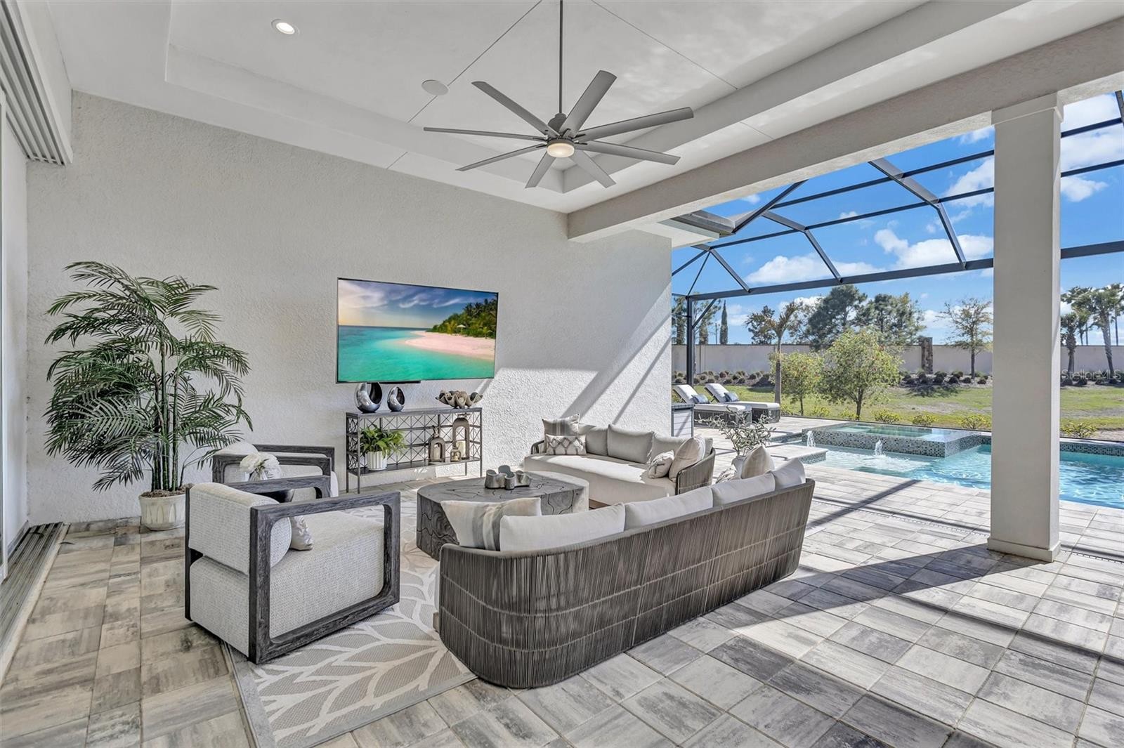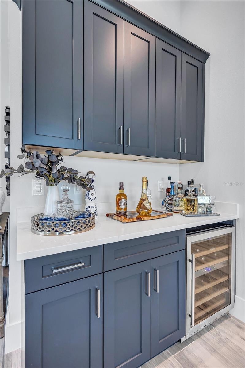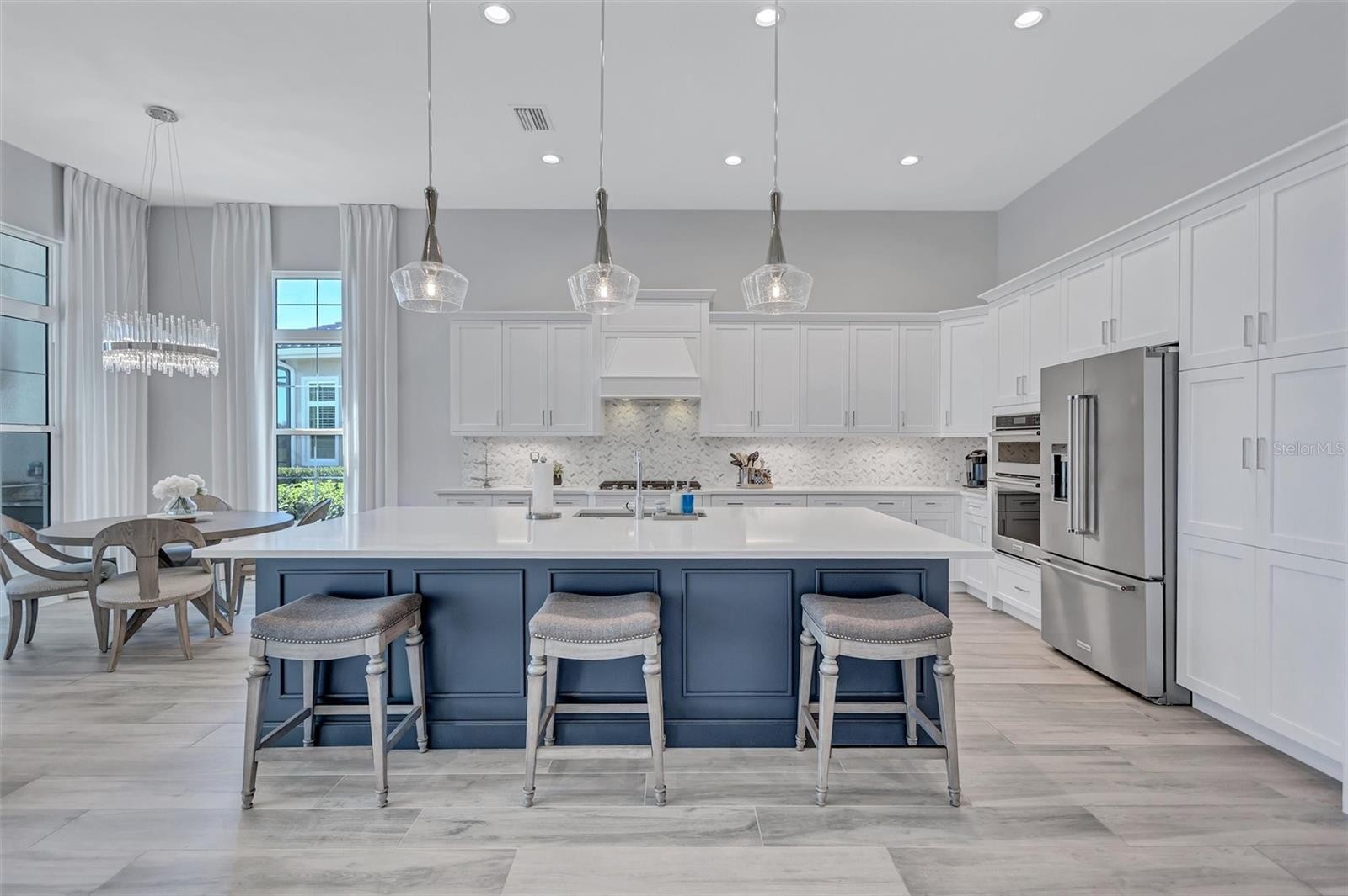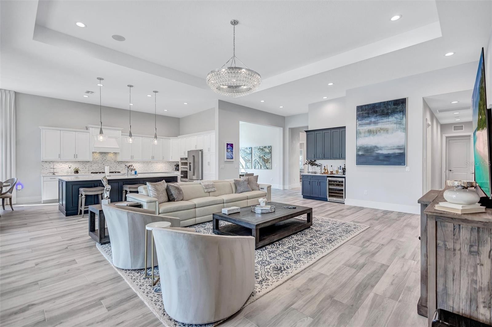Experience refined Florida living in this beautifully appointed residence within the renowned Lake Club, where comfort, style, and thoughtful design come together in one of Lakewood Ranch’s most sought-after communities. Ideally positioned on a premium water-view homesite, this 2022-built home captures tranquil pond sunsets from its generously sized covered lanai, complete with a panoramic screened enclosure, finished ceilings, and a fully equipped summer kitchen. Spanning just under 3,000 square feet, the home features an open-concept great room enhanced by soaring ceilings and elegant porcelain plank tile flooring throughout the main living areas. The chef’s kitchen is both functional and stylish, complete with quartz countertops, soft-close cabinetry with pull-out shelving, and a suite of stainless steel appliances, including a gas cooktop and convection oven. Thoughtful enhancements include professionally installed landscape lighting in both the front and rear of the home, as well as a custom outdoor kitchen and smart home upgrades, including a fully automated AV system. Additional interior features include impact-rated windows and doors and upgraded lighting throughout, creating a polished, move-in-ready environment. The spacious primary suite offers a relaxing retreat with a spa-inspired bathroom featuring dual vanities, a walk-in shower, and a freestanding soaking tub. Step outside to your own private outdoor oasis, highlighted by a heated saltwater pool and spa, a generously sized covered lanai with finished ceilings, and a fully equipped summer kitchen—perfect for entertaining or simply enjoying the serene water views. The three-car garage offers ample space and functionality, featuring epoxy flooring and added conveniences such as whole-home surge protection. Located within the gated community of The Lake Club, residents enjoy access to exceptional amenities and are just minutes from Waterside Place, UTC, Main Street Lakewood Ranch, and the area’s renowned Gulf Coast beaches. Situated in an X flood zone, this home offers both peace of mind and an elevated lifestyle in one of the region’s premier locations. Schedule your private showing today and discover all that this exceptional property has to offer.