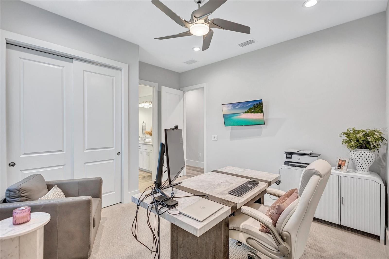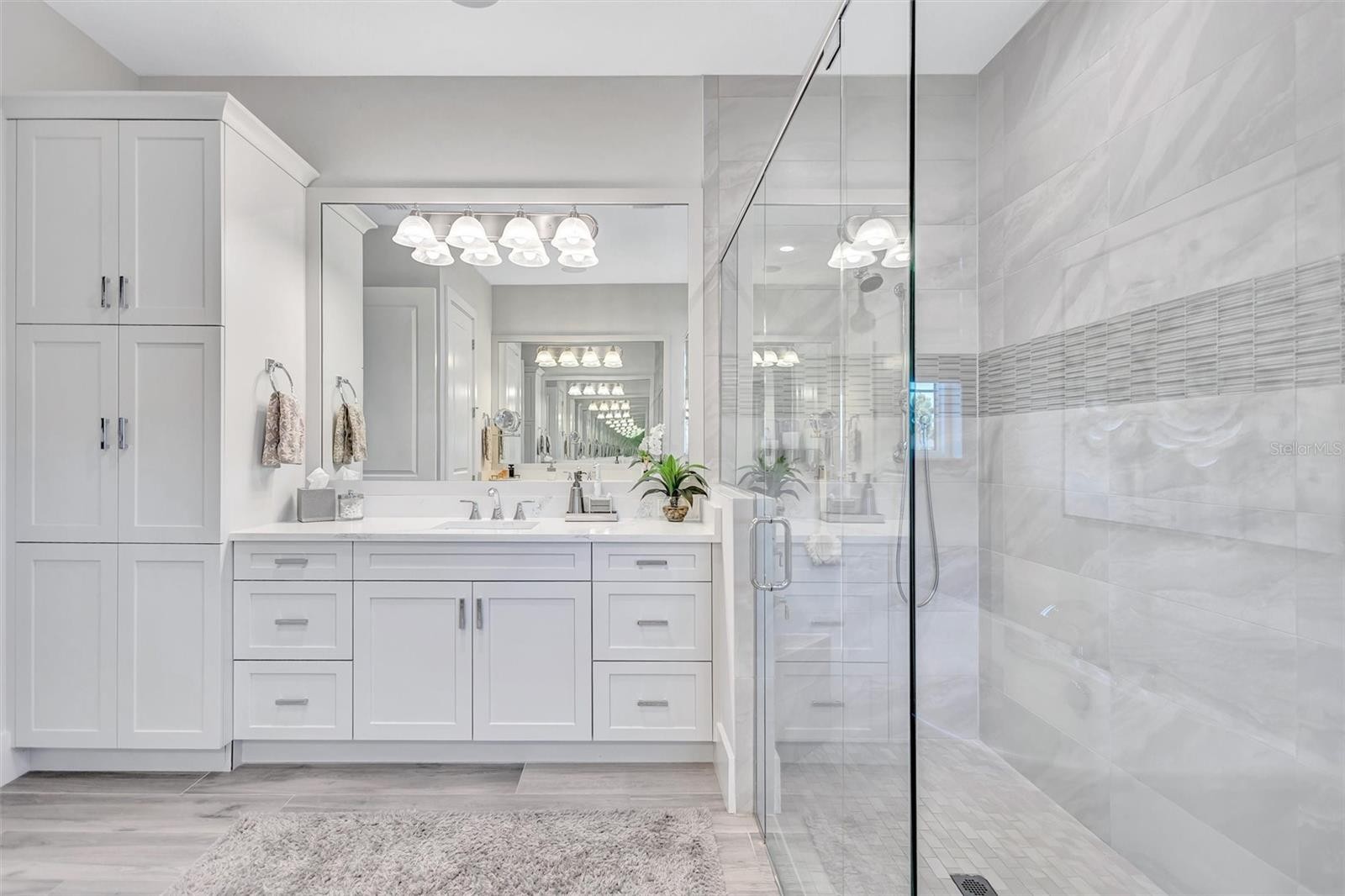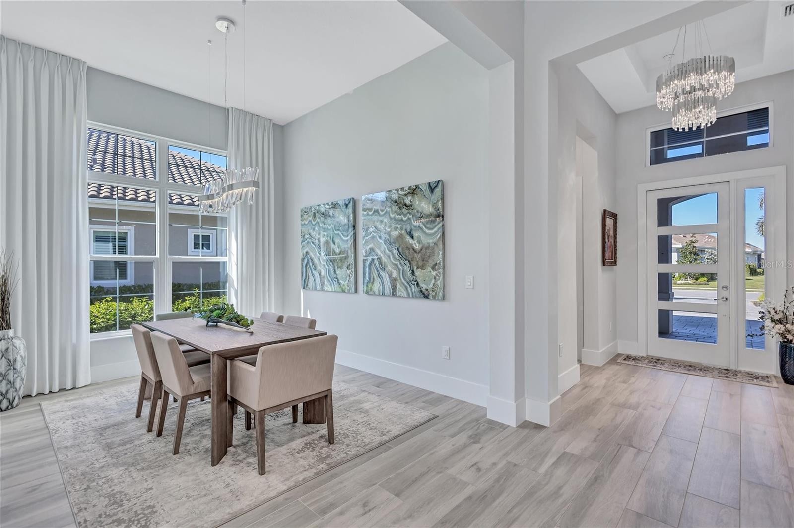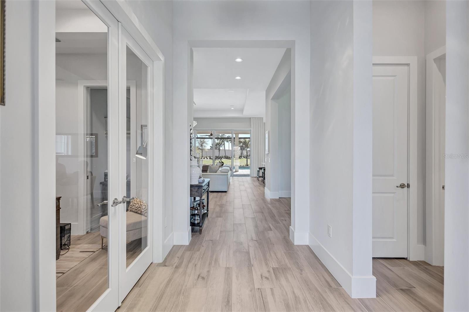Experience refined Florida living in this beautifully appointed residence within the renowned Lake Club, where comfort, style, and thoughtful design come together in one of Lakewood Ranch’s most sought-after communities. Ideally positioned on a premium water-view homesite, this 2022-built home captures tranquil pond sunsets from its generously sized covered lanai, complete with a panoramic screened enclosure, finished ceilings, and a fully equipped summer kitchen. Spanning just under 3,000 square feet, the home features an open-concept great room enhanced by soaring ceilings and elegant porcelain plank tile flooring throughout the main living areas. The chef’s kitchen is both functional and stylish, complete with quartz countertops, soft-close cabinetry with pull-out shelving, and a suite of stainless steel appliances, including a gas cooktop and convection oven. Thoughtful enhancements include professionally installed landscape lighting in both the front and rear of the home, as well as a custom outdoor kitchen and smart home upgrades, including a fully automated AV system. Additional interior features include impact-rated windows and doors and upgraded lighting throughout, creating a polished, move-in-ready environment. The spacious primary suite offers a relaxing retreat with a spa-inspired bathroom featuring dual vanities, a walk-in shower, and a freestanding soaking tub. Step outside to your own private outdoor oasis, highlighted by a heated saltwater pool and spa, a generously sized covered lanai with finished ceilings, and a fully equipped summer kitchen—perfect for entertaining or simply enjoying the serene water views. The three-car garage offers ample space and functionality, featuring epoxy flooring and added conveniences such as whole-home surge protection. Located within the gated community of The Lake Club, residents enjoy access to exceptional amenities and are just minutes from Waterside Place, UTC, Main Street Lakewood Ranch, and the area’s renowned Gulf Coast beaches. Situated in an X flood zone, this home offers both peace of mind and an elevated lifestyle in one of the region’s premier locations. Schedule your private showing today and discover all that this exceptional property has to offer.