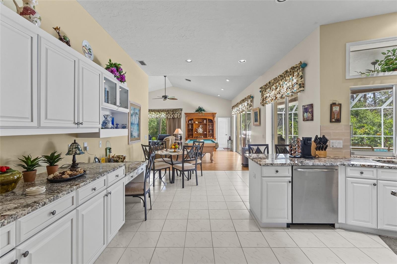 Welcome to this beautifully maintained 3-bedroom, 3-bath home offering 3,062 sq ft of spacious living in the quiet, gated community Plantation Woods. Designed with both comfort and functionality in mind, this home features a split floor plan and vaulted ceilings throughout, creating an open and airy feel. The home offers multiple living and entertaining spaces, including a separate formal dining room and an additional living area, along with a generous family room off the kitchen that boasts a cozy gas fireplace. The updated kitchen is equipped with granite countertops, solid wood cabinetry, and flows seamlessly into the main living space. The large primary suite is a private retreat with direct access to the pool, two walk-in closets, and a spacious en-suite bath complete with a walk-in shower and soaking tub. Step outside to the expansive screened lanai, where you’ll find a large pool with spa and a private, peaceful setting—perfect for relaxing or entertaining while enjoying the Southwest Florida lifestyle. Additional highlights include a spacious garage, low HOA fees, and an energy-efficient solar system with battery storage. The solar system is part of a required lease that provides the benefit of reduced monthly utility costs and improved energy efficiency, offering long-term savings and reliability. Optional membership is available at the Plantation Golf & Country Club, featuring two championship golf courses, tennis and pickleball courts, bocce, a Jr. Olympic pool with tiki bar, and a full-service restaurant with year-round live entertainment and social events. Conveniently located near Wellen Park, Historic Downtown Venice, and Gulf Coast beaches, this home offers the perfect blend of space, privacy, and lifestyle.