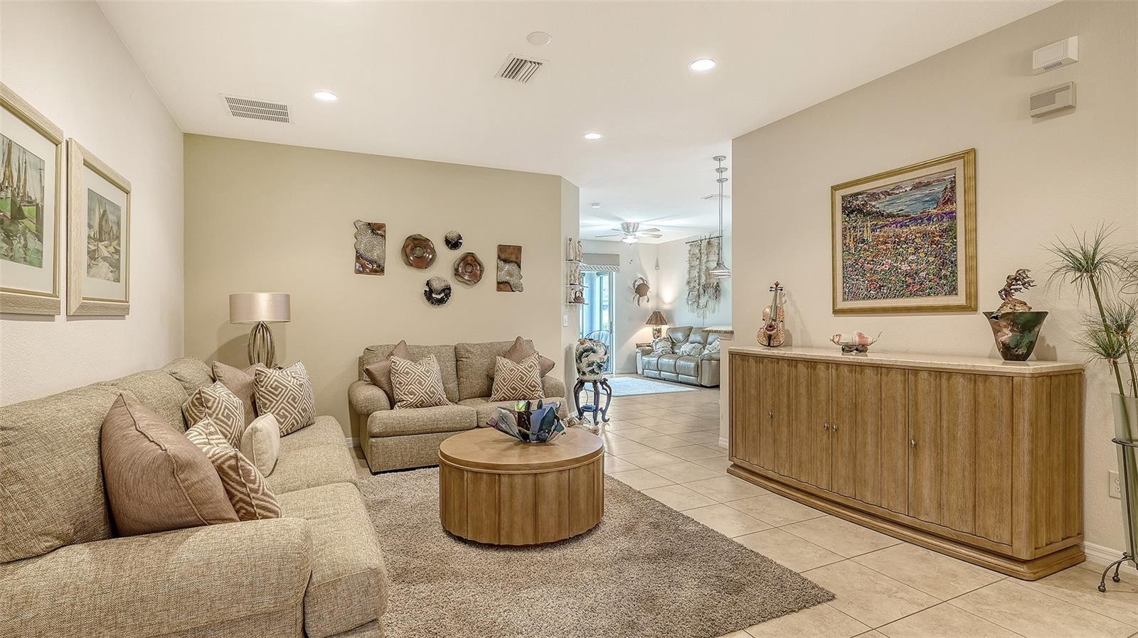 Welcome to this beautifully maintained four-bedroom home in the desirable Palmer Oaks community on Palmer Ranch. Nestled on a quiet, tree-lined street, this residence features a private fenced backyard—perfect for relaxing, entertaining, or pets. Inside, the thoughtfully designed floor plan offers both formal and casual living spaces, including separate living and family rooms plus a dedicated dining area. The expansive kitchen is appointed with granite countertops, wood cabinetry, newer appliances, and a bright dinette area. A welcoming foyer with coat closet, interior laundry room, and attached two-car garage add everyday convenience. The spacious primary suite includes a designer walk-in closet, dual vanities, and a private water closet. Two guest bedrooms share a full bath, while the fourth bedroom—currently used as an office—offers flexibility for guests or work-from-home needs. Additional features include hurricane shutters, home security system, backyard security lighting, window treatments, ceiling fans, lanai sunshades, gutters, new shower heads, and newer appliances including washer and dryer. Residents of Palmer Oaks enjoy a charming neighborhood setting with a community pool and exceptional location—just a short walk to shops, grocery stores, and restaurants. Minutes from the Legacy Trail and Culverhouse Nature Park, with easy access to I-75 and only 15 minutes to world-renowned Siesta Key Beach. Lovingly cared for by its original owner, this move-in-ready home offers comfort, convenience, and an unbeatable Sarasota lifestyle.