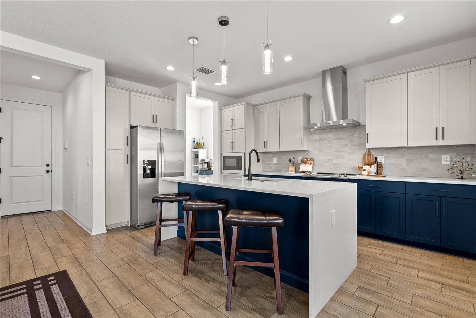 One or more photo(s) has been virtually staged. $7,500 FLEX CASH offered to the buyer — because adulting is expensive. Use it toward closing costs, buy down your interest rate (because, well… rates), upgrade the upstairs flooring if carpet isn’t your thing, add a fence to the backyard, or enclose the downstairs den to create a functional 4th bedroom. Your house, your rules. Even better — this home qualifies for a USDA 0% down loan, giving eligible buyers the opportunity to purchase with no money down. Not every home qualifies for USDA financing, and this one does. That means you could potentially put $0 down and still have $7,500 in flex cash to customize the home to your liking. Stop renting and start owning your future. Welcome to 8330 Abalone Loop in The Isles at Bayview and this stunning Inland 405 model offering over 2,400 sq ft of beautifully designed and highly functional living space. This 3-bedroom + den/office, 2.5-bath home features an open-concept layout filled with natural light and thoughtful upgrades throughout. The chef’s kitchen is the undeniable centerpiece with quartz waterfall countertops, 42” two-tone cabinetry (Glacier Gray uppers and Admiral Blue lowers), convection oven with stainless range hood, built-in microwave, walk-in pantry, and a dedicated coffee bar — because mornings deserve support. The main living and dining areas flow seamlessly, making the space ideal for entertaining or everyday living. The versatile downstairs flex room sits conveniently across from a half bath, offering easy potential as a home office, playroom, or a 4TH BEDROOM. Upstairs, a generous loft provides additional living space along with a second built-in pocket office. The primary suite is a true retreat featuring a standalone soaking tub, seamless glass walk-in shower with sleek black tile accents, and integrated Corian sinks. Another full bath with double sinks is upstairs, while a half bath is downstairs to ensure theres optimal convenience. Two other bedrooms are upstairs along with an oversized loft which can be utilized to fit your lifestyle. Additional upgrades include 8’ interior doors on both levels and block exterior walls on both floors. Built in 2023 the next buyer can have ease of mind that all main components of this home are less than 5 years old. The Isles at Bayview offers resort-style amenities including a community pool, clubhouse, game room, and dog park, all just minutes from I-75 and the exciting new 4-acre lagoon project. Rare model. Flexible incentives. USDA eligible. Schedule your private showing today.