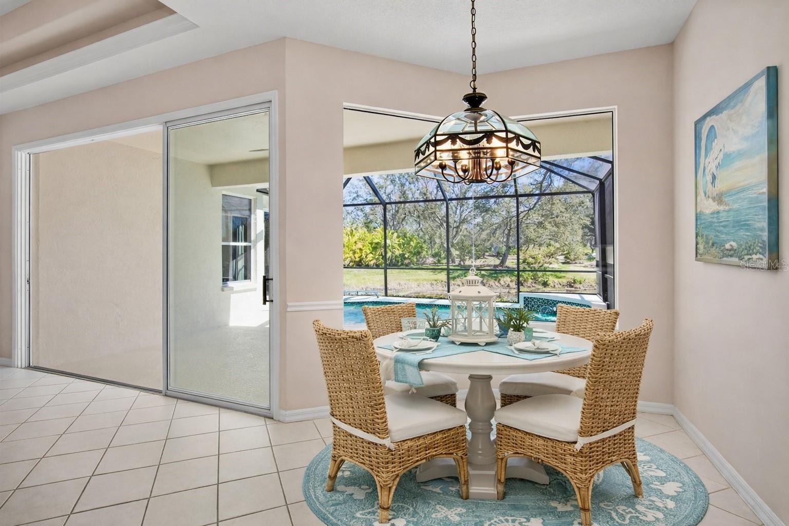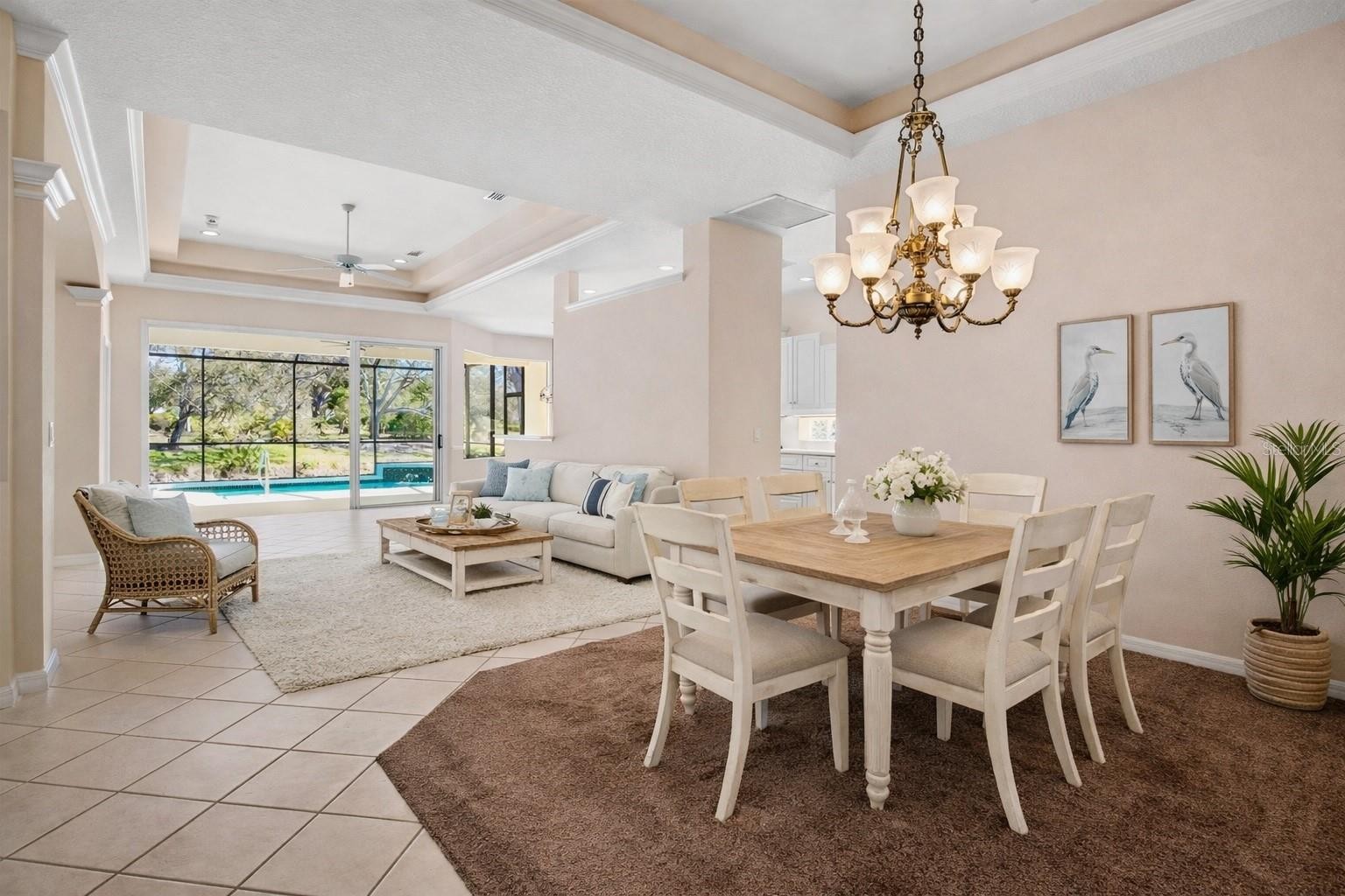 One or more photo(s) has been virtually staged. Come live the Florida lifestyle to the fullest in this beautifully appointed 3-bedroom, 2-bath residence, located behind the gates of the highly sought-after Turtle Rock community in Palmer Ranch, within the maintenance-free Somerset section. Designed and built by renowned local builder Lee Wetherington, this well-crafted home features several generously sized rooms that were thoughtfully customized at the original owners’ request, offering comfort, functionality, and long-term livability. The smart, open floor plan welcomes you through elegant double entry doors into an inviting foyer, immediately showcasing the quality construction and timeless architectural character for which Lee Wetherington homes are known. Classic design elements include soaring double tray ceilings, crown molding, and refined millwork, creating an elegant and versatile backdrop that complements a wide range of design styles. Abundant natural light fills the home, enhanced by an array of windows and sliding glass doors that highlight pleasant lake views and a strong connection to the surrounding landscape. A bay window in the kitchen nook frames the water view, adding character and visual interest without overwhelming the living spaces. The kitchen is well positioned within the home, making it ideal for entertaining and everyday living alike. Featuring solid countertops, ample cabinetry, stainless steel appliances, and a natural gas stove, (Turtle Rock is a natural gas community.) The kitchen easily accommodates gatherings of family and friends throughout the year. Its convenient proximity to the garage via the well positioned laundry room with its washer and dryer and laundry sink to boot, is especially appreciated on grocery days, adding to the home’s thoughtful and functional layout. The extended primary bedroom offers exceptional flexibility, providing ample space for a reading/sitting area, home office, or workout space. The primary suite also includes generous size walk-in closet AND a built-in closets and a well-proportioned ensuite bath. Two additional bedrooms and a full guest bath offer comfortable accommodations for family and guests or additional workspace options. Step outside to the screened-in lanai overloking your very own private pool and enjoy attractive lake views while embracing Florida’s indoor-outdoor lifestyle. The outdoor area provides a welcoming space for casual entertaining or quiet enjoyment. Additional peace-of-mind features include complete home repiping, reflecting the care and attention given to the property over the years. Residents of Turtle Rock enjoy a resort-style lifestyle with access to a community pool, tennis courts, pickleball and basketball courts, and miles of scenic walking and biking trails throughout preserved natural areas. Ideally located just minutes from shopping, dining, and cultural attractions, the home is also close to the Legacy Trail and a short drive to the world-famous sugar-sand beaches of Siesta Key. Lovingly maintained and thoughtfully priced, this residence presents an excellent opportunity to own a quality-built home in one of Palmer Ranch’s most desirable gated communities. Schedule your private showing today and experience the lifestyle Turtle Rock has to offer.