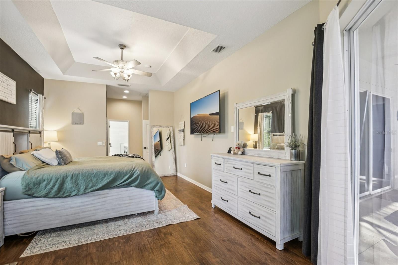 THIS COULD BE YOUR HOME! This beautiful Whitney Meadows home welcomes you with an inviting screened front entry, mature landscaping, and a majestic oak tree that enhances the curb appeal and classic Florida charm. Step inside to soaring ceilings and an open great room with a tray ceiling, creating a bright and spacious feel throughout. The large kitchen features light cabinetry, granite countertops, a walk-in pantry, and an oversized breakfast bar perfect for gatherings and everyday living. Just off the great room sits the flexible fourth bedroom—ideal for an office, gym, or playroom—and it includes its own private slider leading directly to the pool. The split bedroom layout places two bedrooms and a shared bath at the front of the home, while the expansive primary suite is tucked privately off the great room. The primary bedroom features a tray ceiling, plenty of room for a sitting area, and a private slider that opens directly to the pool—perfect for morning coffee on the deck or intimate evenings under the Florida sky. The spa-like en suite is the true showstopper, featuring a luxurious wet room where the elegant claw-foot soaking tub and massive walk-in shower share one dramatic space, complete with a cascading rain shower and stunning 48" Cortez tile walls. Separate double sinks, a private toilet area, a linen closet, and two large walk-in closets complete this unforgettable retreat. Step outside to your very private backyard oasis featuring a sparkling pool with ambient lighting, surrounded by Belgian block pavers under the lanai for a refined, resort-style feel. The screened enclosure keeps out pesky critters, and the astroturf yard offers a low-maintenance lifestyle—perfect for kids, pets, and giving Dad more time to relax by the pool instead of mowing. This home also includes a new roof, new A/C system, and a whole-house water softener for added comfort and efficiency. Located directly across from the community pool, Whitney Meadows is known for its beautiful mature landscaping and majestic oaks, all with a LOW HOA and NO CDD. This family-friendly home embodies upbeat, effortless Florida Style Simple Living
