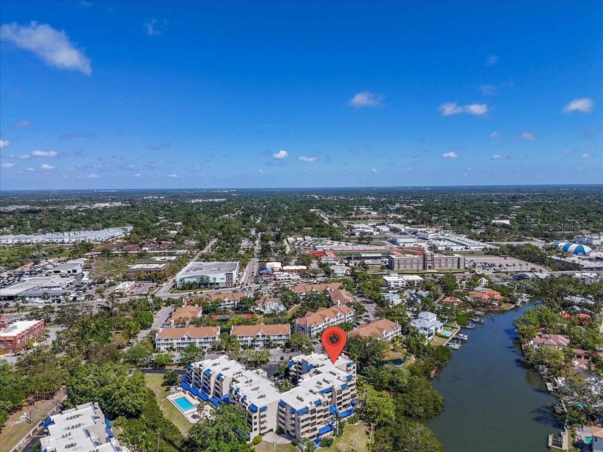 BE CENTER STAGE AND LIVE AT THE HEART OF SARASOTA IN THIS TOP FLOOR UNIT! This is the definition of LOCATION, LOCATION, LOCATION! Walking distance to the vibrant day and night life of downtown Sarasota, or ride your bike to the top ranked beaches in the nation! Need an airport nearby? Check that box here, too. From cultural experiences such as the Sarasota Art Museum (about a block away), renowned Ringling Museum, and Marie Selby Botanical Gardens (just around the corner), to both fine and casual dining options, and fabulous shopping, you'll never be bored. Between downtown, St. Armand's Circle, and of course Siesta Key, you can choose your own adventure and never run out of exciting things to do. This ideally situated TOP FLOOR unit (across from the elevator for exceptional convenience) features 1 large bedroom with French doors to a private balcony, an ensuite bathroom and walk-in closet. The main living area has a light-filled living room and French doors accessing the balcony with stunning water views adding to the peacefulness of the home and plenty of room for outdoor furniture to suit your taste. The kitchen overlooks the living room, has granite counters, a washer and dryer unit, and cozy breakfast nook. The bathroom has a shower/tub combo and is accessible from both the living room hallway and the bedroom. NEW AC in 2024, and no hurricane damage! This very tranquil community features a large community pool, covered parking, elevator access, kayak launch, and pier with access to the Hudson Bayou and beyond. Priced to sell so you don't have to stress over waiting for the right deal to come along...this is it! Schedule your private showing and enjoy all that Central Park living has to offer.