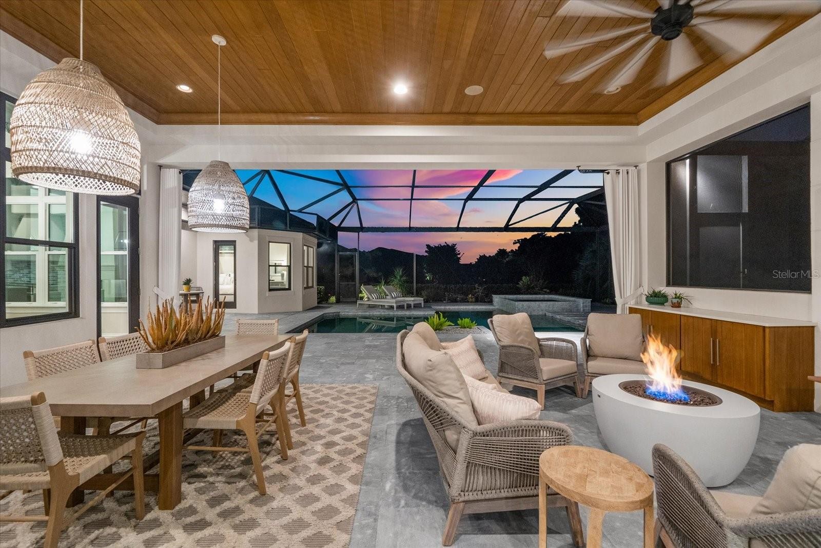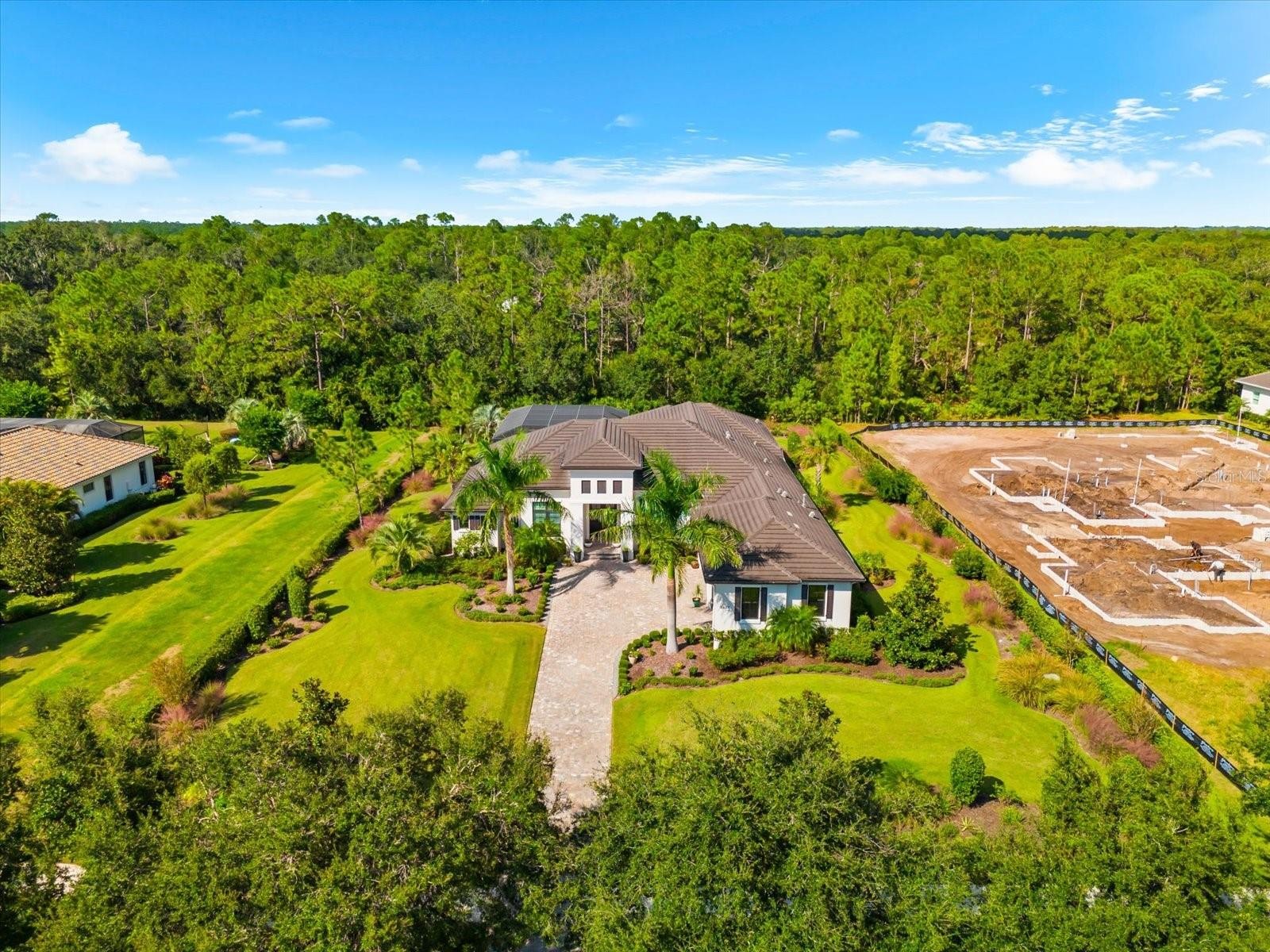 Under contract-accepting backup offers. A Rare Opportunity in The Concession – Former Anchor Builders Model. Why wait to build when you can move right into this award-winning, professionally decorated and fully furnished former model home? Winner of the 2021 Parade of Homes for Best Overall Home and Certified Green Home, this Anchor Builders’ masterpiece blends the highest level of quality and timeless craftsmanship with modern luxury, all set on a private one-acre homesite in the prestigious Concession. From the moment you arrive, the grand driveway and stone-columned entry create an unforgettable first impression. Step inside to soaring ceilings, walls of impact glass, oak floors, and architectural details that showcase the extraordinary level of finish. At the heart of the home, an open great room with a dramatic stone fireplace flows seamlessly into the chef’s kitchen equipped with Sub-Zero, Wolf, and Cove appliances, quartz counters, a large center island, raised panel custom cabinetry, and butler’s pantry. Every detail is designed for entertaining and effortless living. Relax in the primary suite, a spa-like retreat featuring a stand-alone tub, oversized shower, dual vanities with custom cabinetry, two walk-in closets with built-ins, and serene pool views. Three additional en-suite bedrooms each offer their own private sanctuary, complete with designer bathrooms and walk-in closets with custom shelving. Work from home in the office/den, complete with custom built-in shelves and a desk, offering both functionality and elegance. A versatile bonus room serves as a favorite gathering spot, with corner sliding doors that open to the outdoor lanai, perfect for entertainment, media, or play. But the true showstopper is outside. The expansive lanai is a resort all its own, complete with outdoor kitchen, fire pit, cypress wood ceilings, custom cypress cabinetry, leathered marble pavers, saltwater pool with sun shelf, and spa. Imagine evenings by the fire, weekend gatherings around the grill, and quiet mornings overlooking your private, wooded view. Smart home technology, energy-efficient insulation, custom window treatments, plantation shutters, and even a climate-controlled interior storage room ensure this residence is as functional as it is beautiful. Exquisite and meticulously maintained, this home enjoys an ideal location within The Concession, a gated community known for its privacy, serene natural beauty, and spacious estate homesites. Meticulously maintained and elegantly furnished, this is more than a home, it’s a statement of style, comfort, and luxury. Few properties offer this level of design, privacy, and lifestyle. Opportunities of this caliber within The Concession are exceedingly rare; experience a residence that truly stands apart.