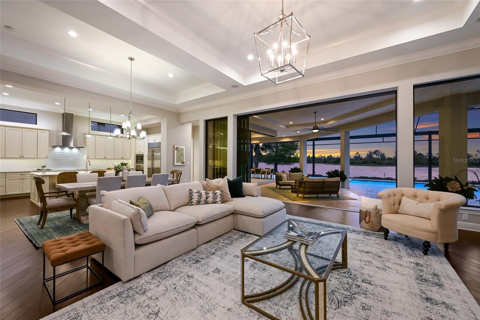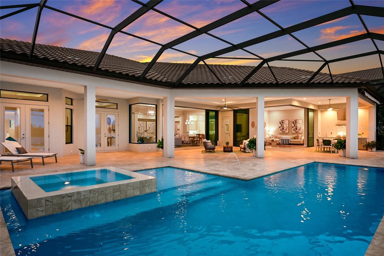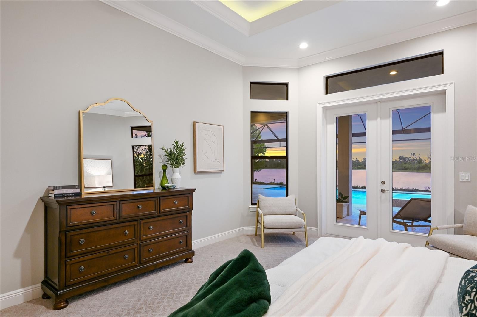 Set on over one acre with serene water and preserve views, this custom Lee Wetherington residence offers a refined balance of thoughtful design, privacy, and relaxed luxury living. Positioned to capture the natural beauty of its surroundings, the homesite provides a sense of quiet seclusion while remaining moments from Lakewood Ranch’s most desirable destinations. The well-designed floor plan offers both comfort and versatility, featuring three bedrooms, four bathrooms, two private offices, and a spacious bonus room, ideal for work, relaxation, or hosting guests. The primary suite serves as a true retreat, where double doors open directly to the lanai, inviting in soft natural light and tranquil views. The spa like bath features a large walk-in shower, soaking tub, dual sink vanity with custom cabinetry, and generous custom walk-in closets. Privately positioned within the split floor plan, the two guest suites offer exceptional comfort and privacy for visitors. Each suite includes a walk-in closet and an ensuite bath with oversized custom tiled showers, creating a welcoming and well-appointed space for family and guests alike. At the heart of the home, the chef’s kitchen blends beauty and functionality, appointed with a Miele induction cooktop and hood, Miele dishwasher, Sub Zero refrigerator, and Wolf microwave and oven. A large walk-in pantry provides additional storage and convenience, while the open design allows the kitchen to flow effortlessly into the surrounding living spaces, making it equally suited for everyday living and entertaining. Designed to embrace Florida’s indoor-outdoor lifestyle, expansive sliders from the great room open to an oversized lanai overlooking peaceful water and preserve views. The outdoor living space offers a pool and spa, outdoor kitchen, and generous areas for both dining and lounging, creating an inviting setting for relaxed afternoons or elegant evening gatherings. A perfect blend of functionality and privacy, the setting invites beautiful sunrises, sunny afternoons by the pool, and peaceful evenings enjoying the tranquil natural surroundings. The pool was refreshed with new PebbleTec in 2025, while the ClearView screen enclosure allows the surrounding landscape to remain the focal point. Additional features further enhance the home’s comfort and functionality, including a whole house generator, two tankless hot water heaters, and two air conditioning systems. An extended three car garage offers generous space for vehicles, storage, or recreational equipment. Located within the gates of The Concession and just minutes from UTC, Waterside dining and shopping, and the Gulf Coast’s renowned beaches, the home offers convenient access to Sarasota’s vibrant lifestyle while maintaining the privacy and exclusivity that define the community. Opportunities to enjoy this level of privacy, thoughtful design, and expansive outdoor living are truly rare.