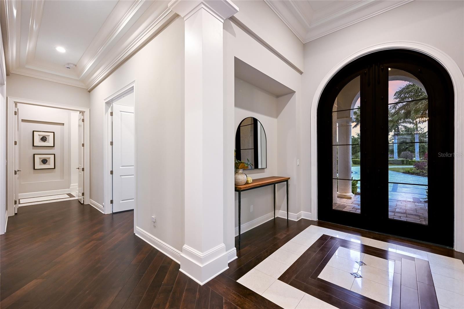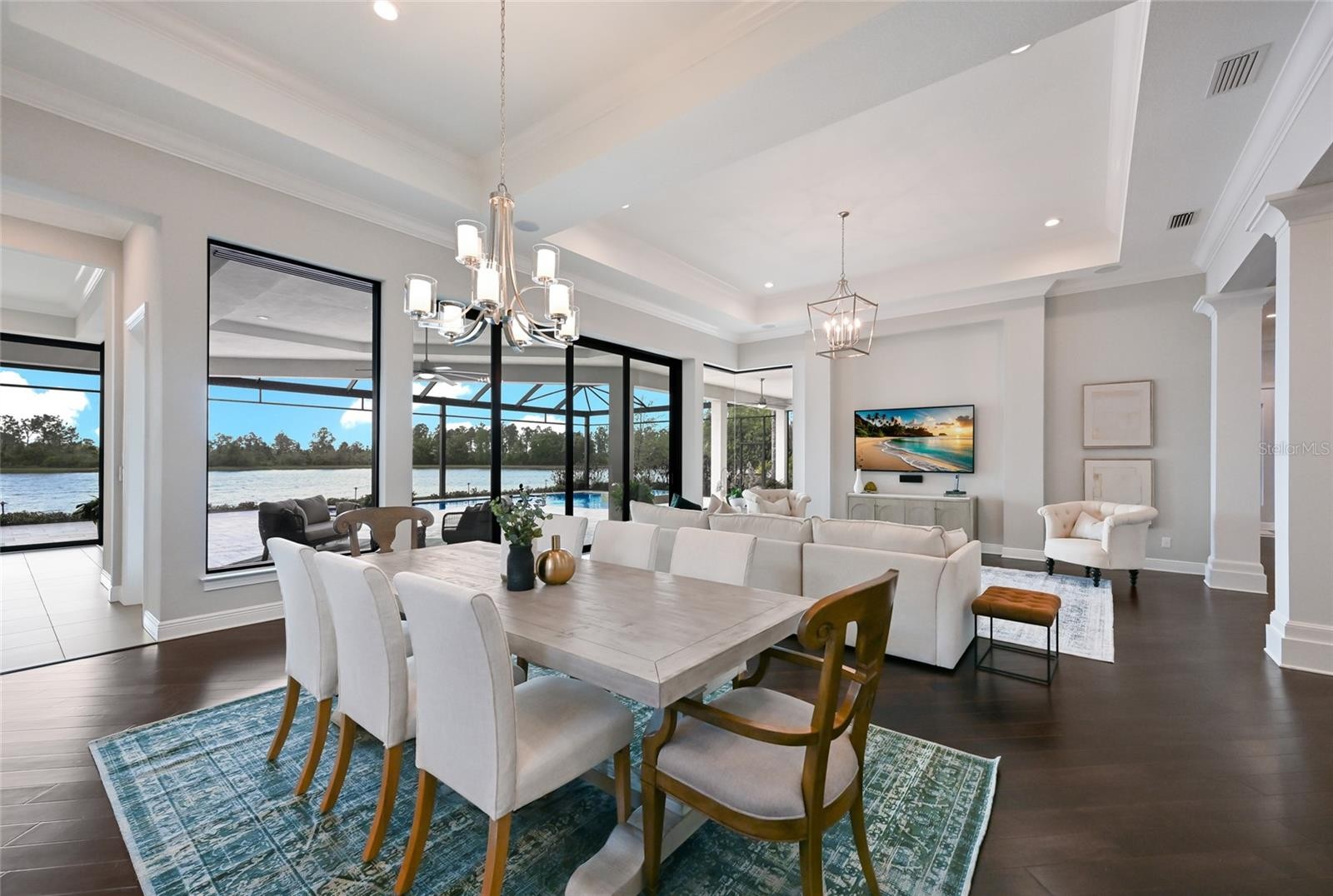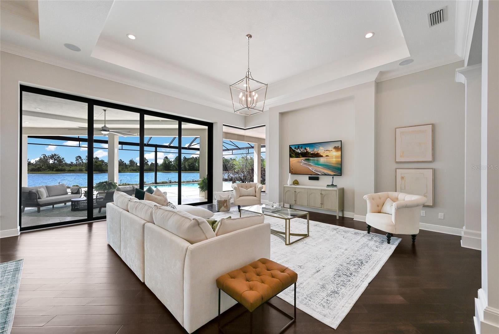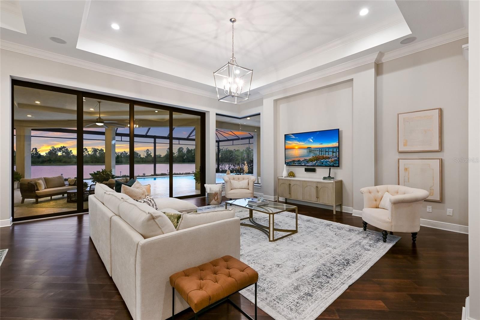 Set on over one acre with serene water and preserve views, this custom Lee Wetherington residence offers a refined balance of thoughtful design, privacy, and relaxed luxury living. Positioned to capture the natural beauty of its surroundings, the homesite provides a sense of quiet seclusion while remaining moments from Lakewood Ranch’s most desirable destinations. The well-designed floor plan offers both comfort and versatility, featuring three bedrooms, four bathrooms, two private offices, and a spacious bonus room, ideal for work, relaxation, or hosting guests. The primary suite serves as a true retreat, where double doors open directly to the lanai, inviting in soft natural light and tranquil views. The spa like bath features a large walk-in shower, soaking tub, dual sink vanity with custom cabinetry, and generous custom walk-in closets. Privately positioned within the split floor plan, the two guest suites offer exceptional comfort and privacy for visitors. Each suite includes a walk-in closet and an ensuite bath with oversized custom tiled showers, creating a welcoming and well-appointed space for family and guests alike. At the heart of the home, the chef’s kitchen blends beauty and functionality, appointed with a Miele induction cooktop and hood, Miele dishwasher, Sub Zero refrigerator, and Wolf microwave and oven. A large walk-in pantry provides additional storage and convenience, while the open design allows the kitchen to flow effortlessly into the surrounding living spaces, making it equally suited for everyday living and entertaining. Designed to embrace Florida’s indoor-outdoor lifestyle, expansive sliders from the great room open to an oversized lanai overlooking peaceful water and preserve views. The outdoor living space offers a pool and spa, outdoor kitchen, and generous areas for both dining and lounging, creating an inviting setting for relaxed afternoons or elegant evening gatherings. A perfect blend of functionality and privacy, the setting invites beautiful sunrises, sunny afternoons by the pool, and peaceful evenings enjoying the tranquil natural surroundings. The pool was refreshed with new PebbleTec in 2025, while the ClearView screen enclosure allows the surrounding landscape to remain the focal point. Additional features further enhance the home’s comfort and functionality, including a whole house generator, two tankless hot water heaters, and two air conditioning systems. An extended three car garage offers generous space for vehicles, storage, or recreational equipment. Located within the gates of The Concession and just minutes from UTC, Waterside dining and shopping, and the Gulf Coast’s renowned beaches, the home offers convenient access to Sarasota’s vibrant lifestyle while maintaining the privacy and exclusivity that define the community. Opportunities to enjoy this level of privacy, thoughtful design, and expansive outdoor living are truly rare.