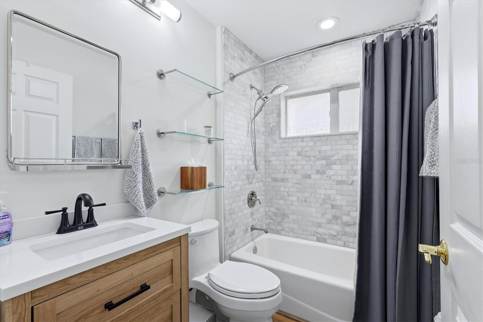 Welcome to your private slice of paradise behind the gates of Edgewater Village in Lakewood Ranch, where style, comfort, and wellness come together effortlessly. Enter inside this beautifully reimagined 4-bedroom, 2-bath residence and you are immediately greeted by a bright, modern, and open ambiance, enhanced by elegant luxury vinyl flooring that flows seamlessly throughout the home. Head outside to your large, extended lanai retreat, complete with a heated Mineral Ionization pool, (an advanced, health-conscious alternative to traditional chemicals) featuring a soothing cascading waterfall and a dramatic fire pit feature, creating your own resort-style oasis right at home. At the heart of the home is a stunning, fully remodeled kitchen, showcasing solid wood cabinetry, quartz countertops, stainless steel appliances, and a gas range and hood. This inviting space opens effortlessly to the family room and casual dining area, making it ideal for both entertaining and everyday living. The serene and spacious primary suite offers a true retreat, featuring a large walk-in closet, dual sinks, marble countertops, and a separate step-in shower alongside an elegant soaking tub. A thoughtfully designed split floor plan provides privacy, with two guest bedrooms tucked away behind a stylish barn door just off the kitchen. An additional fourth bedroom with direct lanai access offers flexibility as a guest room, home office, or den. What truly sets this home apart is its commitment to health-conscious living. From low- and no-VOC paints to, a reverse osmosis water filtration system and a chlorine-free, eco-friendly pool, every detail has been carefully curated with wellness in mind. Additional highlights include: New Tile Roof in 2019, New Pool Heater 2026, High ceilings and Crown moldings, Plantation shutters throughout, updated Ceiling Fans and Central Vacuum System. All of this is located in Edgewater Village, ideally situated just off University Parkway, only minutes from UTC mall, Lakewood Ranch Main Street, Waterside Place, I-75, downtown Sarasota for culture and the arts, St Armand's and our world-renowned Siesta Key and Lido beaches. With an incredibly low HOA of just $150 per year, this home offers luxury living without compromise. If you have been searching for a home that truly has it all...this is it. Schedule your private showing today.