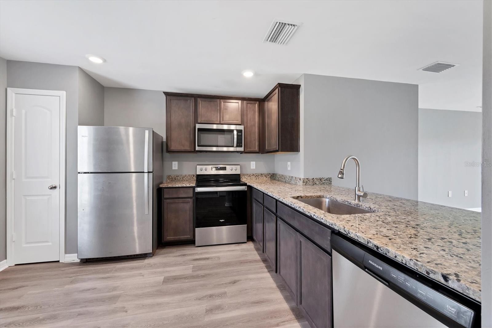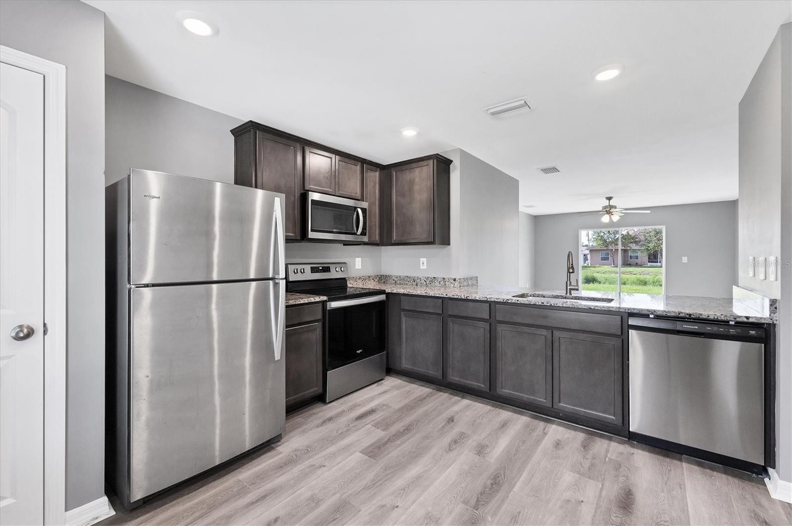 PRICE IMPROVEMENT!! This like-new 3-bedroom, 2-bath home with 1,274 sq ft, built in 2021, offers a modern open floorplan with a desirable split-bedroom layout. The kitchen is beautifully appointed with granite countertops, upgraded cabinetry, and stainless steel appliances, while the bathrooms feature sleek quartz surfaces. Luxury vinyl plank flooring runs throughout the home, providing both style and durability. Enjoy a peaceful view of the brook from the extra large backyard. Additional highlights include a spacious 2-car garage and a location in a rapidly growing area with new homes under construction, adding value and appeal to the neighborhood.