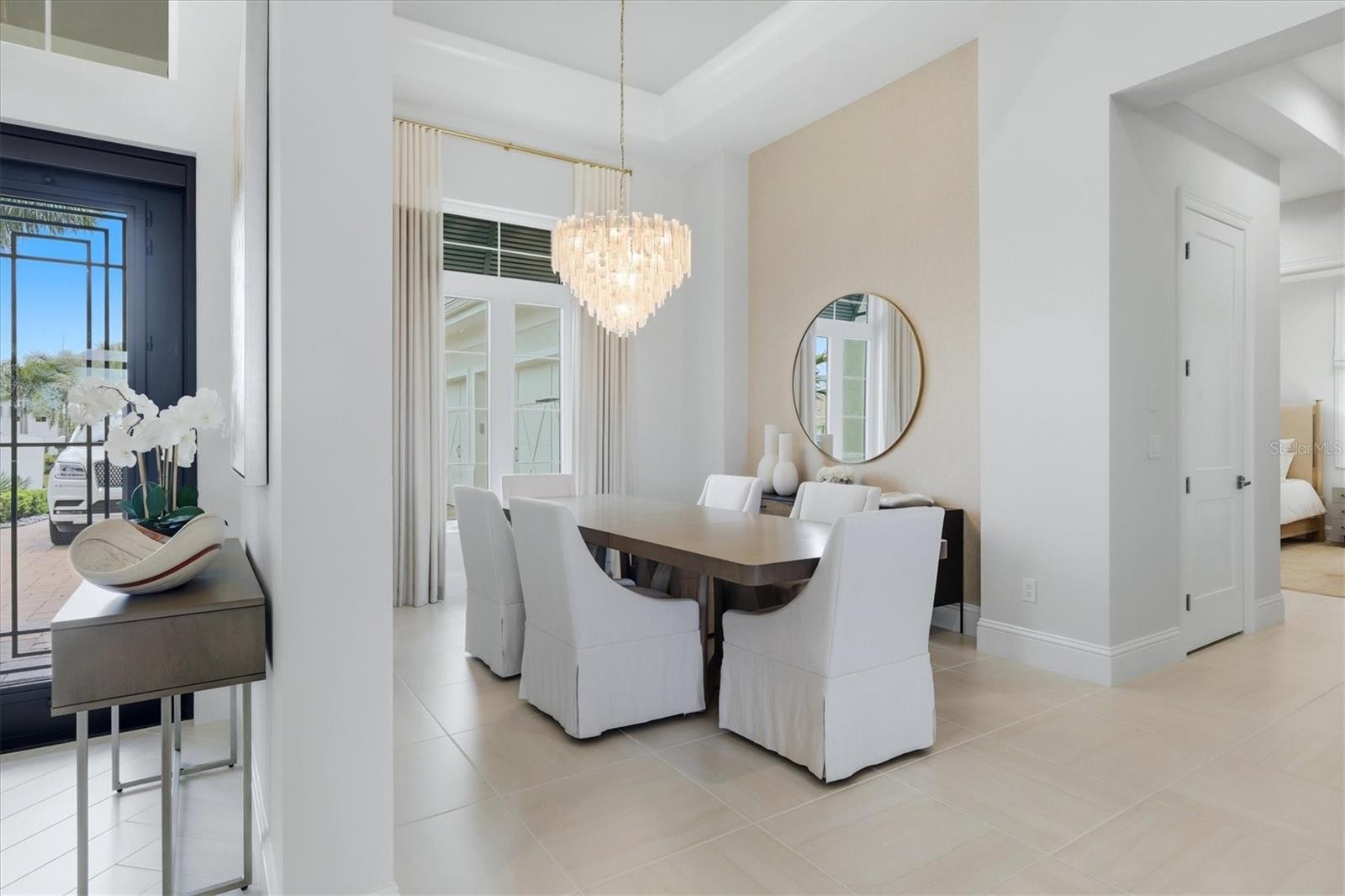 Under contract-accepting backup offers. Experience refined luxury in this former Muirfield IX, British West Indies model home, by Stock Luxury, perfectly positioned on a premier west-facing waterfront homesite spanning over .62 acres and surrounded by lush, manicured landscaping. Offering over 3,562 square feet under air and 5,451 total square feet of covered living space, this exceptional residence showcases an open-concept floorplan designed for both everyday living and elegant entertaining. The home features three spacious ensuite bedrooms, with a versatile bonus room that can easily be converted into a fourth bedroom, along with a private study and 4.5 beautifully appointed baths. Ten-foot sliding glass doors flood the interior with natural light, seamlessly blending indoor and outdoor living. As a former model, the home is enhanced with upscale designer lighting, intricate ceiling details, and high-end finishes throughout. Step outside to an extraordinary outdoor living retreat designed to impress. Enjoy treated wood ceilings, travertine flooring, and a cozy gas fireplace, all complemented by a fully equipped outdoor kitchen with island bar seating, mini refrigerator, and natural gas grill. Multiple gathering areas provide the perfect setting for entertaining, including space for chaise lounges, a firepit with Adirondack chairs, and private access from the primary suite through French doors leading to a stunning saltwater pool and spa and panoramic pool screens for the ultimate views. Additional features include a three-car garage, impact glass throughout, and a whole-house generator—offering both luxury and peace of mind. Located within The Lake Club at Lakewood Ranch, a premier gated community known for its exceptional amenities and lifestyle, this home presents a rare opportunity to own a true showpiece in one of the area’s most sought-after neighborhoods.