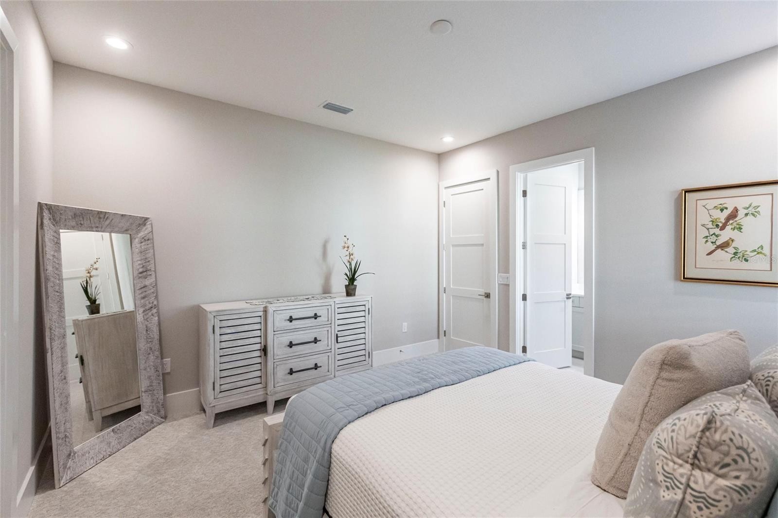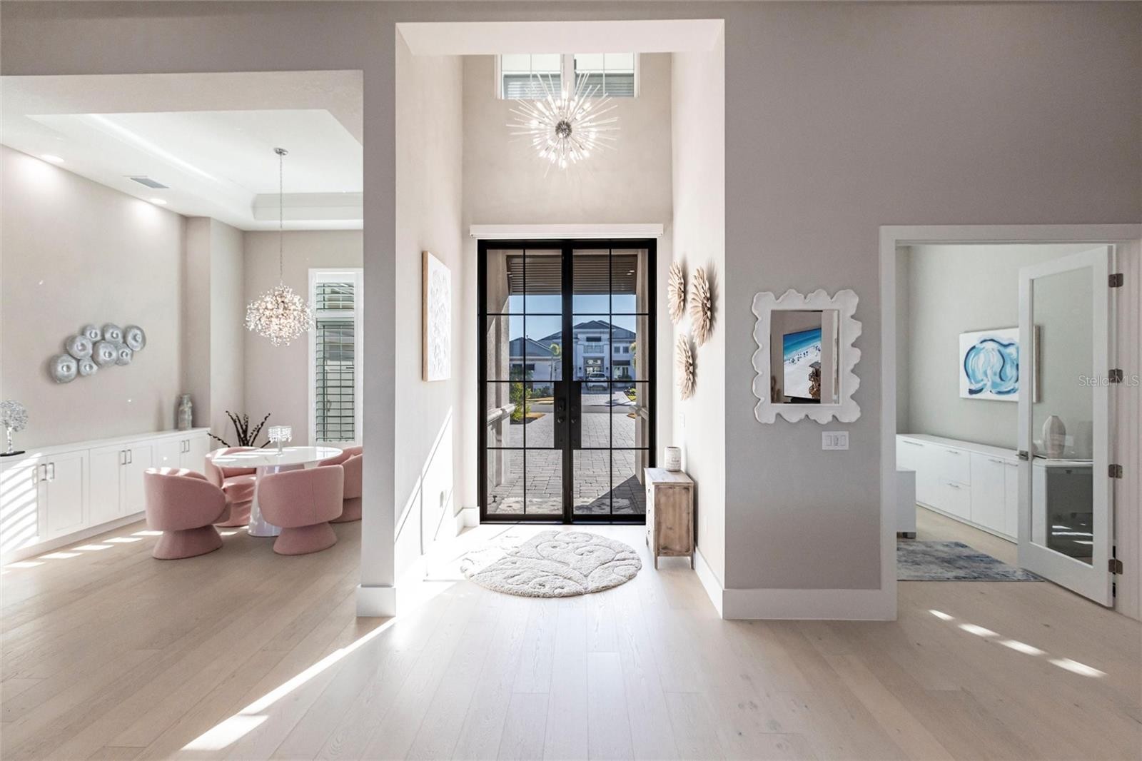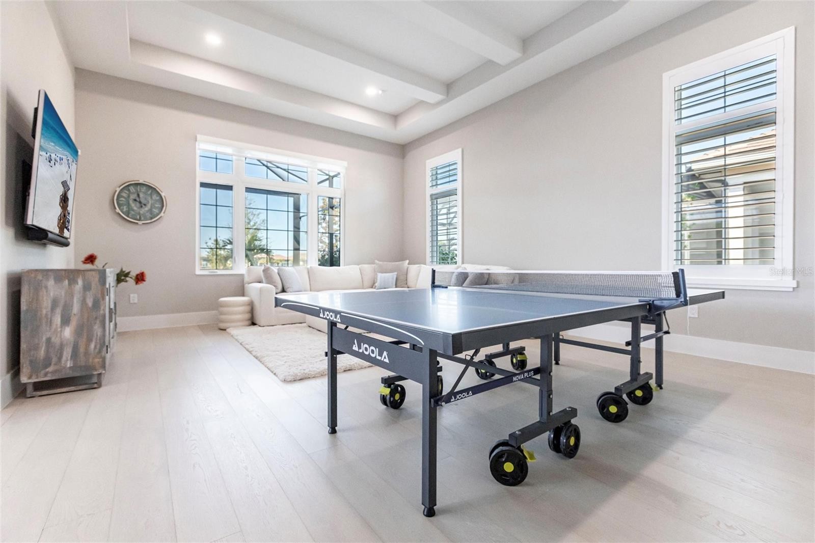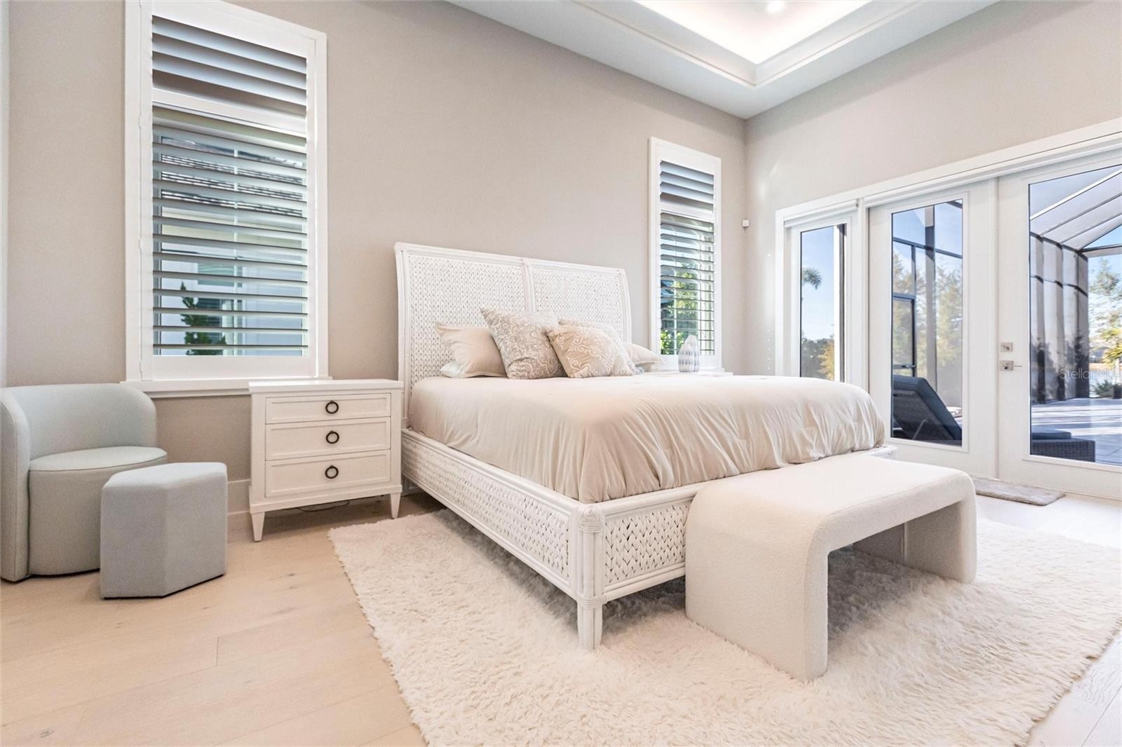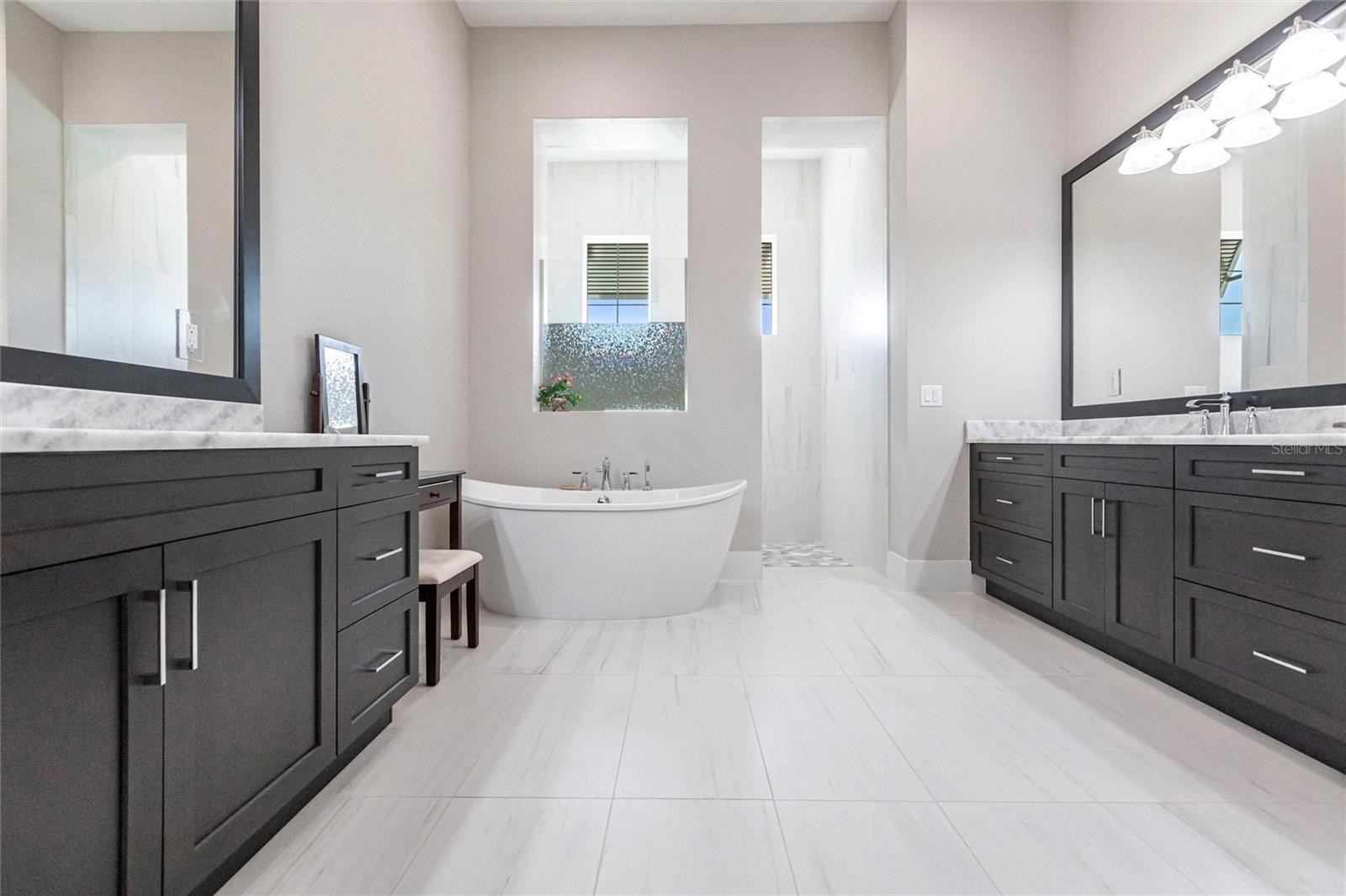 Experience refined Florida living in this nearly brand-new 2024 Stock Home, beautifully positioned to capture stunning full lake views and designed for effortless indoor-outdoor living. This exceptional residence offers an open split-floor plan, soaring ceilings, and designer finishes throughout, creating a bright, elegant, and inviting atmosphere from the moment you enter. Spanning 3,936 sq. ft. of living space (over 5,800 sq. ft. total), the home features 3 bedrooms, 4.5 baths, a private den, formal dining room, and an expansive bonus room—ideal as a media lounge, game room, home gym, or guest retreat. The heart of the home is a chef-inspired kitchen with an oversized island, premium appliances, abundant cabinetry, and seamless flow into the spectacular great room, where 15-foot coffered ceilings and 10-foot pocket sliding doors frame sweeping water views. The primary suite is a serene retreat with direct lanai access, a spa-style bath with soaking tub and walk-in shower, and dual custom walk-in closets. Two additional guest suites each offer private ensuite baths and generous closet space. Show-Stopping Outdoor Living: The oversized, resort-style lanai with gorgeous sunset views is truly one of the home’s standout features—one of the largest in the community—complete with heated saltwater pool & spa, glass fireplace for year-round ambiance, fully equipped summer kitchen, firepit with panoramic lake views, ample covered seating and entertainment space for unforgettable gatherings. Other Premium Upgrades & Comfort Features: * impact windows * Hunter-Douglas powered shades * engineered hardwood flooring * water softener * hot water recirculation system * whole-house surge protection * plantation shutters * gas water heater * irrigation system * advanced security provide both luxury and peace of mind. Located in one of Lakewood Ranch’s most prestigious gated communities, residents enjoy access to a grand clubhouse, spa, fitness center, resort pools, tennis courts, and concierge-style amenities. Furniture is negotiable—move in with ease and start enjoying the Florida lifestyle immediately.