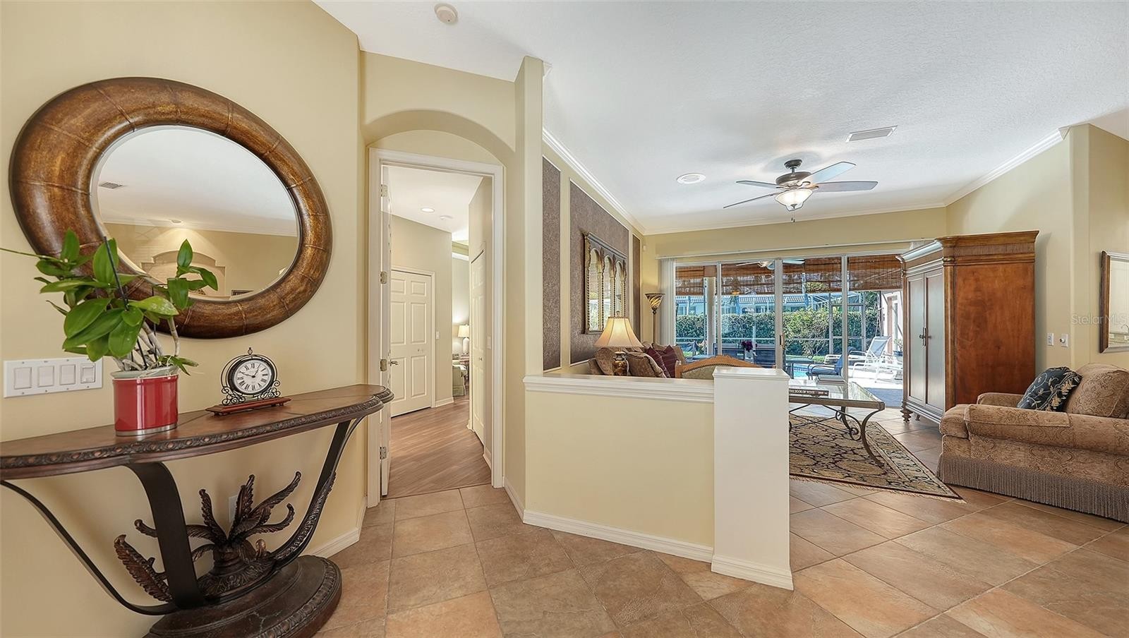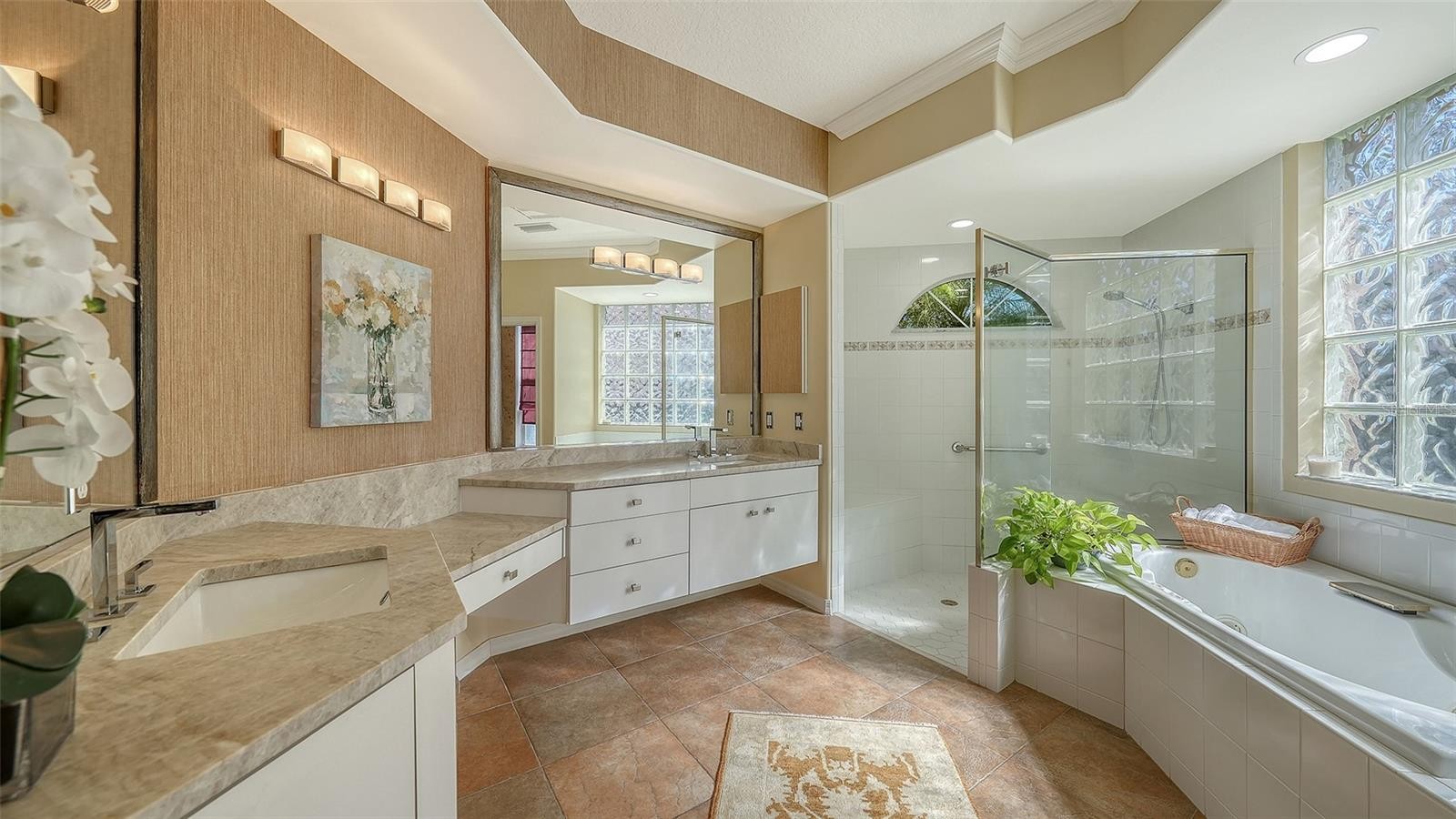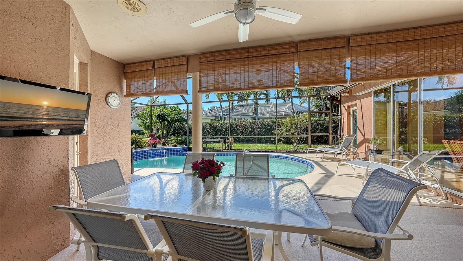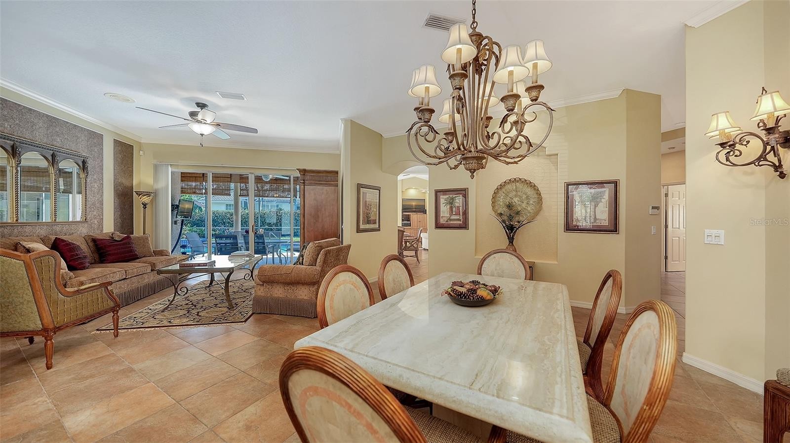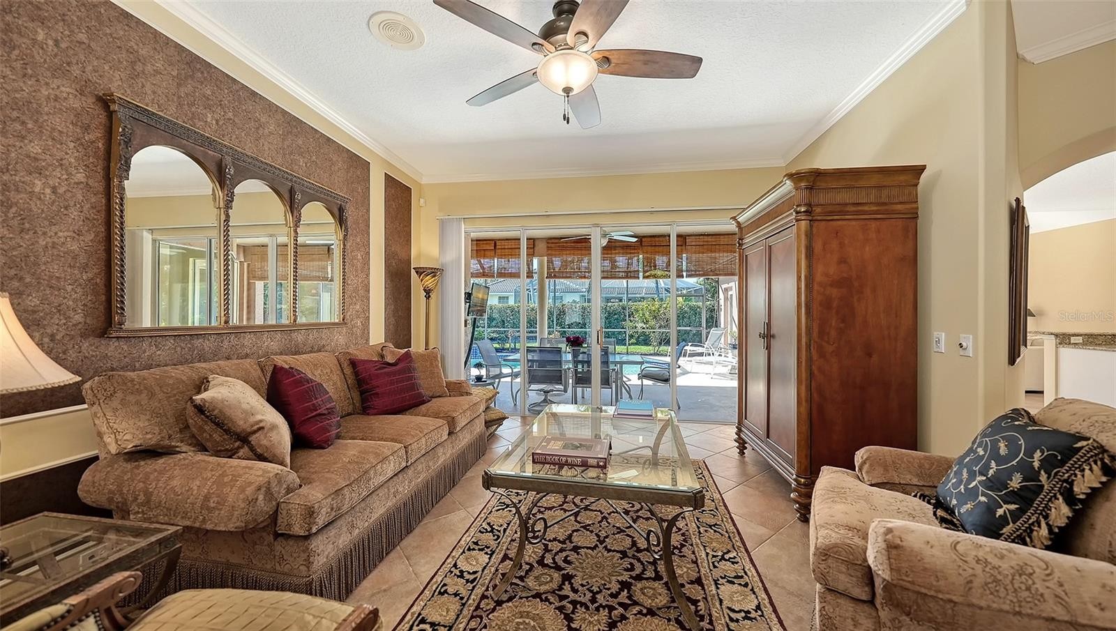 Classic style and beautifully maintained pool home in the gated Palmer Ranch community of Turtle Rock. Bright, open floor plan and inviting indoor-outdoor living. Traditional layout provides excellent flexibility with separate living, dining and family rooms, room for a baby grand piano! Enhanced by ceramic tile flooring laid on the diagonal, architectural niches, crown molding, recessed lighting and generous storage throughout. Large covered entry leading to the spacious foyer with decorative inlay and coat closet create a welcoming first impression. The kitchen features beveled-edge granite countertops, stainless steel appliances, under-cabinet lighting, large pantry closet, and an eat-in breakfast nook with an aquarium window and built-in desk nook. Opening to the family room with vaulted ceiling, built-ins and a full wall of pocketing sliding glass doors leading to the pool. A convenient powder bath also serves as the pool bath. The primary suite offers lanai access, tray ceiling, two walk-in closets, and an ensuite bathroom with dual vanities, makeup vanity, updated countertops and lighting, Jacuzzi tub, large tiled walk-in shower with built-in bench, and a private water closet. Two additional bedrooms share a full bath with granite countertop; one bedroom includes stylish built-ins and a desk, making it ideal as a home office, den, or guest room with a sleep sofa and closet. Well-appointed laundry room with LG washer and dryer, sink, built-in cabinetry and closet. Two-car garage with epoxy flooring, built-in storage and an impressive 13-foot-long air-conditioned and heated storage room. Outdoor living with an inground pool featuring a waterfall, bronze screen enclosure, outdoor shower, and a covered lanai with ceiling fan and sun shades. A/C system replaced (Nov 2023), roof replaced (2016), instant tankless hot water heater, reverse osmosis water filtration system and lawn irrigation with reclaimed water. Mature, lush landscaping surrounds the property. Turtle Rock is a gated community known for its scenic lakes, mature landscaping, and resort-style amenities, including a heated community pool, clubhouse, tennis and pickleball courts, basketball court, playground, and miles of walking and biking trails. Ideally located just minutes from the Legacy Trail for walking and biking, shopping, dining, top-rated schools, and a short drive to world-famous Siesta Key Beach.
