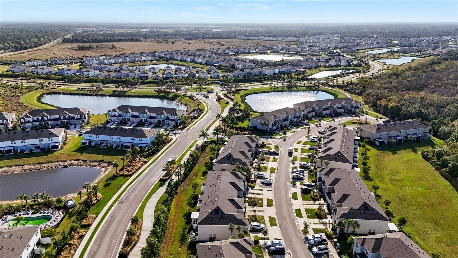 Step inside and you’ll instantly feel at home in this bright and airy 3 bedroom, 2.5 bath with loft townhome. The kitchen is a true highlight with its oversized quart stone island, stone countertops, stainless steel appliances, and sleek ceramic tile flooring. This townhome features a full home filtered water and softening system, plus a reverse osmosis system for incredibly clean, great-tasting water throughout. The open kitchen, dining, and living area flows together and with those high ceilings and the patio view, plus being an end unit, it’s the perfect setup for hanging out and entertaining. This rare end unit is tucked inside the highly sought after Skye Ranch community, a place known for its welcoming feel and growing popularity. You’ll enjoy dog friendly walking trails, a beautiful community pool, Turner Park, and access to top rated schools, including the brand new Skye Ranch Elementary opened in Fall 2025. It is a neighborhood designed for comfort, connection, and convenience. And here’s a huge perk. These original townhomes are exempt from the additional CDD bond, giving you yearly tax savings that make this home an even smarter choice. Whether you are looking for a fantastic place to live or a great investment, this one checks all the boxes.