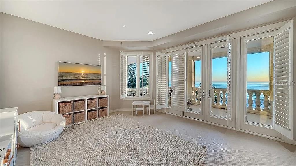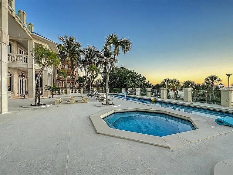 Regent’s Court: The Pinnacle of Luxury on Florida’s West Coast Regents Court: Where Legend Meets Luxury Beyond the gates of the Longboat Key Club lies an estate that doesn’t just live — it performs. A dramatic masterpiece perched on Florida’s west coast, this estate commands over an acre of pure beachfront with 150 feet of unspoiled Gulf frontage, where sky and water fuse in ever-changing hues at dawn and dusk. Your arrival is nothing short of cinematic: majestic wrought-iron gates part to reveal a sweeping driveway paved in artistic stone, each curve leading closer to the heart of the home. A side-entry garage, cavernous in its capacity, hides generous storage; beside it, a full-house generator promises unbroken comfort even when the world goes dark. Inside, every surface and silhouette feels sculpted for impact. Cream marble floors echo with light. Designer lighting drapes each room in mood and elegance. Premium stainless steel appliances anchor a gourmet kitchen, with a bar area that’s built for both intimate soirées and lavish celebrations. Across stately arches, French doors open into an office and dining space. Ascend via elevator through all four levels, each floor unveiling rooms with cathedral ceilings, balconies with sweeping views over the Gulf. The two-story library has custom woodwork. Adjacent to the large primary bedroom is the super-master bath with both tub and shower framing the Gulf in panoramic glory. On the second living level are three guest suites with private porches that render a daily spectacle — mornings bathed in soft dawn light over the sand dunes and the Gulf, evenings lit by fading sun dancing across the waves. French doors open wide, blurring the boundary between indoors and the beach. The third living level includes an all inclusive guest quarters—your private sky-retreat. Two bedrooms, two baths, a full kitchen, a spacious living and TV room. From its large, sweeping porch, the views stretch across Sarasota Bay and the Gulf’s glassy expanse. By day the Bay shimmers under sunlight, by dusk the city lights begin their soft glow. This is a space where family, friends—or guests—can escape, entertain, or simply soak in nature’s most breathtaking performances. Outside is not secondary, but rather the heart of this sanctuary. Lush tropical landscaping surrounds the estate. There is a NCAA lap pool with motorized cover, a deck edged with gas torches, fire pits that flicker under the stars. There’s an outdoor ice tub plus an outdoor kitchen with refrigerator and a gas grill. A special gym on the second floor is cooled to perfection, central control at your fingertips. Roll-safe shutters provide safety without sacrificing style. At every moment, this home evokes a rare elegance — you’re not just observing the sunset over the Gulf, you are enveloped by it. Minutes from Sarasota, St. Armand’s Circle, Anna Maria — yet here, time moves differently, more luxuriously. This is not just a home. This is a legacy.