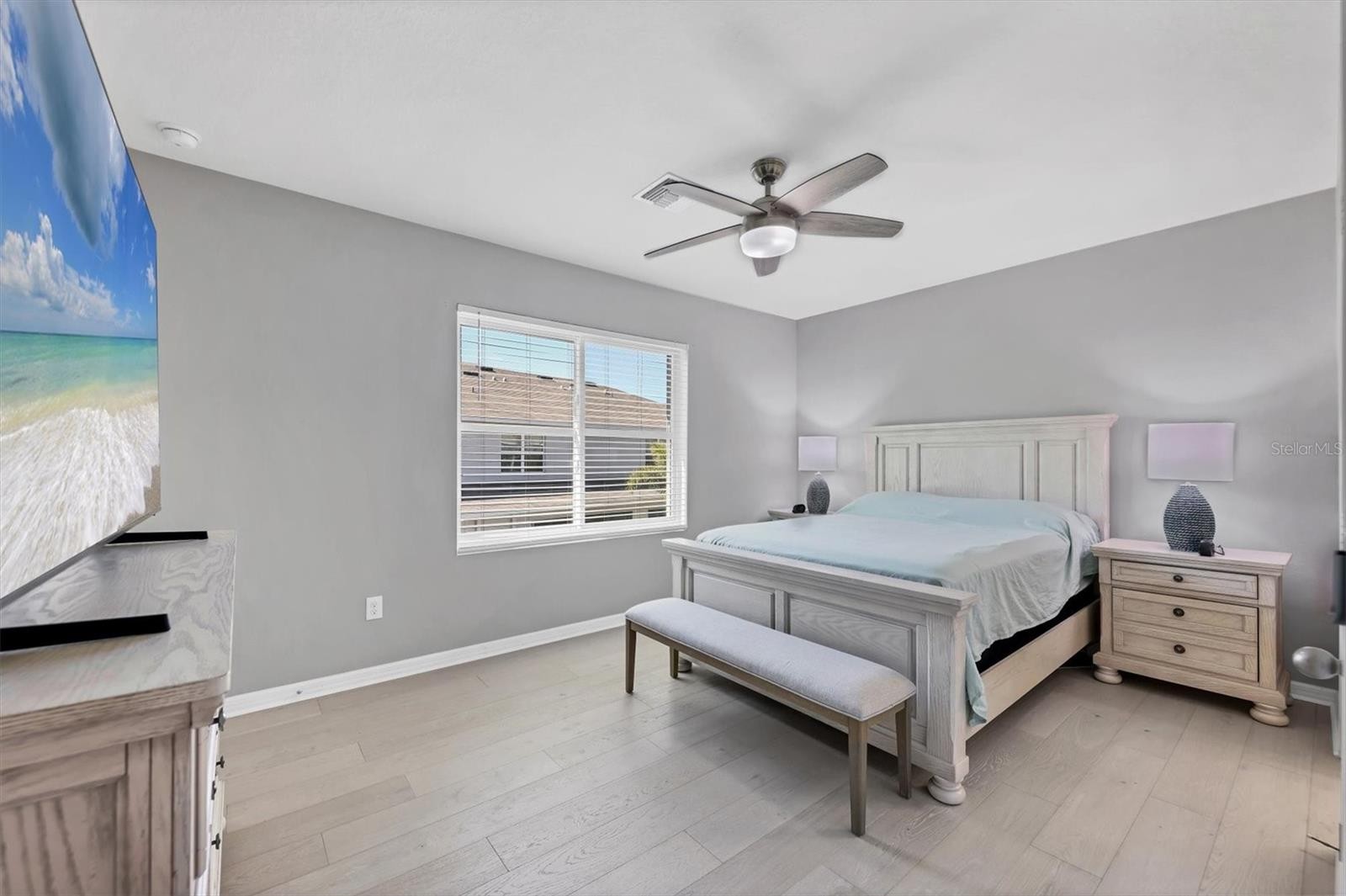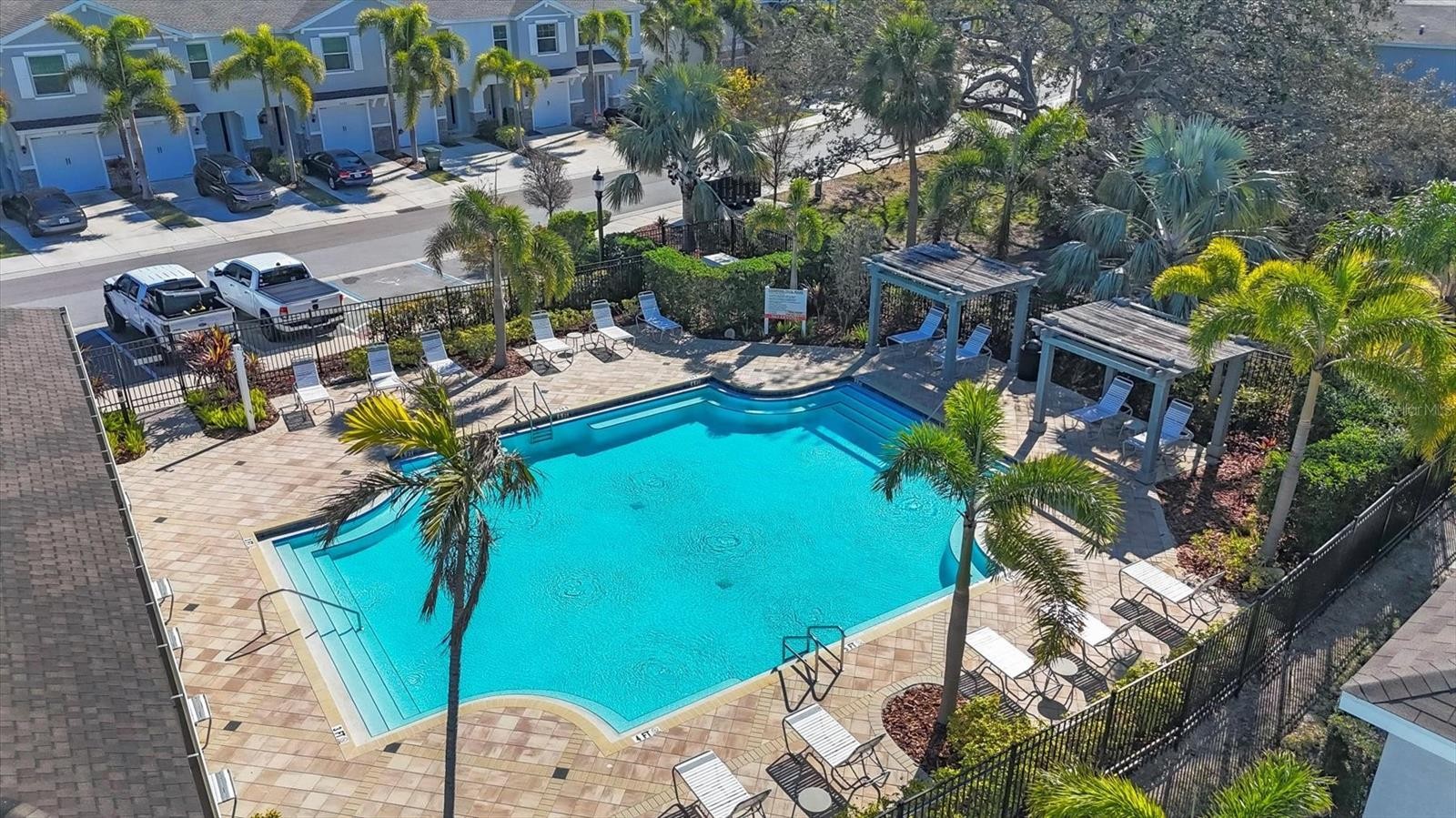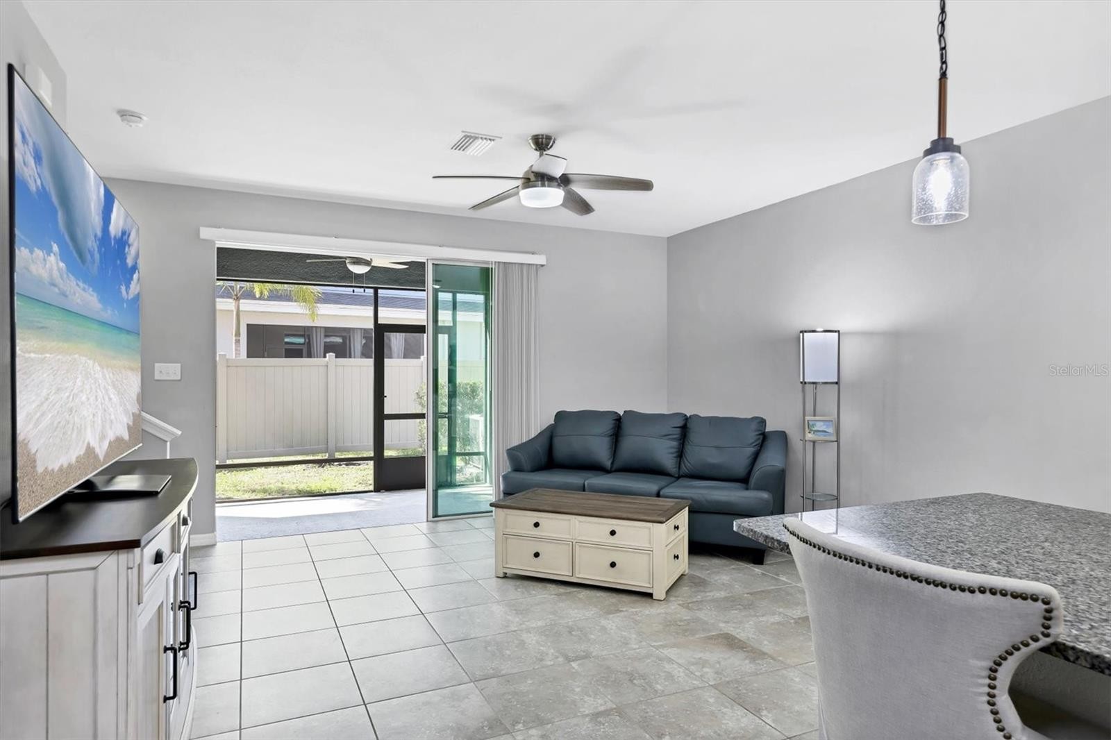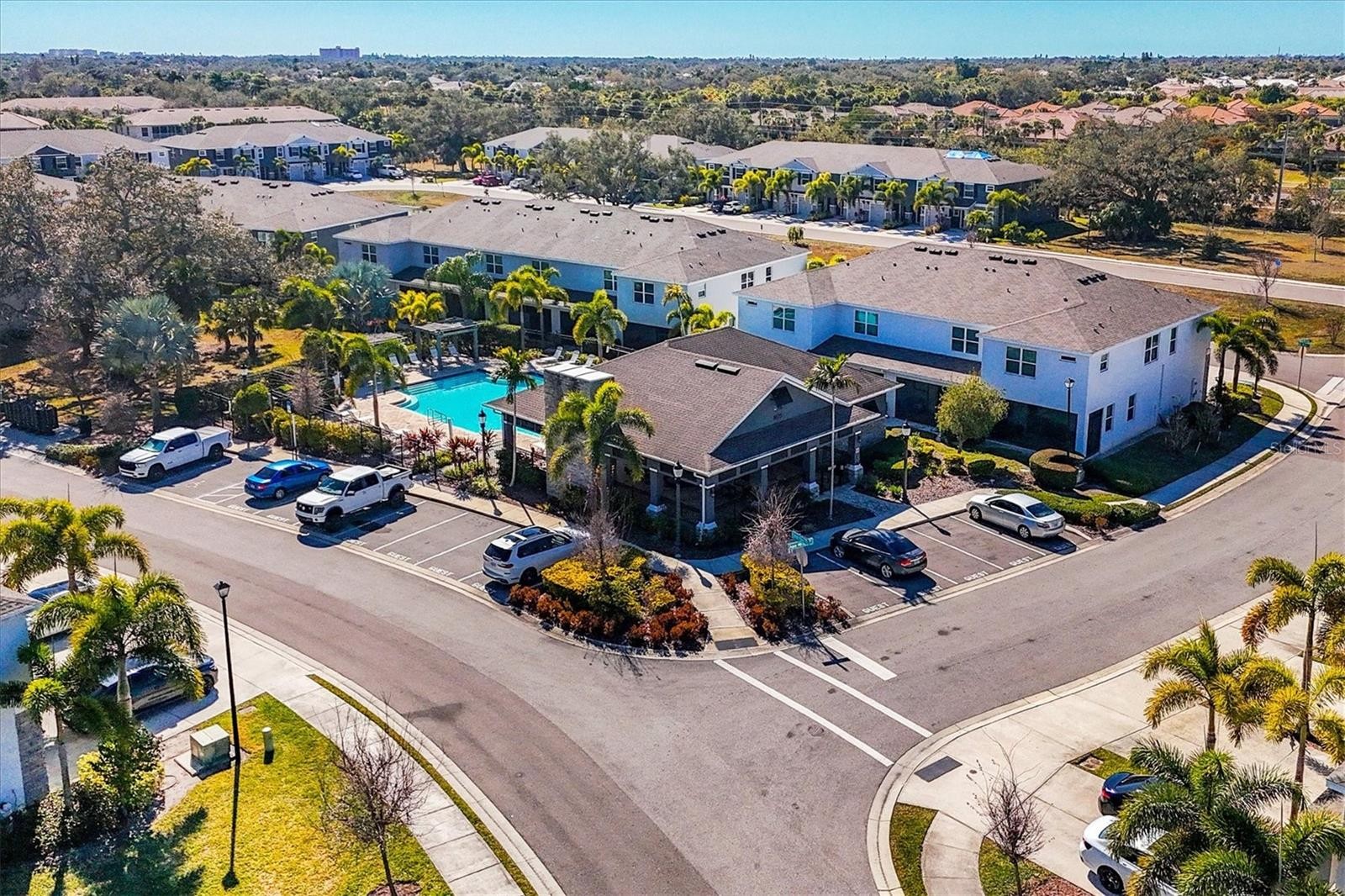 Welcome to 8651 Stargazer Street a move-in ready, open-concept townhome located in a pet-friendly gated community just steps from the Legacy Trail and only minutes from Siesta Key Beach and all that Sarasota has to offer. Located in Flood Zone X (low-risk) and upgraded with Renewal by Andersen hurricane windows for added peace of mind, this home blends comfort and convenience. As you arrive, you’ll appreciate the two-car driveway, one-car garage, and covered front porch entry. Inside, tile flooring spans the entire first floor, enhancing the bright and open layout. The kitchen is beautifully appointed with stainless steel appliances, granite countertops, wood cabinetry, a complimenting backsplash, pendant lighting, and a large walk-in pantry. The dining area includes a walk-in storage closet, while the spacious living room overlooks the screened lanai. This area being the perfect spot to enjoy your morning coffee or unwind in the evening. For your convenience a half bath completes the first level. Upstairs, brand-new carpet runs throughout the stairway and second floor (excluding wet areas and the primary suite). The primary bedroom features engineered hardwood flooring, two walk-in closets, and an ensuite bathroom with two sinks and a generously sized walk-in shower. The guest bathroom offers a relaxing soaking tub. All three bedrooms include ceiling fans, and the second-floor laundry closet is equipped with a side-by-side washer and dryer plus additional storage space. The one car garage provides a spot to keep your car out of the Florida sun and store your beach chairs and other Florida necessities. When it’s time to enjoy the community, take a short stroll to the resort-style pool and covered cabana area. The nearby Legacy Trail offers miles of scenic paths for walking, running, biking, or connecting with friends. Just minutes away from the community are shopping, dining, and everyday conveniences. The monthly HOA fee of $350 includes exterior ground maintenance, water and sewer, community amenities, and the security of gated access. No CDD fee. Owners may lease their properties on a 7-month minimum lease, and up to three pets are permitted per residence. Recommended builder improvements to the ledger board have been completed. Don’t miss this opportunity to own a move-in ready home in one of Sarasota’s most desirable and convenient locations. Schedule your showing today!