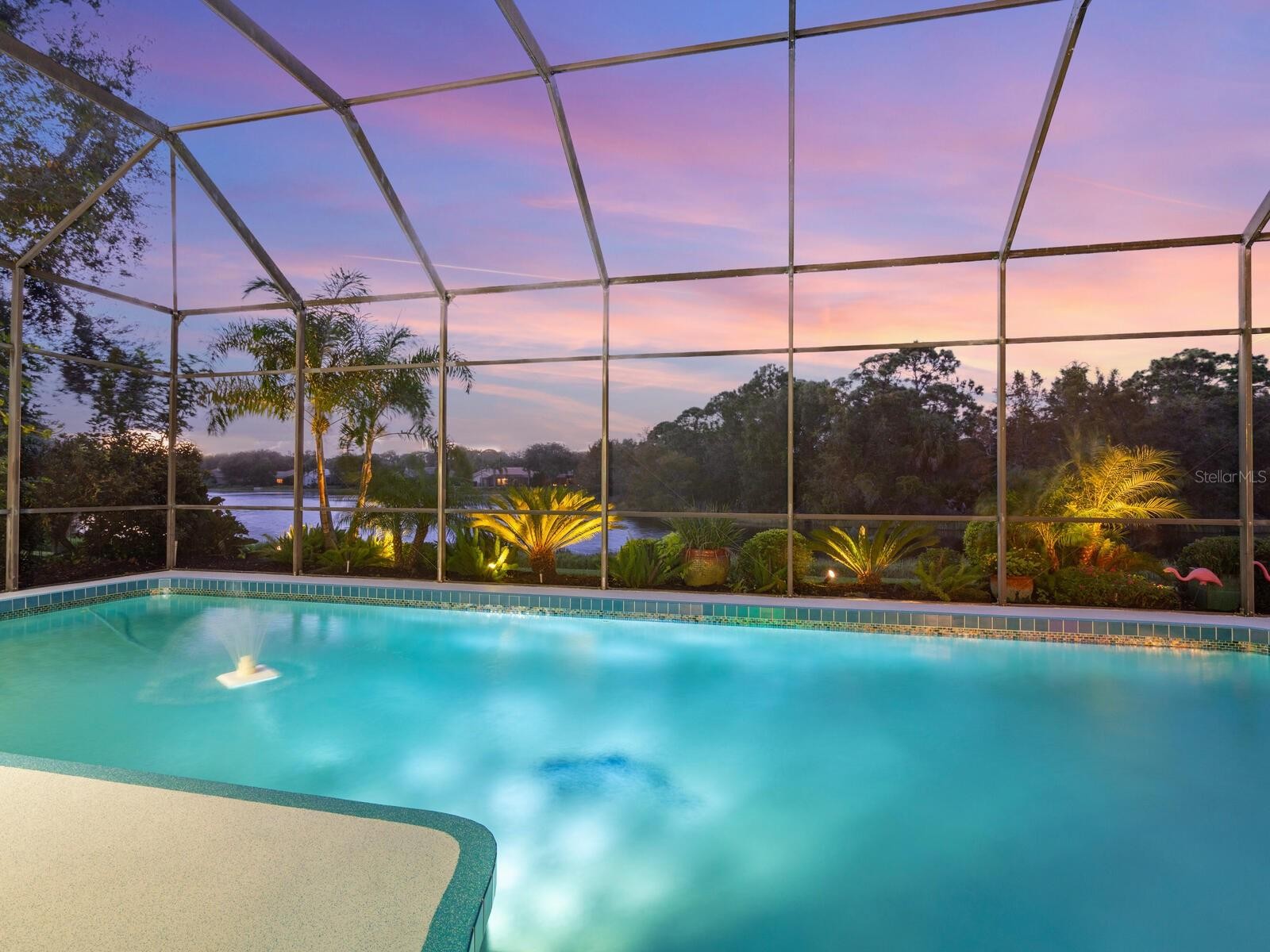 Experience an extraordinary blend of luxury, tranquility, and timeless elegance in this breathtaking Arthur Rutenberg lakefront estate. Offered $75,000 below appraised value and capturing approximately 500 yards of sweeping water views, this residence is even more impressive in person. Completely renovated between 2014–2016 and 2022–2025, this custom masterpiece is tucked within the respected guard-gated community of Deer Creek in Palmer Ranch. Dramatic 12-foot ceilings, stunning marble and glass architectural accents, transom windows, and exquisite marble flooring flood the home with natural light and refined elegance. The chef’s kitchen is a true showpiece, featuring stunning underlit Patagonia quartz from Brazil, custom cabinetry, a Bosch convection oven and microwave, French-door refrigerator, separate ice maker, and a striking partial glass ceiling and architectural feature wall that transform the entire space, all bathed in the light of a spectacular Swarovski chandelier. The expansive great room opens seamlessly to a spectacular 42-foot heated saltwater pool and overlooks the tranquil 9-acre lake, offering unforgettable sunsets and an endless variety of wildlife views. Designed for exceptional indoor-outdoor living, the residence provides over 3,000 square feet of interior living space plus an additional 1,500 square feet of outdoor living. The flexible floorplan includes three spacious bedrooms and a beautifully appointed office or optional fourth bedroom, complete with a cozy fireplace and plantation shutters. The primary suite is a private sanctuary, highlighted by fully marbled floors, soaring 12-foot walls, a dramatic five-foot crystal chandelier, and a glass-wrapped spa bath with walk-in shower, custom freestanding soaking tub, and a custom walk-in closet. Meticulously upgraded throughout, the home features energy-efficient zoned HVAC with warranty, foam insulation, two water heaters, heated bathroom fans, crown molding, upgraded LED lighting, triple sliding doors, a heat pump, reverse osmosis water system, and full storm protection. A three-car garage with 8-foot doors includes a walk-up, fully floored attic offering exceptional storage. The grounds are framed by mature oaks, bougainvillea, sago palms, creeping fig, and vibrant Birds of Paradise, creating a lush and private setting. Deer Creek is well-known for its stately guard-gated entrance, 17 scenic lakes, and serene upscale atmosphere—just 12 minutes to world-famous Siesta Key Beach and moments from shopping, dining, and cultural attractions. This exceptional lakefront residence truly represents the Pinnacle of Gulf Coast luxury living.