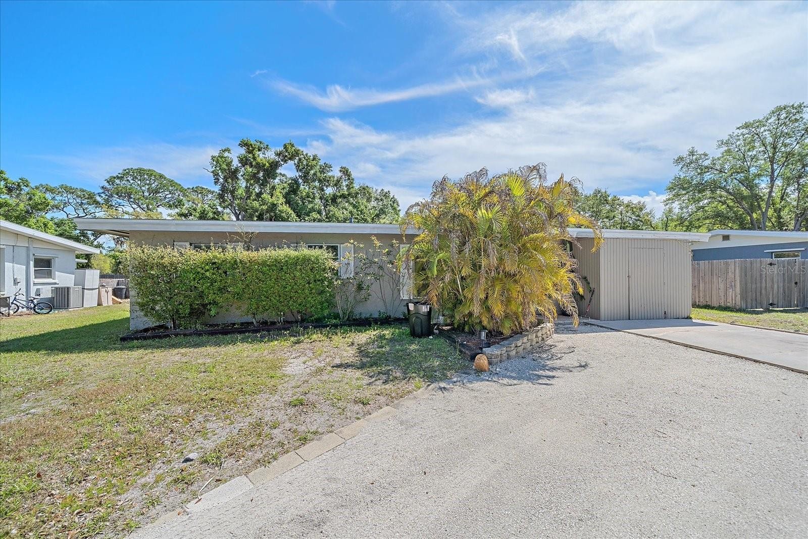 Charming 4-bedroom, 2-bath ranch-style home situated on a spacious quarter-acre lot in a quiet, dead-end street location. Built in 1958, this 1,702 sq ft property offers a functional layout with tile and laminate flooring throughout, abundant natural light, and generously sized living spaces. The home features a flexible floor plan with potential for an in-law suite, making it ideal for multigenerational living or added rental income. The kitchen and bathrooms provide an opportunity for cosmetic updates, allowing buyers to add value and customize to their taste. Enjoy a large, private backyard with mature trees, ample space for outdoor living, and room for boats, trailers, or additional storage. A wrap-around porch/deck and oversized shed add to the property's versatility. Conveniently located near shopping, dining, major roadways, and just a short drive to downtown Sarasota and area beaches.