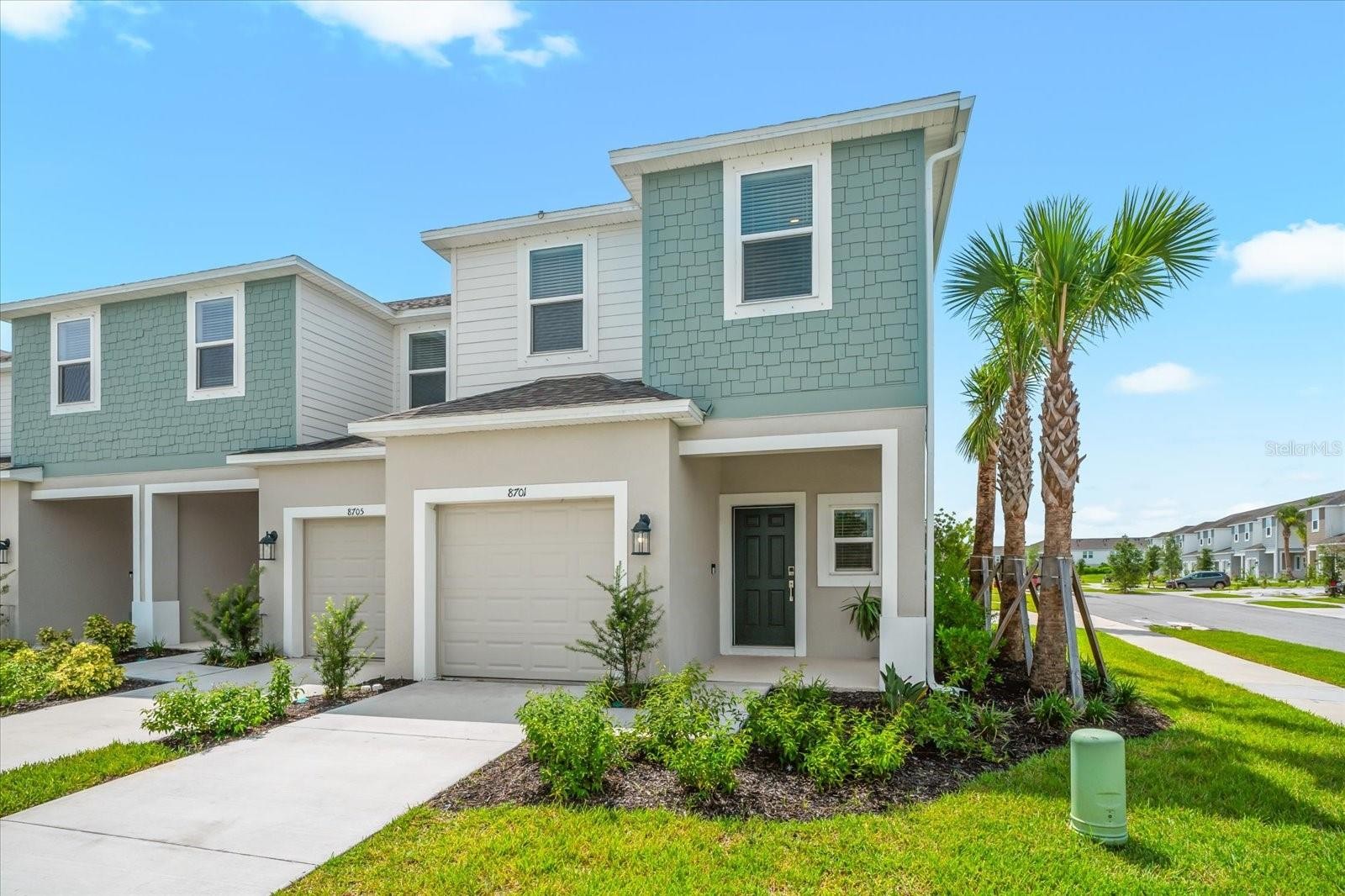 Gorgeous end-unit Marigold townhome in Skye Ranch featuring the largest floor plan available, offering extra space both upstairs and down. This spacious three-bedroom, two-and-a-half-bath layout is thoughtfully designed with a large open-concept living and dining area, perfect for entertaining or relaxing. The kitchen is a showstopper with an oversized quartz island, stainless steel appliances, recessed lighting, a walk-in pantry, and beautiful tile flooring throughout the first level. Double patio doors off the living room lead to a covered lanai and a private backyard with a grassy area and peaceful lake view to the left, creating a serene setting for morning coffee or evening sunsets. The one-car garage offers direct access into the home, with a convenient half bath downstairs for guests. Upstairs, the Marigold’s signature flex space offers endless possibilities, whether used as a sitting area, reading nook, home office, or display space for artwork. The primary bedroom provides a lovely second-story water view and includes dual sinks, a walk-in closet, and a private bath. Two additional bedrooms share a full bathroom with a tub and shower combo. As an end unit on a larger lot, the home enjoys added outdoor space and a charming garden area. Skye Ranch is known for its beautiful mature landscaping, winding sidewalks, and connection to nature with over 25 miles of trails and preserve views. Community amenities include two heated pools with cabanas and gas BBQ grills, plus immediate access to Turner Park with sand volleyball, basketball and tennis courts, a playground, baseball and soccer fields, lacrosse, two dog parks, and a catch-and-release fishing pier. Skye Ranch Elementary opens this fall with a focus on science, technology, engineering, agriculture, and math, and is located right within the community. Skye Ranch is tucked just off Clark Road for a direct 10-mile drive to Siesta Key, making it easy to enjoy the beach while living in one of Sarasota’s most desirable new communities. Come experience the best of both worlds: new construction surrounded by nature, with easy access to Siesta Key, shops, and restaurants. Call today to schedule your private showing.