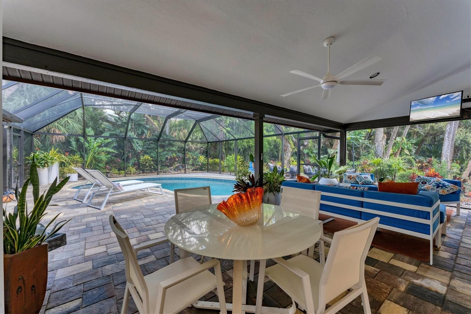 ENCHANTMENT IN MISTY CREEK – the opportunity for a “one in a million” property like this rarely comes on the market. Offering a lifestyle like that of a high-end resort and spa. Designed by a master gardener with ease of maintenance in mind, the backyard looks like something straight out of Selby Gardens. Nature lovers will enjoy seeing owls, deer, hawks, fish, and other wildlife daily. Orchids and a wide variety of flora, including some rare and collectible plants abound. The waterfall and pond can be observed and heard from vantage points throughout the home. Multiple “secret garden” spaces throughout the property give you the opportunity to reflect and simply enjoy nature. The outdoor lighting system is professionally designed to enhance the beauty of the property, especially the deck area in back that turns into your own private oasis. You're going to love the casual, contemporary design with mid-century elements. This 3-bedroom, 2-bath oversized 2-car garage pool home is nestled in The Preserve at Misty Creek. Set on .63 of an acre and tucked away within a CUL-DE-SAC at the coveted north end of Misty Creek, this home is, arguably, one of the best lots in all of Misty Creek and is in the X FLOOD ZONE, NO FLOOD INSURANCE REQUIRED. The main living areas and primary suite are light & bright. Pocket sliding glass doors open to the screened lanai & paver pool deck. There’s a covered seating area on the lanai that essentially brings the outdoors in and extends your living space. Seller improvements include a NEW ROOF (2021), NEW POOL CAGE (2018), POOL RESURFACING (2018), POOL HEATER (2018), NEW A/C (2017), NEW KITCHEN REMODEL, NEW BATHROOMS REMODEL, NEW APPLIANCES, NEW FRONT DOOR (2023), NEW OUTDOOR LIGHTING. High ceilings, crown molding, ceramic tile throughout the main living areas, and a laundry room that doubles as a butler’s pantry with additional cabinetry, sink, storage and countertop space all contribute to making this home not only beautiful, but functional. The Preserve at Misty Creek is a gated community of 302 single-family homes. It's an exciting time in Misty Creek Country Club as the Misty Creek golf course just re-opened after a multimillion dollar renovation! Perks of Misty Creek – NO MANDATORY GOLF MEMBERSHIP, a well-run responsive HOA with LOW HOA FEES, “A” RATED SCHOOL DISTRICT with school bus stops within the community, a security gate, the feeling of being in the country with close proximity to everything you need, an established community with many longtime residents, the wildlife, nature & abundance of 100+ year old oak trees just to name a few. Misty Creek offers convenient access to shopping, beaches, parks, dining, I75, golfing, boating, fishing & more! Don’t miss your opportunity to have your own personal sanctuary in this beautiful community!!! SCHEDULE A SHOWING TODAY!!!