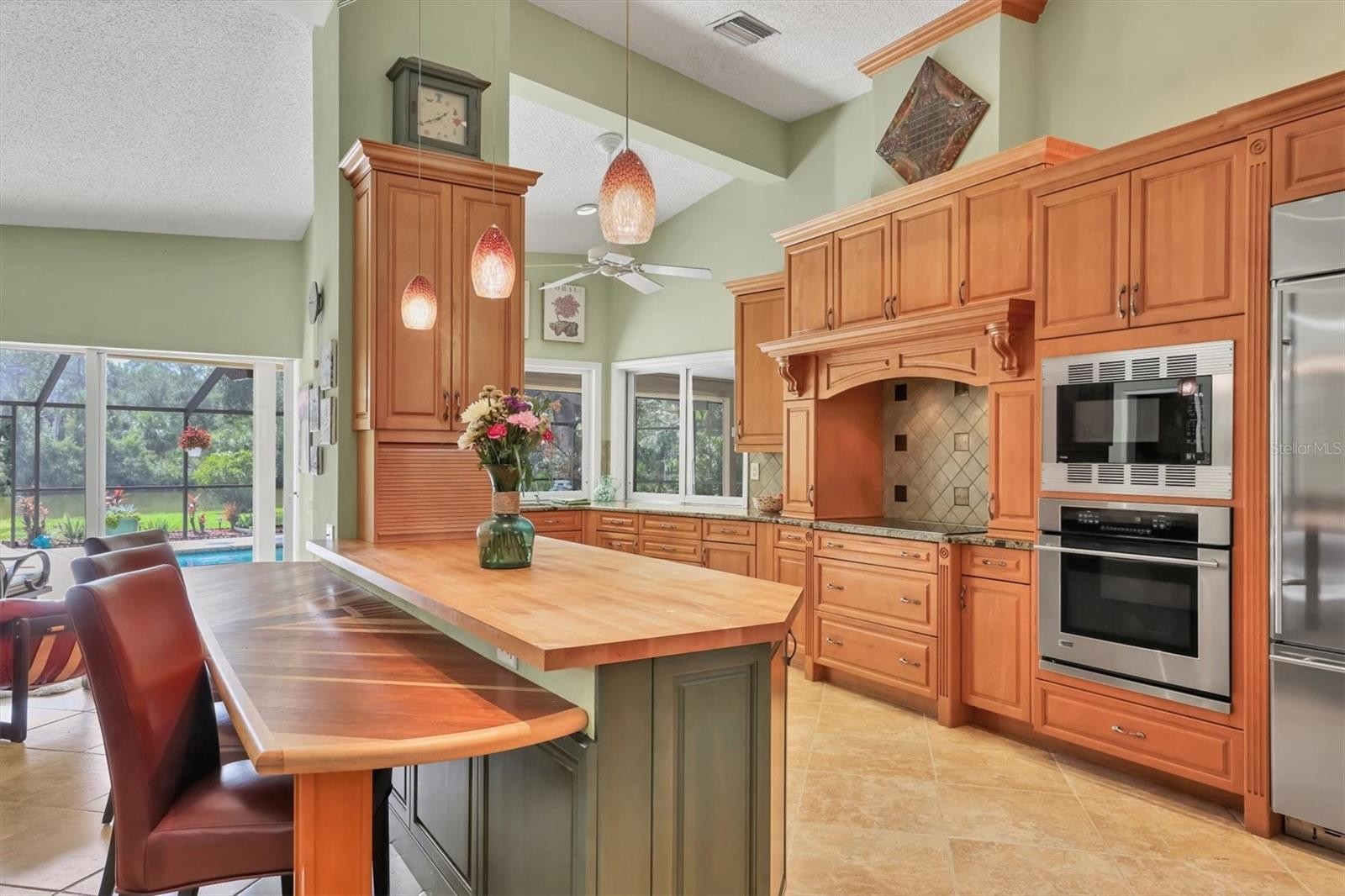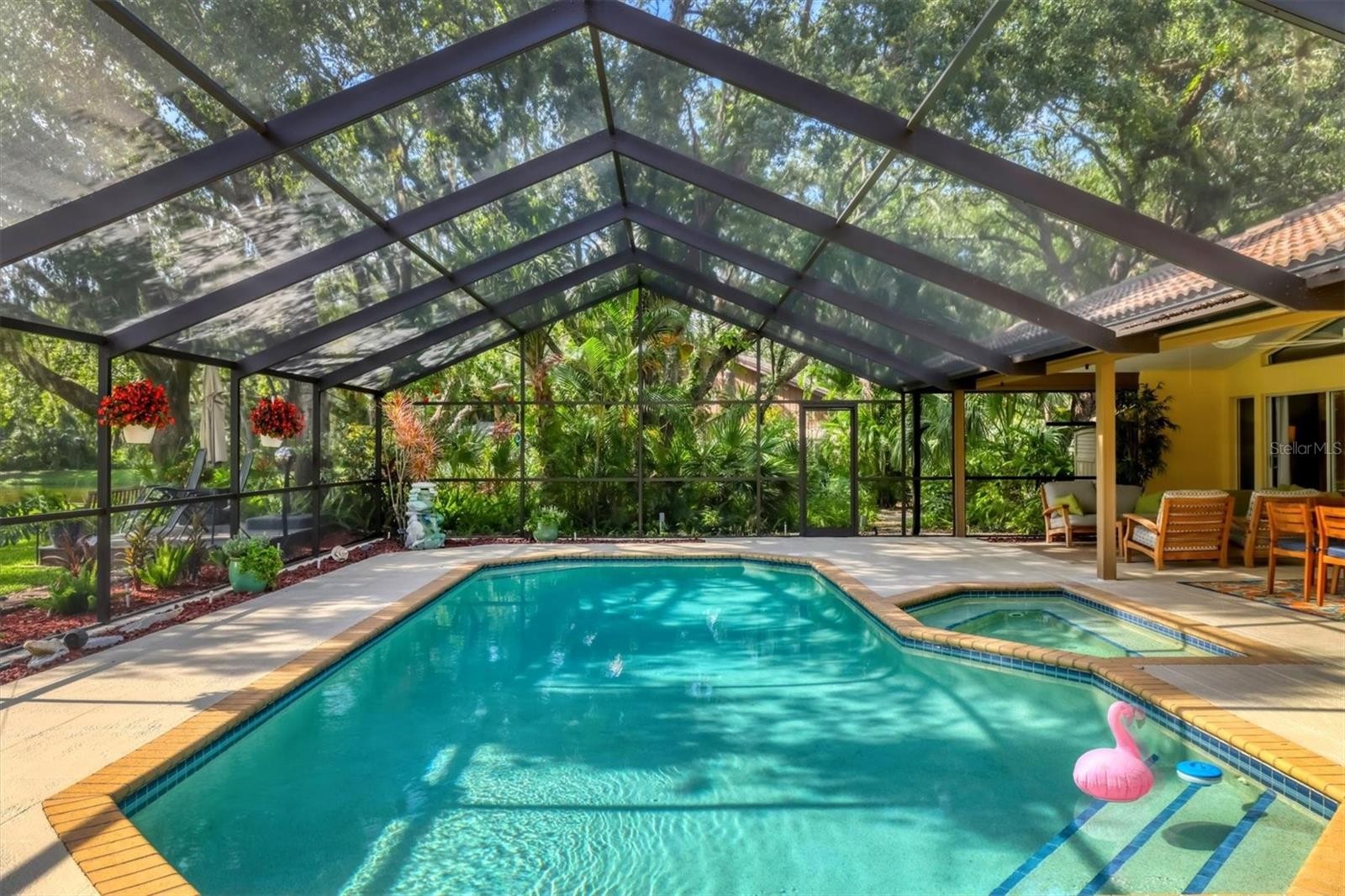 MAKE AN OFFER!!! MAGNIFICENCE IN MISTY CREEK – PRIVACY, SHADE & SPACE – A RARE COMMODITY THESE DAYS! Welcome to 8717 MISTY CREEK DRIVE! This 3700+ sf, 4 BEDROOM, 3.5 BATH, WATERFRONT, POOL HOME is nestled in The Preserve at Misty Creek. Set on TWO-THIRDS OF AN ACRE, tucked away within a CUL-DE-SAC at the coveted north end of Misty Creek, this home is, arguably, one of the best lots in all of Misty Creek and is in the X FLOOD ZONE, NO FLOOD INSURANCE REQUIRED. Arthur Rutenberg, known for his exceptional quality construction, personally designed and built the home and showcased it in the Parade of Homes. With a WESTERN FACING BACKYARD, you’ll enjoy SWEEPING VIEWS OF THE SPRING-FED LAKE teeming with life. A preserve provides the lush, green backdrop to the lake – great for viewing birds, wildlife or taking in one of our MESMERIZING FLORIDA SUNSETS - all from the privacy of your heated pool, spa, outdoor deck or backyard swing! Combining the elements of spaciousness, soaring ceilings, contemporary lines, and warm tones, this home exudes an eclectic vibe you’re going to love! The 3,720 SF OF LIVING SPACE includes a split floor plan with 4 BEDROOMS, 3.5 BATHROOMS, an office or den with an ensuite bathroom and built-in closet that could be used as a 5th bedroom if needed. The large living room has a WOOD-BURNING FIREPLACE, built-in shelving, a wet bar with mini-fridge and opens to an amazing kitchen. The GOURMET-INSPIRED KITCHEN with custom cabinetry has an island with a butcher block countertop, a built-in warming drawer and a custom-made breakfast bar with seating for 3-4. The pass-through windows to the lanai are a wonderful transition to the outdoor space. A stand-alone built-in lighted curio cabinet provides nice separation to the formal dining room. The bonus room has sliders that open to the lanai. Large transom windows let in NATURAL LIGHT to keep this home bright throughout the day. The expansive caged-in pool area embraces what living the Florida lifestyle is all about – extending living space to the outdoors! You’ll find a BUILT-IN OUTDOOR KITCHEN and your SPARKLING HEATED POOL & SPA, both heated quickly with a propane gas heater. Lots of covered area gives you an OUTDOOR LIVING ROOM & DINING ROOM! For your fur babies, sellers have installed an INVISIBLE ELECTRIC PET FENCE. There are so many reasons to love this home – be sure to ask for the list of highlights and improvements. It's an exciting time in Misty Creek as the Misty Creek Country Club is currently closed for renovations and the new improved club is expected to open in the fall! Perks of Misty Creek – NO MANDATORY GOLF MEMBERSHIP, a well-run responsive HOA with LOW HOA FEES, “A” RATED SCHOOL DISTRICT with school bus stops within the community, a manned security gate, the feeling of being in the country with close proximity to everything you need, an established community with many longtime residents, the wildlife, nature & abundance of 100+ year old oak trees just to name a few. Misty Creek offers convenient access to shopping, beaches, parks, dining, I75, golfing, boating, fishing & more! Don’t miss your opportunity to have your own personal sanctuary in this beautiful community!!! HOME WARRANTY INCLUDED with purchase! SCHEDULE A SHOWING TODAY!!!