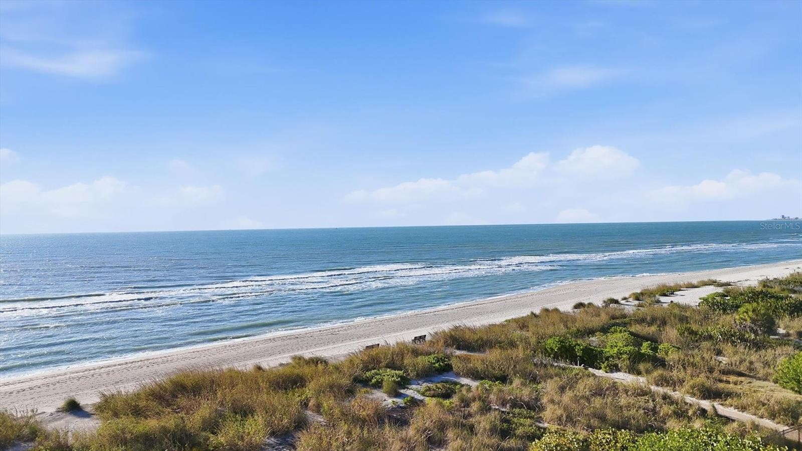 Have you ever dreamed of living on the beach??? Come experience coastal living on the tranquil southern end of Siesta Key in this turnkey-furnished residence within Tortuga, an established Gulf-front community offering direct beach access and resort-style amenities. This 800-square-foot condominium features an open floor plan with tile flooring throughout, crown molding and a light-filled living and dining area that opens to a screened balcony overlooking lush tropical landscaping. The kitchen is finished with quartz countertops, a breakfast bar and updated appliances, creating a seamless space for entertaining. The spacious primary suite includes a walk-in closet and an en suite bath with dual sinks and granite surfaces. Located on the second floor with elevator access, the residence enjoys convenient proximity to the shared laundry room just steps away. Residents of Tortuga appreciate a well-maintained, secure building with an on-site manager, assigned covered parking and amenities that include a Gulf-front pool, tennis courts, and direct access to 346 feet of private beachfront along the Gulf. Ideal as a year-round home or seasonal retreat, this residence captures the relaxed sophistication of island life while being only minutes from the world-renowned quartz sands of Siesta Beach, the boutiques and dining of Siesta Key Village and the cultural attractions of downtown Sarasota.