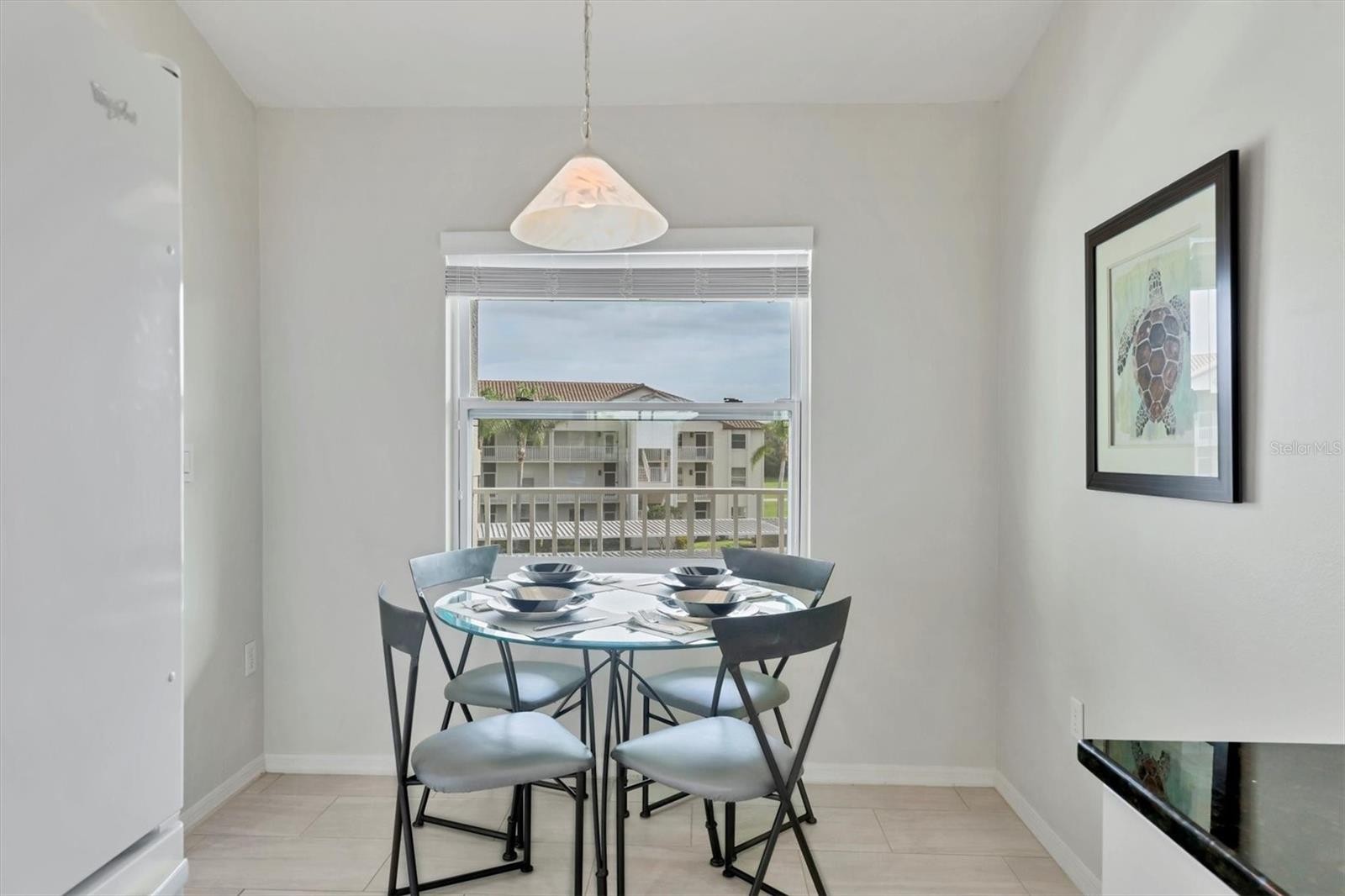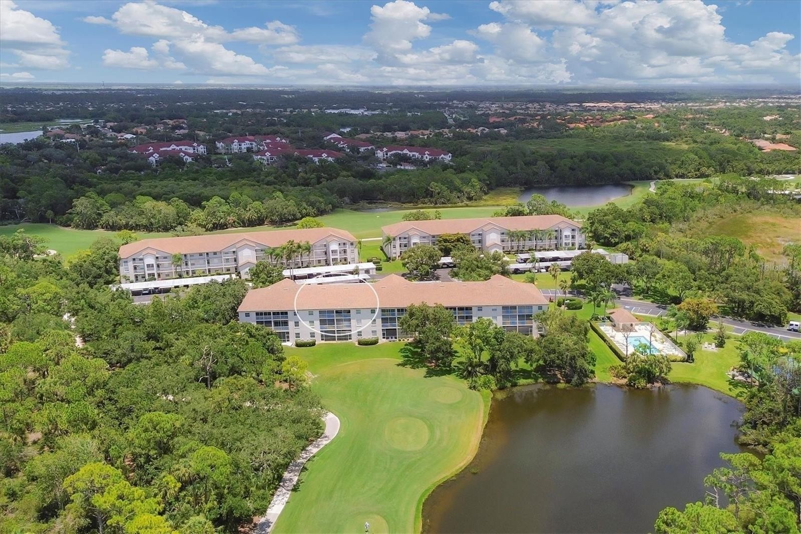 Love sunset views? Love pickleball? This is the condo for you. Enjoy panoramic sunset views and an active Florida lifestyle in this beautifully updated 2-bedroom, 2-bath condo located in the desirable Terraces at Stoneybrook Golf & Country Club. This light-filled residence offers expansive views of the 9th tee box and fairway, large pond, palm trees, mature live oaks, and nightly sunsets. The kitchen and baths have been updated with granite countertops, white cabinetry, and neutral rectangular tile flooring. Neutral paint tones and fresh interior updates create a bright, move-in-ready space. The kitchen features a dinette area and open breakfast bar to the dining room—ideal for entertaining. The living and dining areas open to sliding glass doors to the screened lanai, perfect for morning coffee or evening sunsets while enjoying golf course views. The spacious primary suite offers two walk-in closets, lanai access, and serene golf course vistas, along with an ensuite bathroom. The split floorplan has the guest bedroom located at the front of the unit with a nearby full bath. The Terraces community offers a private pool and tennis/pickleball courts. Residents enjoy full access to Stoneybrook Golf & Country Club amenities, including an 18-hole championship golf course (recently modernized), tennis, fitness center, pro shop, restaurant, bar, and bocce ball. Seller has paid the golf course modernization assessment in full—saving the buyer over $6,000. Conveniently located adjacent to the Legacy Trail and just minutes from Nokomis Beach, Siesta Key Beach, shopping, dining, and entertainment. Buy a condo anywhere, buy a lifestyle in Stoneybrook.