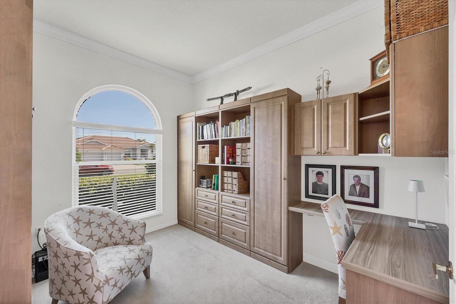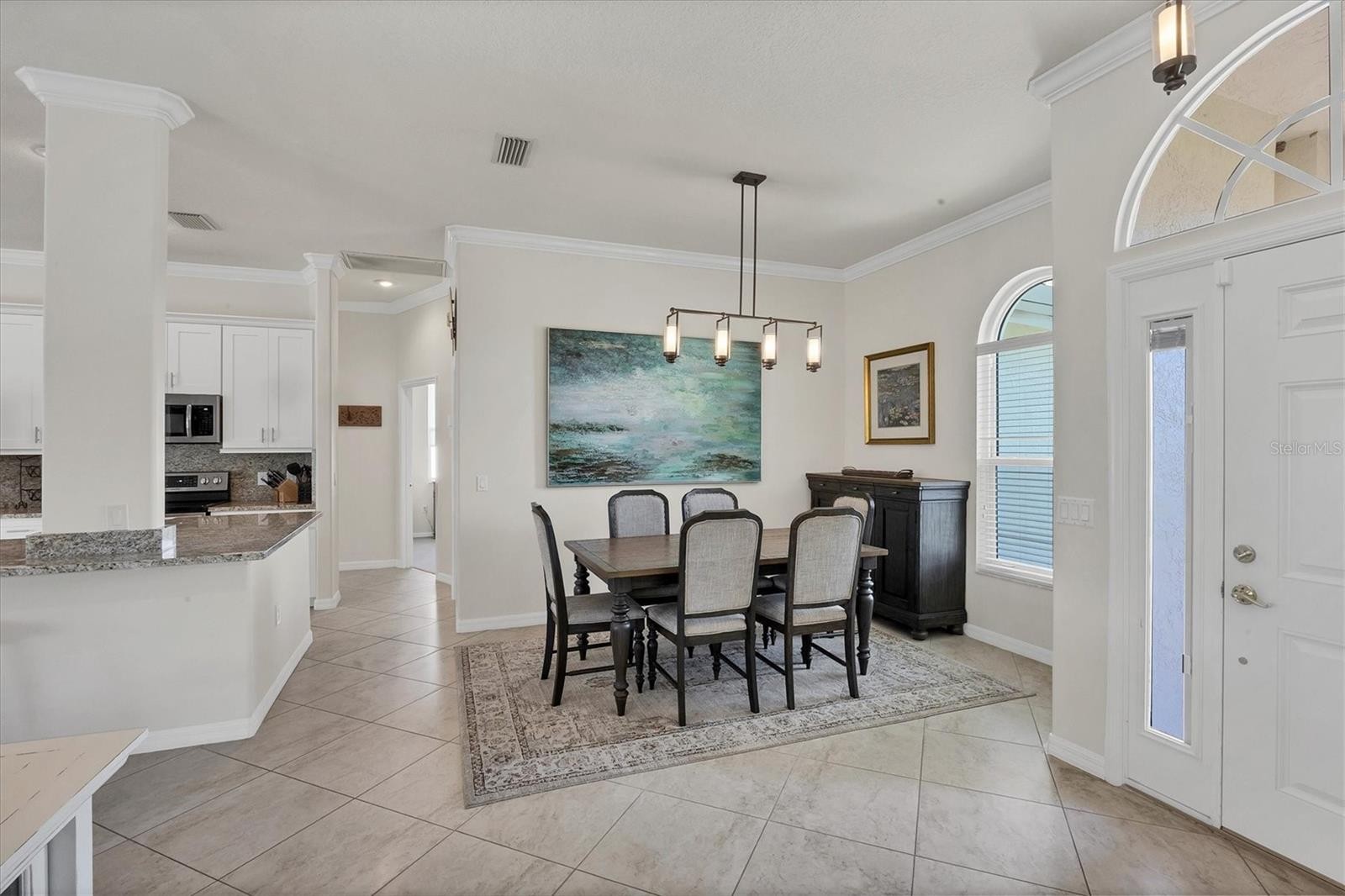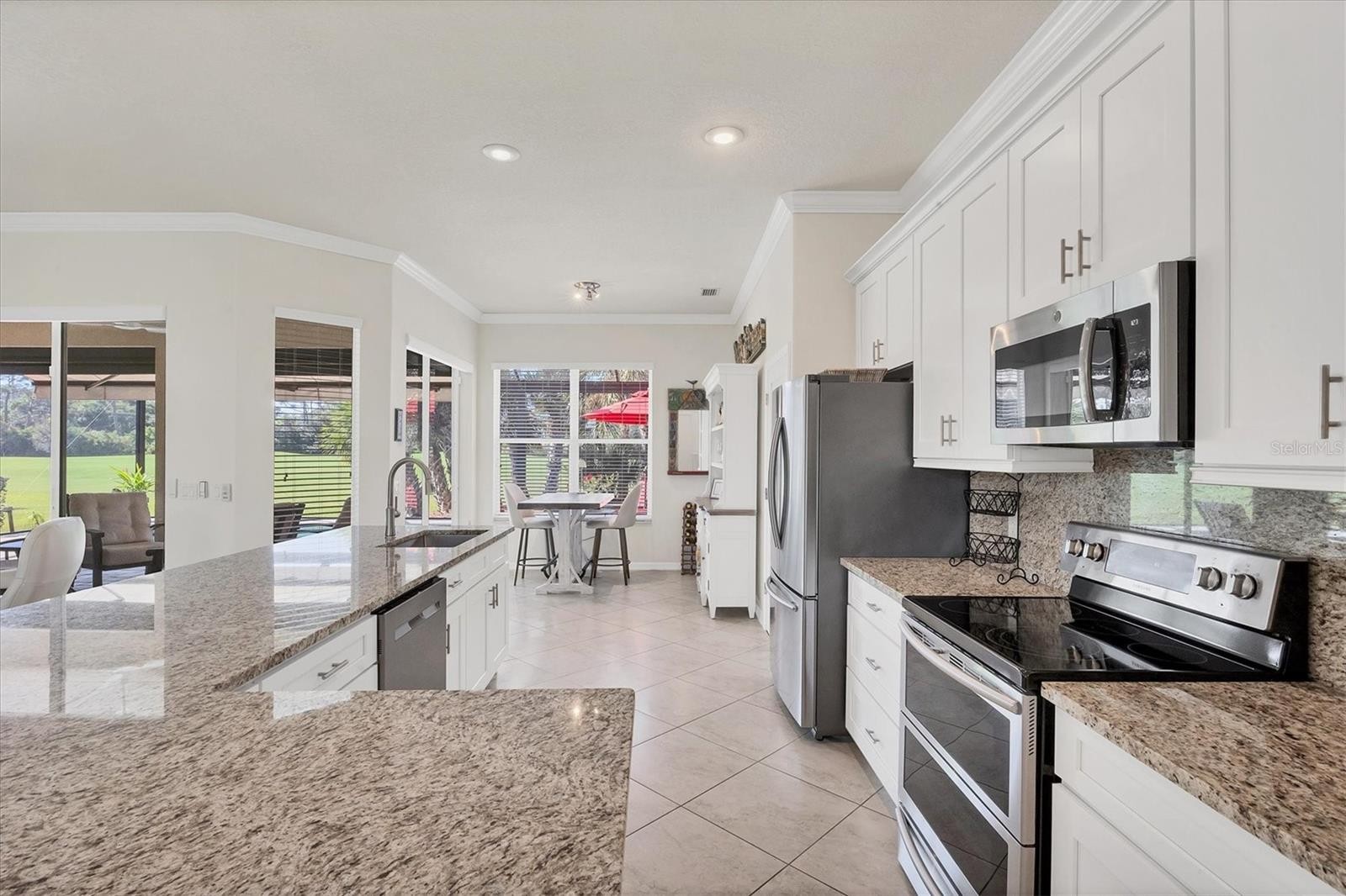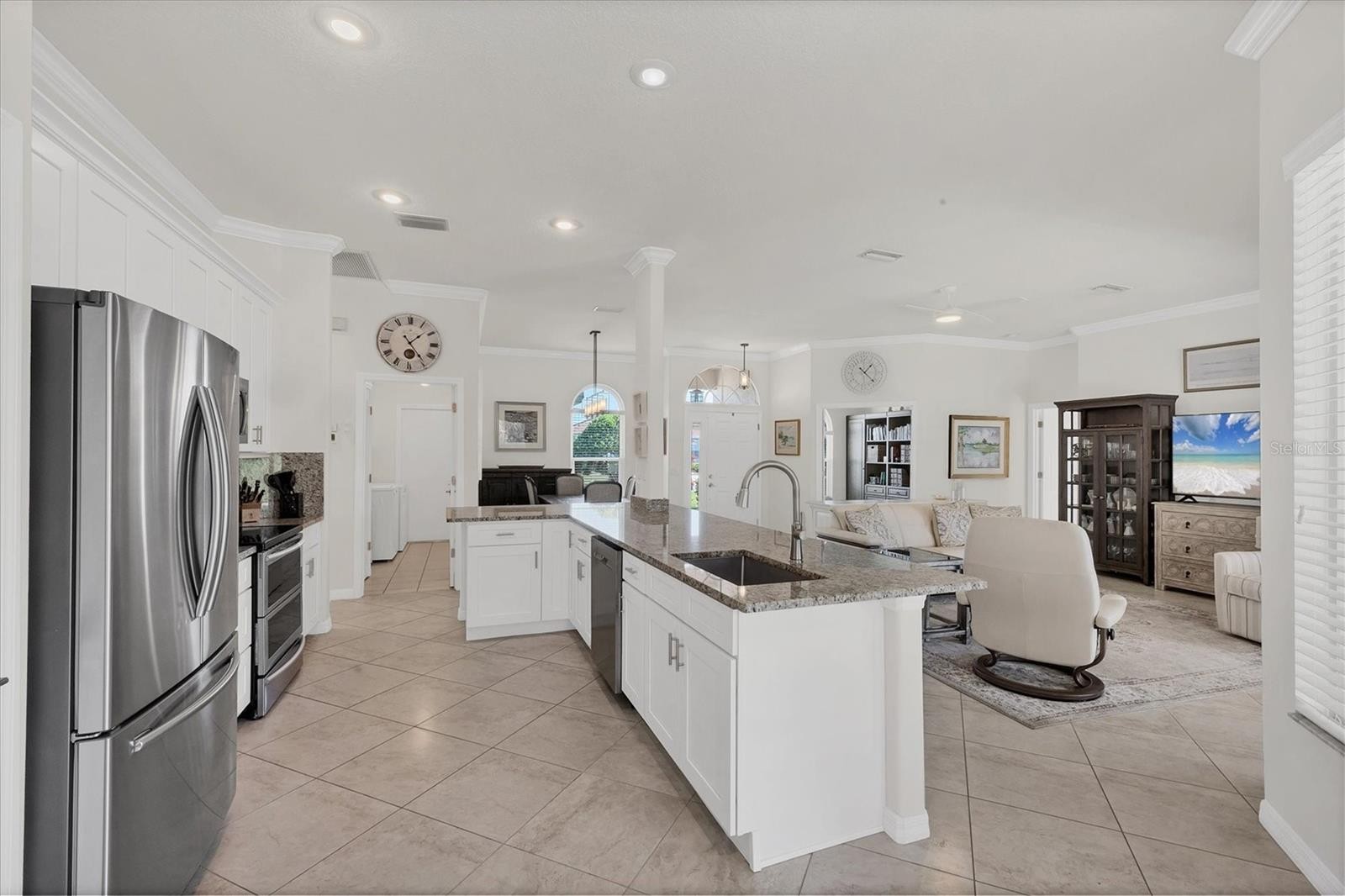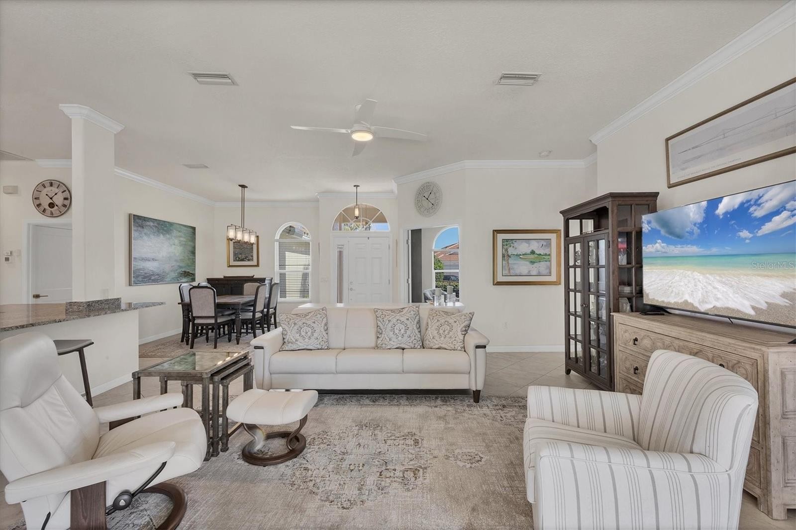 Under contract-accepting backup offers. IMPRESSIVE 3 bedroom, 2 bath, with DEN and heated saltwater POOL home in sought after Stoneybrook Golf and Country Club! This one has it all.. nestled on the 12th hole with expansive views and updates galore! This is a true open floor plan with kitchen inclusive to the wide open living space adorned with crown molding, an extended eat on bar, granite counters, new soft close cabinetry, closet pantry with pull out shelves, a dinette with large windows, formal dining space and multiple glass sliding doors out to lanai/pool area. Loads of natural light! The premier outside entertaining area has been extended with NEW pavers and storm rated panoramic screens and lanai cage, as well as an electric awning to add shade.. your prime view is jaw dropping of the pristine greens and sunset views! Primary suite enjoys updated ensuite bath with spa like soaking tub, granite counters with dual sinks, and tiled walk-in shower.. 2nd full bath has been updated with a raised stone vanity and tiled shower.. A desirable den has double french doors for privacy and a murphy bed for more guests. Laundry room has an added utility sink, an additional pantry with pull out shelves and lots of cabinet space. 2 car garage has an updated epoxy floor and plenty of room for 2 cars and all your golf and beach gear! Driveway and entryway have been professionally landscaped and are pavered as well. More updates include recessed lighting, new remote controlled fans, new blinds/shades, electric hurricane screen, AC 2021, water heater 2024, garage door 2020, pool pump 2025, well pump for irrigation 2025, TILE ROOF 2022! Stoneybrook is a gated and well established club in Palmer Ranch and boasts top amenities that include a new 18 hole golf course redesigned by Kipp Schultes and is said to be one of the best on the West Coast! Lighted Har-Tru tennis/pickleball courts, pro-shop, well-equipped fitness center, bocce court, putting greens, driving range, fitness studio, sharing library, additional heated pool/spa, full service restaurant/bar, meeting rooms, catering facility, outdoor dining patio, walking/biking trails, fishing, planned activities like yoga, mahjong, line dancing, and so much more! Stoneybrook Golf and Country Club is a prime location close to the Legacy Trail, shopping, Costco, restaurants and all Sarasota and Venice has to offer! WELCOME HOME to RESORT-STYLE LIVING at its BEST!