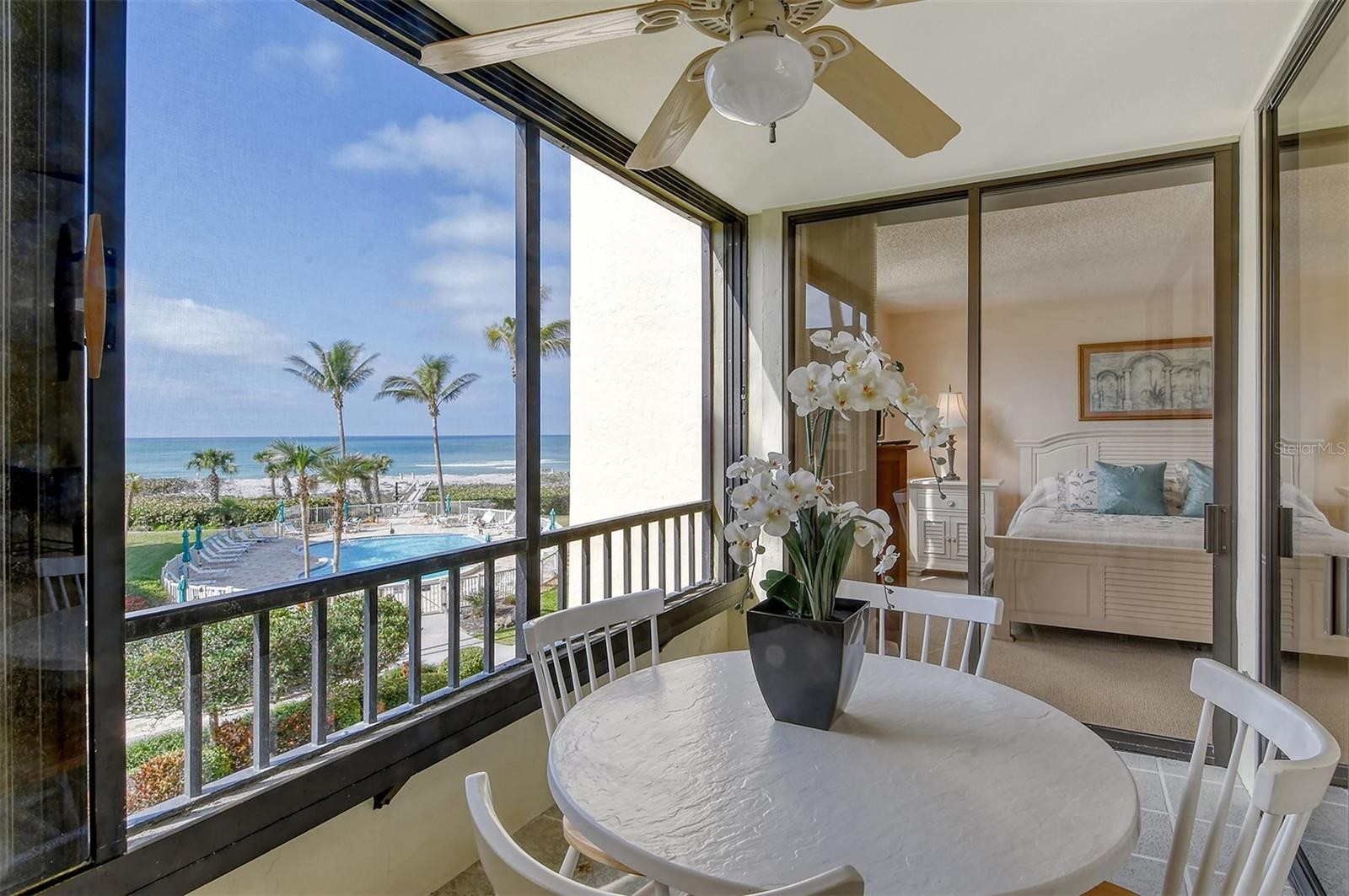 Gulf front residence with updated Kitchen including quartz counter tops and stainless steel appliances. Expanded counter tops and added cabinets. Beautiful views of the beach from owners bedroom, Kitchen, Lanai, Dining and Living room. Residents of Island Reef enjoy boat docks (lifts allowed), beach, two heated pools, tennis, pickleball, two fitness rooms, saunas, shuffleboard courts, billiards, library, clubhouse, social room, gas grills, bicycle and kayak storage. Carport at front of door of building. Guest parking. Monthly rentals (8 leases a year). Pet friendly (30 lbs). On-site management and rental program. Close to three of Siesta Key's favorite restaurants, and free Trolley to Siesta Village.