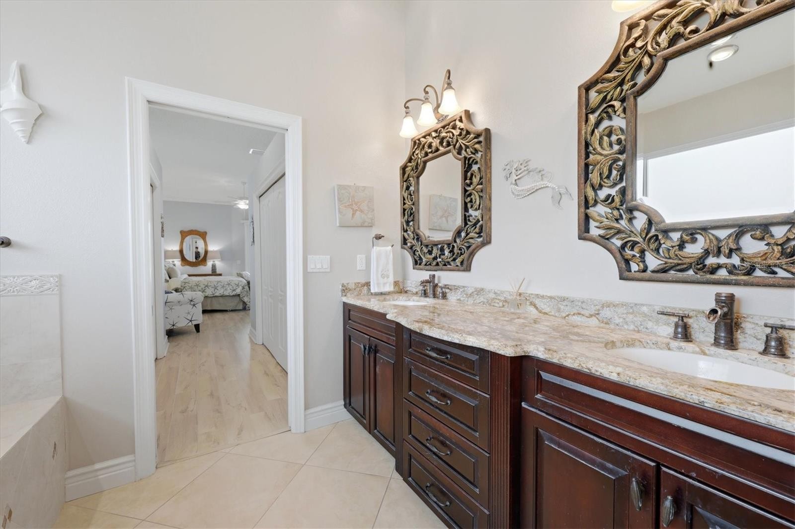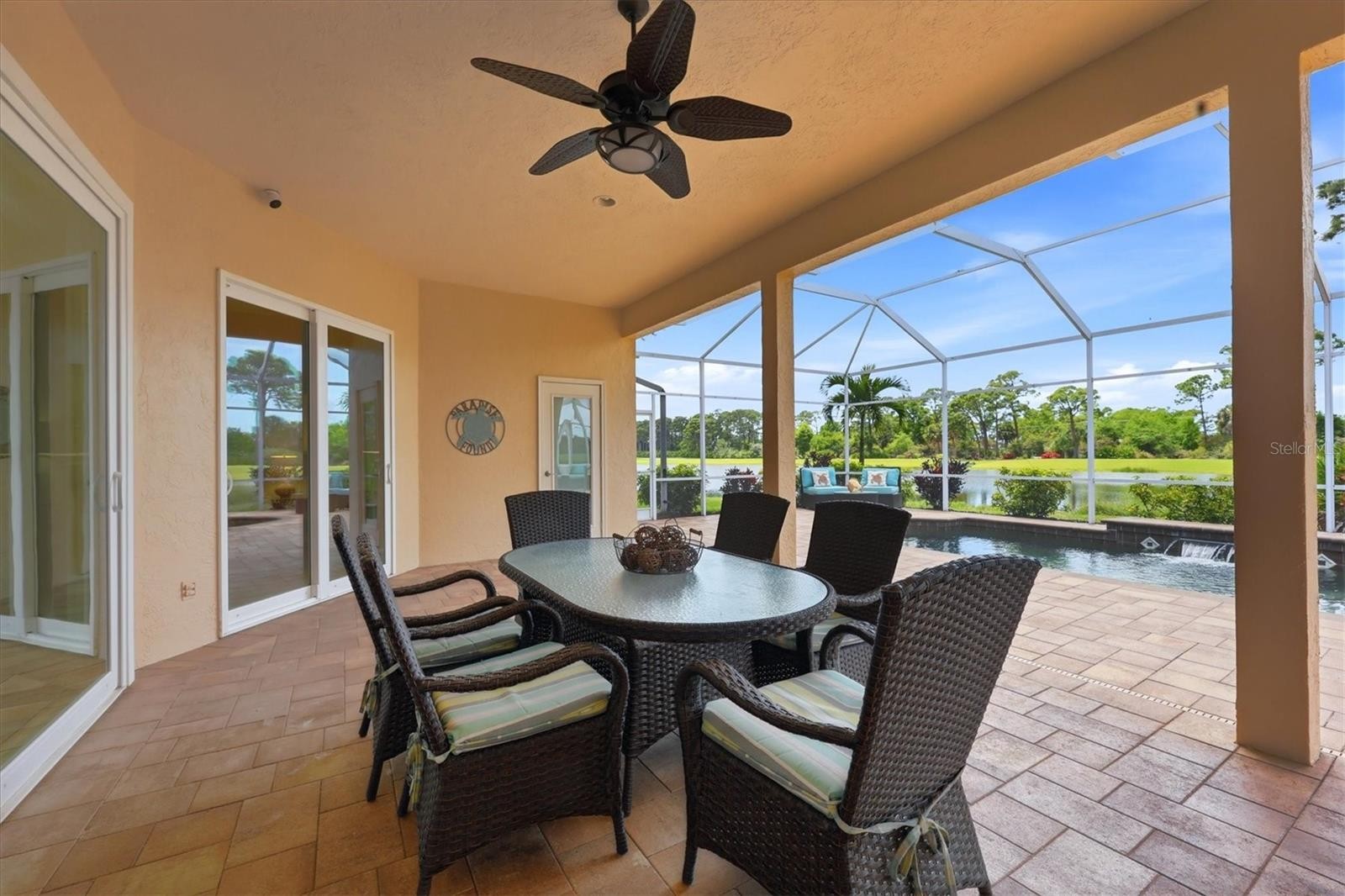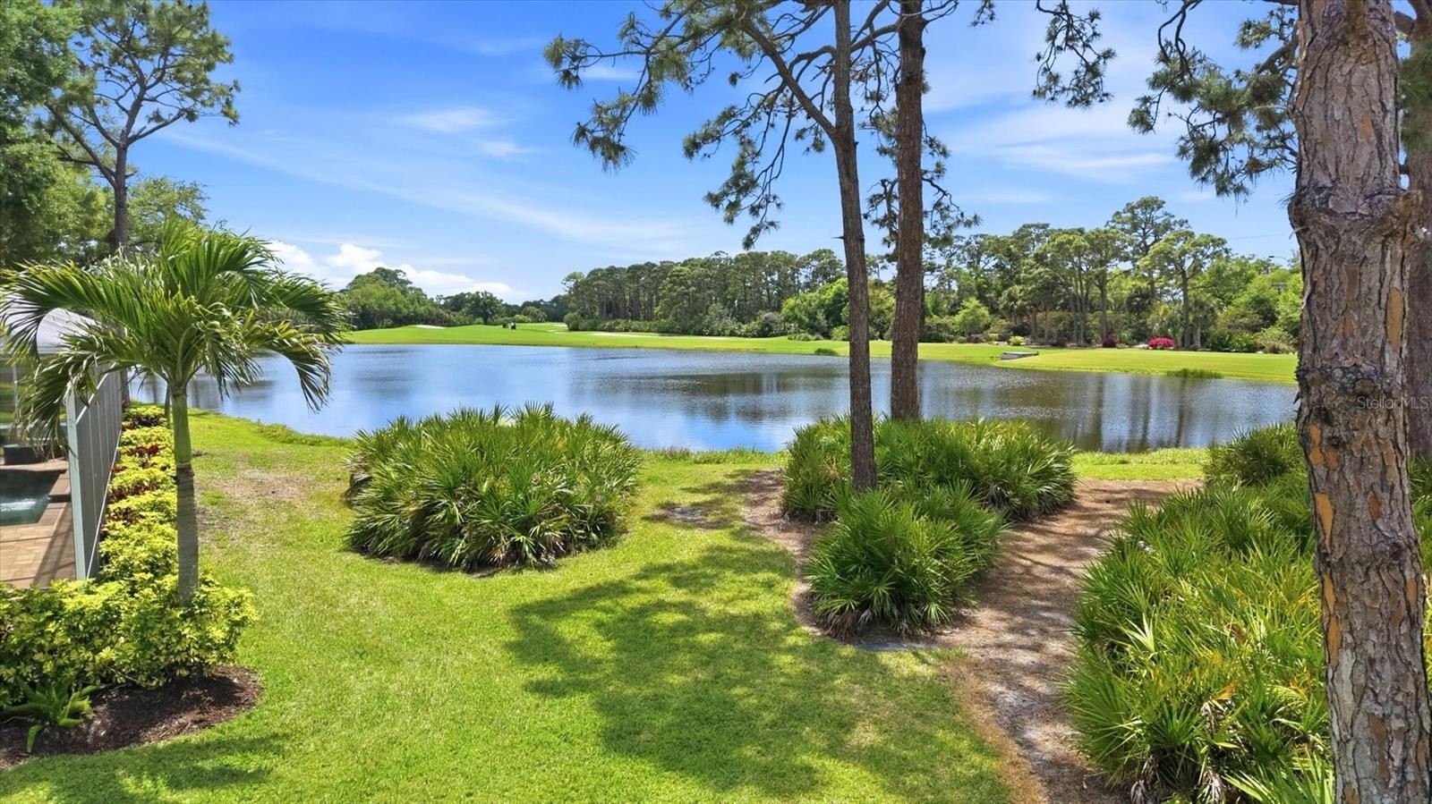 Set along an exceptional homesite within Stoneybrook Golf & Country Club, this residence captures expansive views where the lake, fairways, and lush landscape unfold beyond the lanai. Positioned along the 12th fairway, with the 13th green to the right and distant views of the 12th green, the setting offers both privacy and beautiful sunset exposure. This well-appointed single-family home features 4 bedrooms, 3 full baths, and 1 half bath, with approximately 2,677 square feet of heated living space and 3,544 of total square feet area. Inside, light-filled interiors and a cohesive coastal palette create an inviting, airy feel, complemented by neutral ceramic tile and laminate flooring throughout. The main living areas are open yet defined, offering a natural flow for everyday living and entertaining. A spacious living room features sliding glass doors that frame golf and lake views while connecting seamlessly to the lanai. The formal dining room, just off the entry, is bright and well-positioned for hosting, with plantation shutters and clean architectural detailing. The kitchen has been updated with quartz countertops, white cabinetry, newer stainless-steel appliances, and a tile backsplash, anchored by a large center island with bar seating and pendant lighting. It opens directly to the family room, where a custom-built-in media wall with shiplap detailing creates a comfortable gathering space with easy access to the lanai. The primary suite is a spacious retreat with golf and lake views, a seating area, and sliding glass doors to the lanai. It features soft coastal tones, crown molding, plantation shutters, and natural light. The en-suite bath includes dual vanities with wood cabinetry and granite countertops, a soaking tub, and a glass-enclosed walk-in shower. Three guest bedrooms are bright and generously sized with plantation shuttered windows and ample closet space. The guest bath includes a granite vanity and tub/shower combination, while the updated pool bath offers outdoor access, a quartz vanity, and a walk-in shower. Additional features include a dedicated laundry room with custom cabinetry, wood countertops, shiplap accents, and a utility sink, along with a well-appointed half bath. The screened lanai offers an expansive and private outdoor living space designed to take full advantage of the home’s golf and lake views. Finished with paver decking throughout, the area features a custom pool with an integrated water feature, surrounded by generous lounging and seating areas ideal for both relaxing and entertaining. A covered section provides a comfortable setting for outdoor dining, while the open-air portion allows for full sun exposure and unobstructed sunset views. Lush landscaping frames the space, enhancing privacy without compromising the wide, serene backdrop, and the direct-access pool bath adds convenience to this seamless indoor-outdoor retreat. Additional highlights include hurricane impact glass windows and sliders, an epoxy-finished garage floor, and a barrel tile roof replaced in 2016. Stoneybrook Golf & Country Club offers a member-owned lifestyle just minutes from Siesta Key, shopping, and the Legacy Trail, with a redesigned 18-hole golf course (2024), clubhouse dining, Har-Tru tennis courts, fitness center, and resort-style pool and spa, ideally located between Downtown Sarasota and Downtown Venice.
