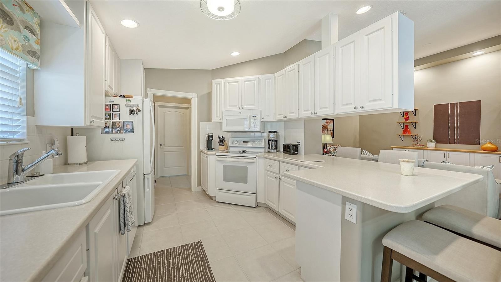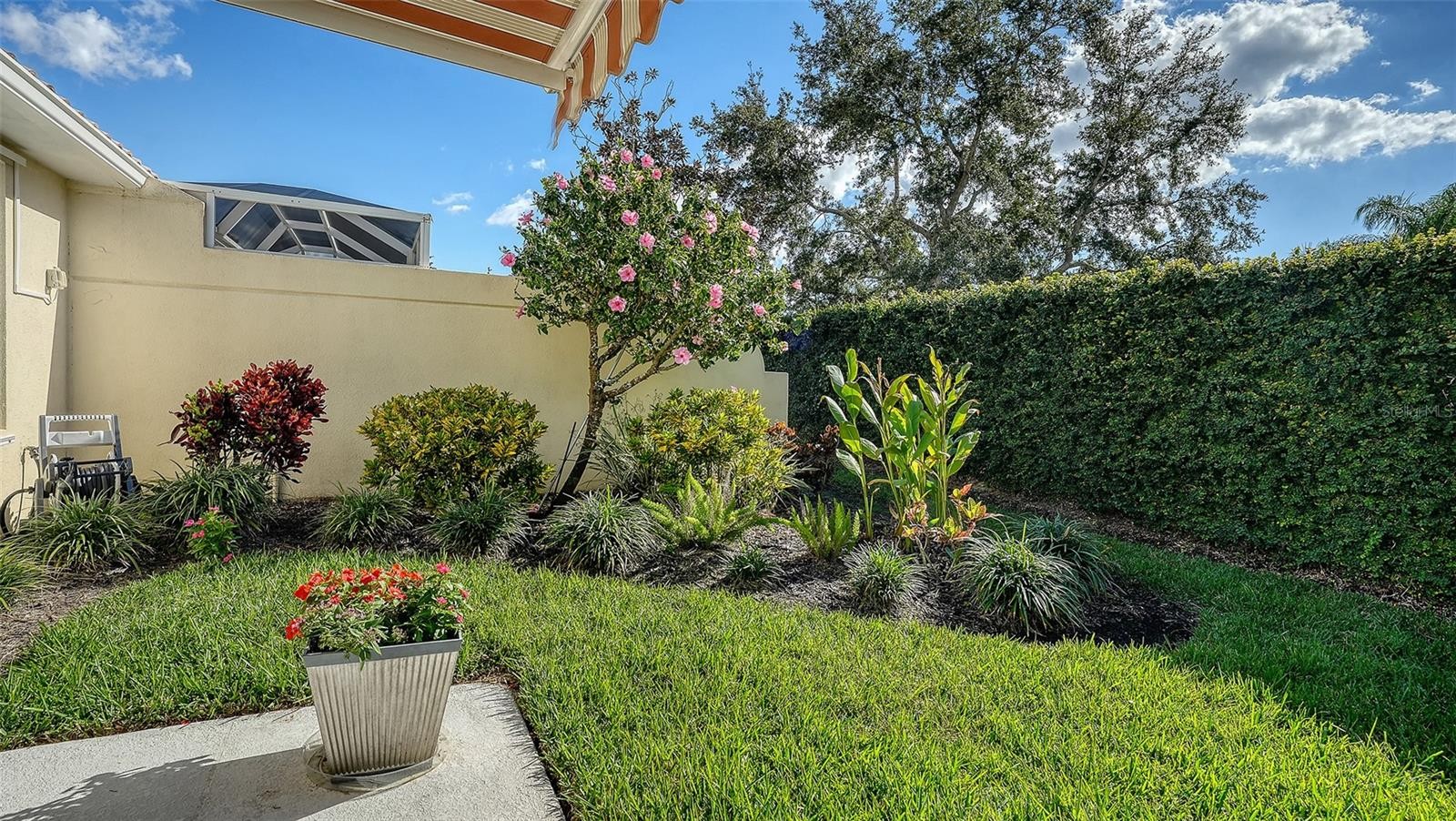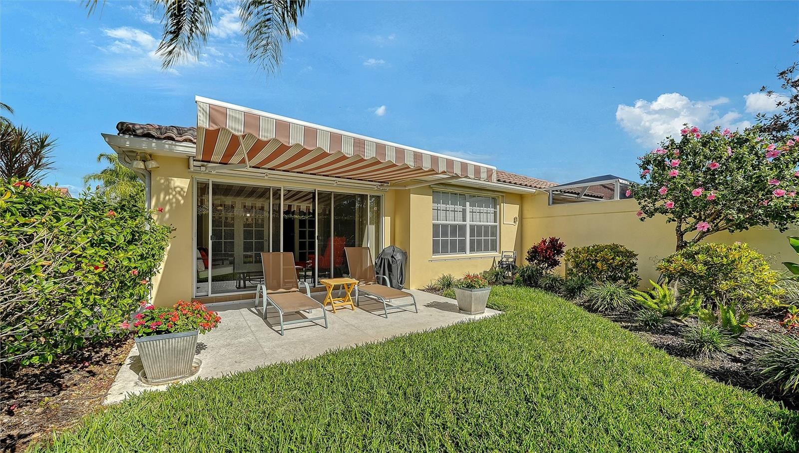 Beautiful Private Garden Setting with awning and lots of extra landscaping. Peaceful and quiet with no road noise. Tastefully decorated with French Doors for a Private office setting. This Pristine villa features numerous updates including newer appliances, A/C & Hot Water Heater replaced in 2018, Corian Counters in Kitchen, new raised commodes and updated fixtures, new shower doors, super clean garage with epoxy flooring, professionally painted throughout and so much more. Village Walk is a wonderful unique community, built hurricane safe with poured concrete walls and foundations. Every home in Village Walk is considered to be a Single Family Home, roofs are tied down to the structures, per the Florida Building Codes and considered to be above average. Inspectors, roofers and Insurance agents that are familiar with Village Walk will share this information with you. Village Walk is in Flood Zone X, an area that is determined to be outside the 1% and 0.2% chance of flooding. FEMA updated, 8/2/24. Flood Zone provided by Sarasota County Tax reports. Evacuation zone D, flood insurance is not mandatory, but flood insurance is available. Village Walk power lines are underground with a Sarasota Fire Department just down Honore, rarely losing power. Amenities include 24 hr guarded gate, geo-thermal heated and cooled lap & lagoon pools, six Har-Tru Tennis courts, Pickle ball, Bocce' Ball and Basketball courts, State of the Art fitness Center, Miles of walking and bike paths, over 500 acres of lakes and preserves. There are over 50 activity groups who meet daily, weekly, or monthly. Plus there is a full service Cafe with full service Bar, Tiki Hut with bar service at the pool, Gas Station, Barber shop/Hair Salon, and Gift Shop. A special NOTE is that Village Walk did not lose power during the hurricanes and there was No flooding. What a Great Place to call home!