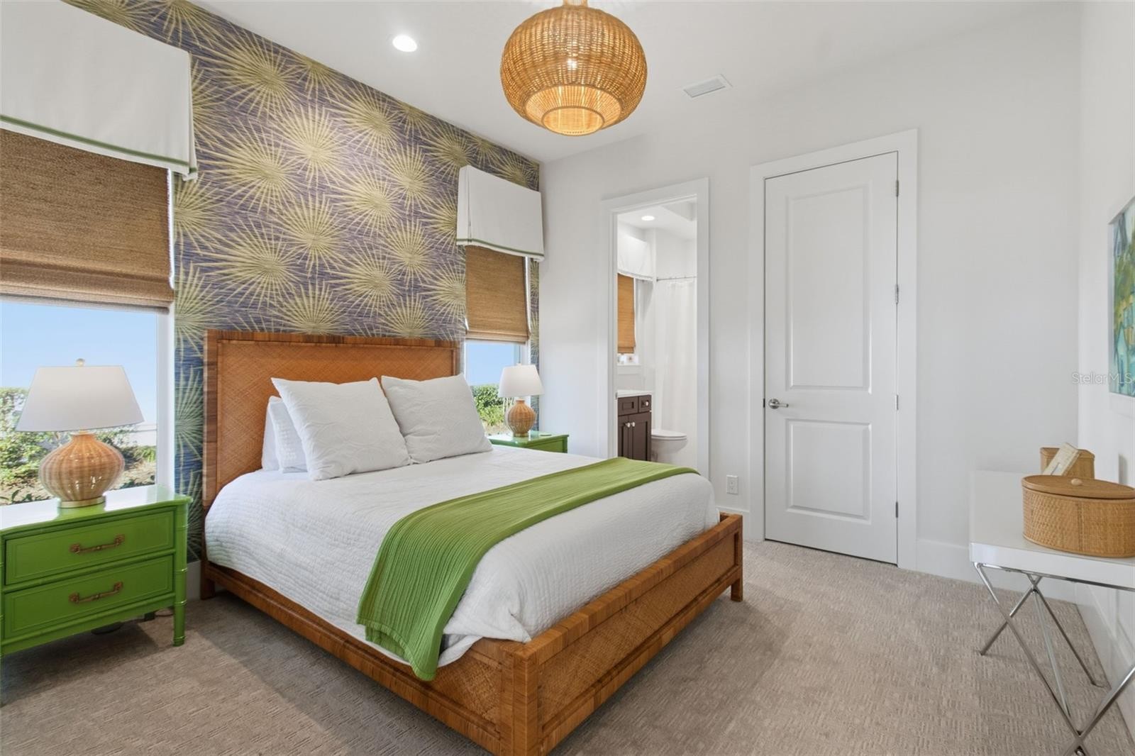 Experience the pinnacle of Sarasota luxury real estate in this masterfully composed estate within The Founders Club, just a short walk to the clubhouse amenities. Situated on the tenth hole, this Lee Wetherington Mainstay Platinum residence offers a rare vantage point with unobstructed views spanning four holes across the championship golf course. The residence serves as a benchmark for country club living, where coastal sophistication meets meticulous architectural detail. Professionally designed to create a serene atmosphere, the home features an array of high-end finishes, including shiplap wall and ceiling treatments, reclaimed wood accents, and custom recessed LED downlighting. Distinctive design elements elevate every room, from the grasscloth and Thibaut wallcoverings to the designer Schumaker wallpaper and custom linen window treatments. The open-concept floor plan includes three bedrooms, an office and a versatile bonus room with hardwired Hunter Douglas Silhouette blinds. The guest wing is equally refined, featuring a bathroom adorned with coastal fish scale tile and glass enclosures. The kitchen features a Fulgor natural gas cooktop, a built-in GE Monogram refrigerator with integrated cabinetry panels, and GE Café appliances. A dedicated bar area with Cambria quartz counters and a wine cooler provides a seamless transition to the great room, anchored by a Dimplex linear fireplace recessed into a shiplap feature wall. The primary wing offers a private sanctuary with a custom closet outfitting, motorized shades, and a spa-like bath with light-up Kohler medicine cabinets. Technological integration is paramount, featuring Sonos sound equipment and a garage with an EV charger. The outdoor living space is a coastal dream, finished with Diana Marble decking and a saltwater pool featuring an automated autofill system and natural gas heater. A fully equipped outdoor kitchen with steel cabinetry and a Coyote natural gas grill provides the ultimate setting for the Sarasota sunset lifestyle in one of Florida’s premier golf destinations.