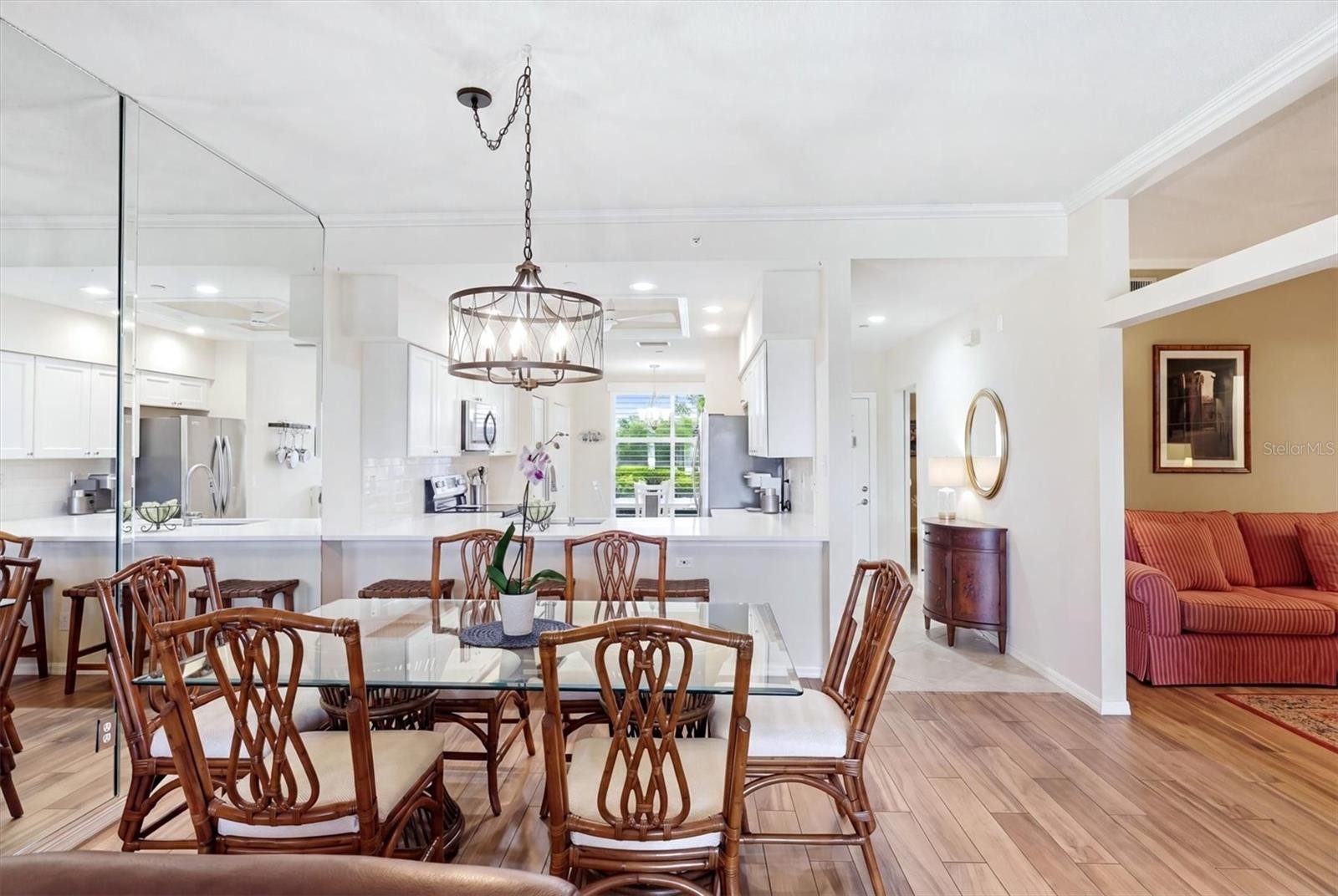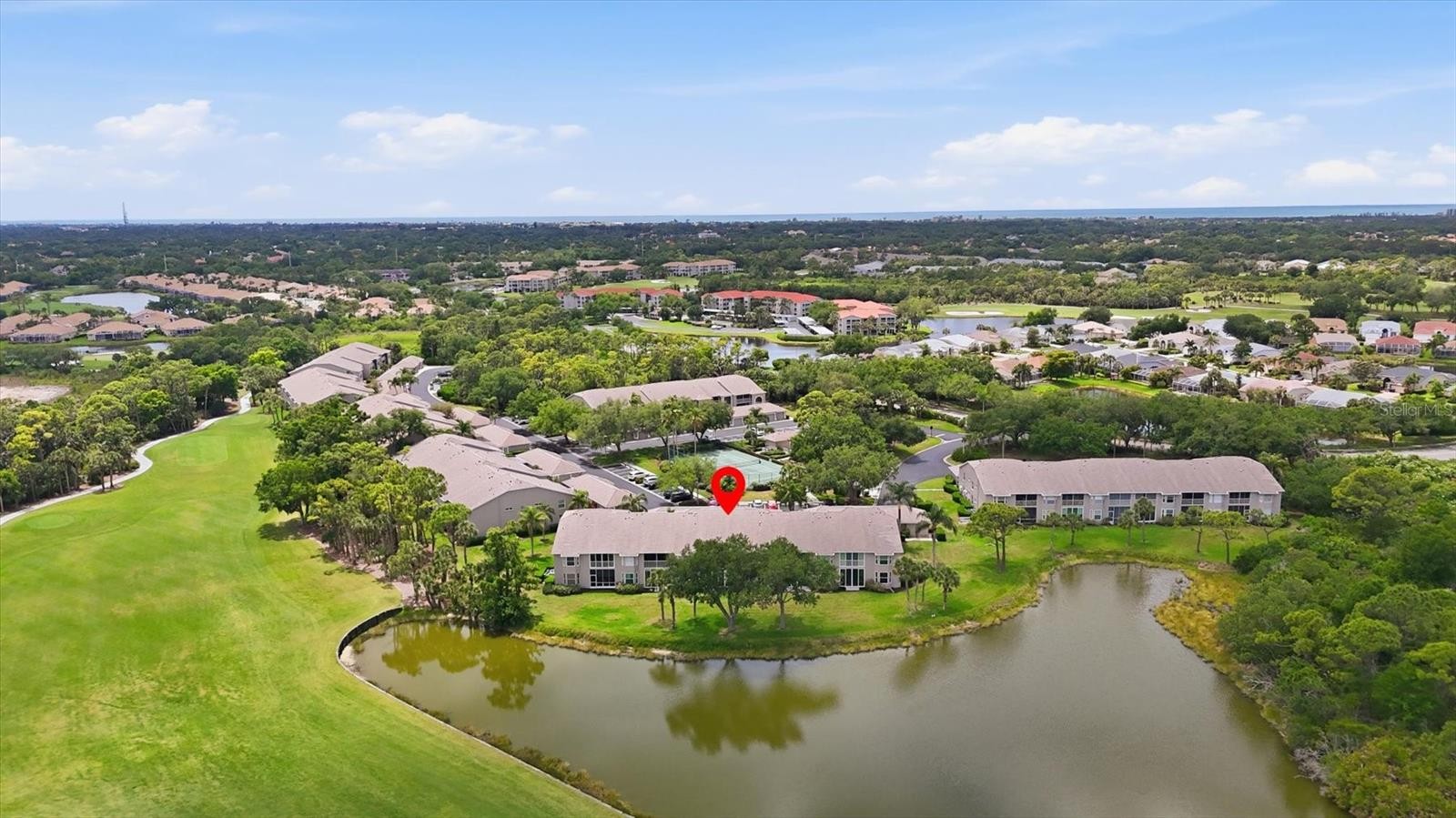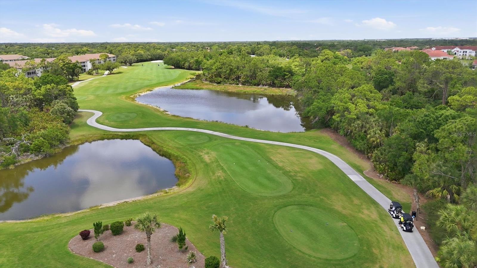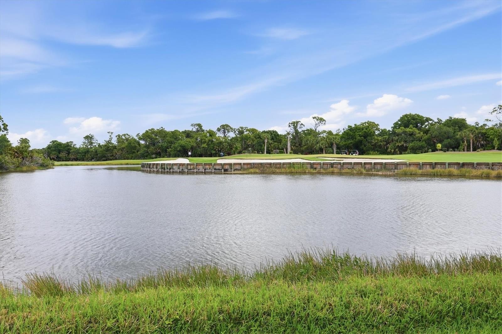 Welcome to this turn-key furnished, beautifully updated first-floor Barrington model located in the highly sought-after Stoneybrook Golf & Country Club in Palmer Ranch. This light-filled residence offers 2 bedrooms, 2 bathrooms, plus a versatile den, perfectly designed for comfortable Florida living. This very desirable building has the BEST VIEW over the water vista and 7th hole and fairway! From the moment you step inside, you’ll appreciate the engineered hardwood flooring that flows throughout the main living areas, complemented by crown molding, and all-new ceiling fans for added comfort and style. The updated kitchen is a standout feature, showcasing quartz countertops, a classic subway tile backsplash, soft close cabinets and drawers, SS appliances, and a convenient eat-in bar—ideal for casual dining or entertaining guests. Both bathrooms have been tastefully updated with walk-in and tiled glassed showers. This unit truly shines with two private tiled lanais, offering expansive golf course and tranquil water views—perfect for enjoying your morning coffee or relaxing with evening sunsets. The thoughtful split-bedroom floor plan provides privacy for both owners and guests, while the den offers flexibility as a home office, reading room, or additional guest space, and has a tractable blind for extra privacy. Additional highlights include a detached one-car garage and the ease of first-floor living with no stairs to navigate. Another bonus is hurricane impact windows! The Verandas has its own heated pool, grill area and tennis/pickleball courts just steps away from your front door. Stoneybrook Golf and Country Club just completed their new 18 hole golf course designed by Arthur Hills and Kipp Schulties and is said to be one of the best on the West Coast! Other top-notch amenities include Lighted Har-Tru tennis/pickle ball courts, pro-shop, well-equipped fitness center, bocce court, putting greens, driving range, fitness studio, sharing library, additional heated pool/spa, full service restaurant/bar, meeting rooms, catering facility, outdoor dining patio, walking/biking trails, fishing, planned activities like yoga, mahjong, line dancing, and so much more! Stoneybrook Golf and Country Club is a prime location close to the Legacy Trail, beaches, Costco, Lowes, restaurants and all Sarasota and Venice has to enjoy! Experience the perfect blend of comfort, style, and resort-style living—schedule your private showing today!