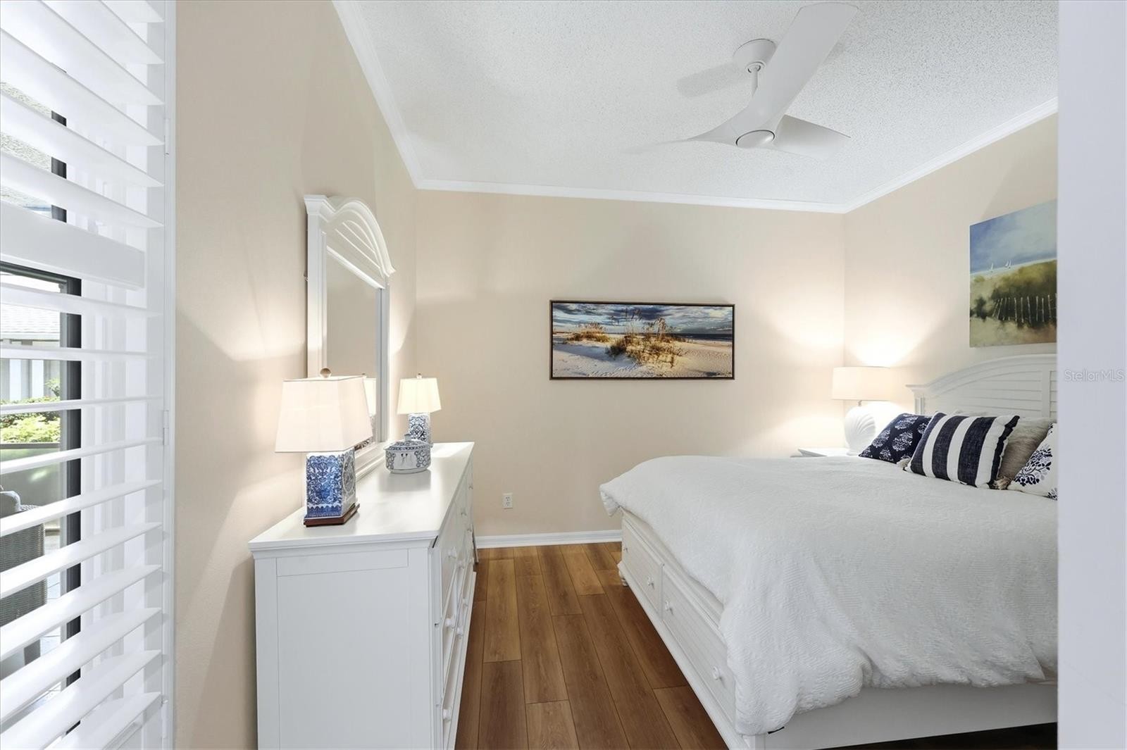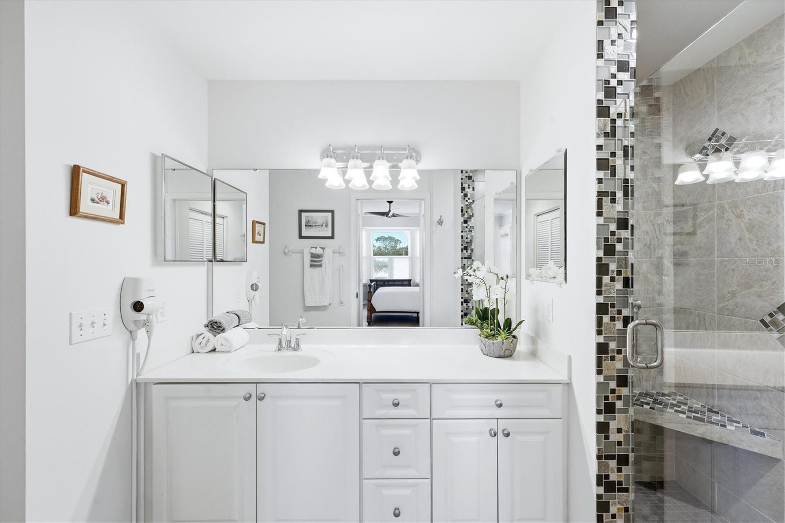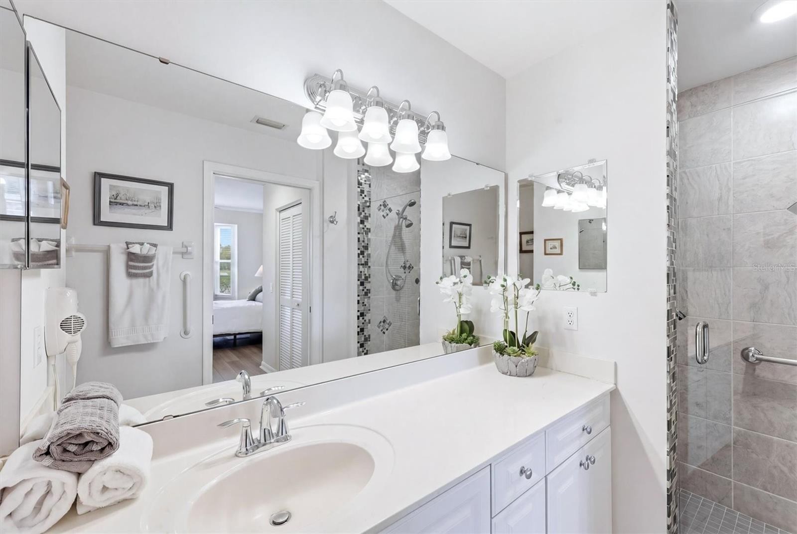 Welcome to this turn-key furnished, beautifully updated first-floor Barrington model located in the highly sought-after Stoneybrook Golf & Country Club in Palmer Ranch. This light-filled residence offers 2 bedrooms, 2 bathrooms, plus a versatile den, perfectly designed for comfortable Florida living. This very desirable building has the BEST VIEW over the water vista and 7th hole and fairway! From the moment you step inside, you’ll appreciate the engineered hardwood flooring that flows throughout the main living areas, complemented by crown molding, and all-new ceiling fans for added comfort and style. The updated kitchen is a standout feature, showcasing quartz countertops, a classic subway tile backsplash, soft close cabinets and drawers, SS appliances, and a convenient eat-in bar—ideal for casual dining or entertaining guests. Both bathrooms have been tastefully updated with walk-in and tiled glassed showers. This unit truly shines with two private tiled lanais, offering expansive golf course and tranquil water views—perfect for enjoying your morning coffee or relaxing with evening sunsets. The thoughtful split-bedroom floor plan provides privacy for both owners and guests, while the den offers flexibility as a home office, reading room, or additional guest space, and has a tractable blind for extra privacy. Additional highlights include a detached one-car garage and the ease of first-floor living with no stairs to navigate. Another bonus is hurricane impact windows! The Verandas has its own heated pool, grill area and tennis/pickleball courts just steps away from your front door. Stoneybrook Golf and Country Club just completed their new 18 hole golf course designed by Arthur Hills and Kipp Schulties and is said to be one of the best on the West Coast! Other top-notch amenities include Lighted Har-Tru tennis/pickle ball courts, pro-shop, well-equipped fitness center, bocce court, putting greens, driving range, fitness studio, sharing library, additional heated pool/spa, full service restaurant/bar, meeting rooms, catering facility, outdoor dining patio, walking/biking trails, fishing, planned activities like yoga, mahjong, line dancing, and so much more! Stoneybrook Golf and Country Club is a prime location close to the Legacy Trail, beaches, Costco, Lowes, restaurants and all Sarasota and Venice has to enjoy! Experience the perfect blend of comfort, style, and resort-style living—schedule your private showing today!