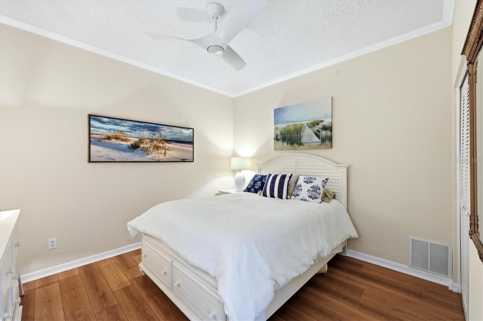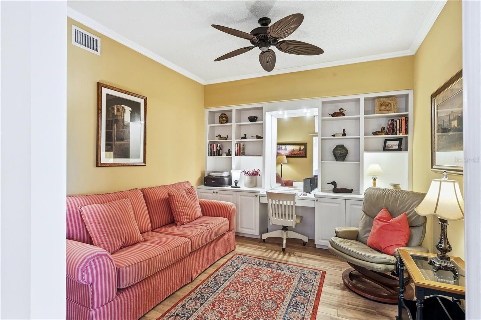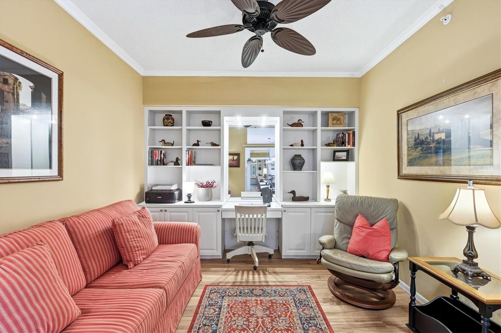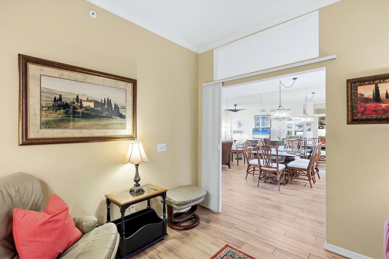 Welcome to this turn-key furnished, beautifully updated first-floor Barrington model located in the highly sought-after Stoneybrook Golf & Country Club in Palmer Ranch. This light-filled residence offers 2 bedrooms, 2 bathrooms, plus a versatile den, perfectly designed for comfortable Florida living. This very desirable building has the BEST VIEW over the water vista and 7th hole and fairway! From the moment you step inside, you’ll appreciate the engineered hardwood flooring that flows throughout the main living areas, complemented by crown molding, and all-new ceiling fans for added comfort and style. The updated kitchen is a standout feature, showcasing quartz countertops, a classic subway tile backsplash, soft close cabinets and drawers, SS appliances, and a convenient eat-in bar—ideal for casual dining or entertaining guests. Both bathrooms have been tastefully updated with walk-in and tiled glassed showers. This unit truly shines with two private tiled lanais, offering expansive golf course and tranquil water views—perfect for enjoying your morning coffee or relaxing with evening sunsets. The thoughtful split-bedroom floor plan provides privacy for both owners and guests, while the den offers flexibility as a home office, reading room, or additional guest space, and has a tractable blind for extra privacy. Additional highlights include a detached one-car garage and the ease of first-floor living with no stairs to navigate. Another bonus is hurricane impact windows! The Verandas has its own heated pool, grill area and tennis/pickleball courts just steps away from your front door. Stoneybrook Golf and Country Club just completed their new 18 hole golf course designed by Arthur Hills and Kipp Schulties and is said to be one of the best on the West Coast! Other top-notch amenities include Lighted Har-Tru tennis/pickle ball courts, pro-shop, well-equipped fitness center, bocce court, putting greens, driving range, fitness studio, sharing library, additional heated pool/spa, full service restaurant/bar, meeting rooms, catering facility, outdoor dining patio, walking/biking trails, fishing, planned activities like yoga, mahjong, line dancing, and so much more! Stoneybrook Golf and Country Club is a prime location close to the Legacy Trail, beaches, Costco, Lowes, restaurants and all Sarasota and Venice has to enjoy! Experience the perfect blend of comfort, style, and resort-style living—schedule your private showing today!