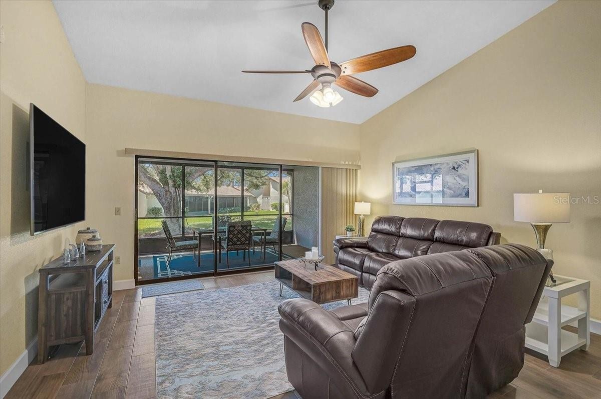 Jacaranda Country Club Villas – 892 Country Club Cir, Venice, FL Beautifully updated TURNKEY 2 bedroom, 2 bathroom villa located in the desirable Jacaranda Country Club Villas community. This home features a bright, open floor plan with an updated kitchen offering granite countertops, white cabinetry, stainless steel appliances, and a breakfast bar that opens to the dining and living areas. The interior includes spacious bedrooms, updated bathrooms, and both a front patio and a screened-in rear patio perfect for enjoying indoor-outdoor Florida living. The community pool is located just outside the back of the property with an easy walk from your patio. Additional features include a two-car garage, indoor laundry, and a well-maintained, move-in ready interior. Jacaranda Country Club Villas is a quiet, established community with low HOA fees and an active social environment. Conveniently located near downtown Venice, Gulf beaches, shopping, dining, and golf courses.