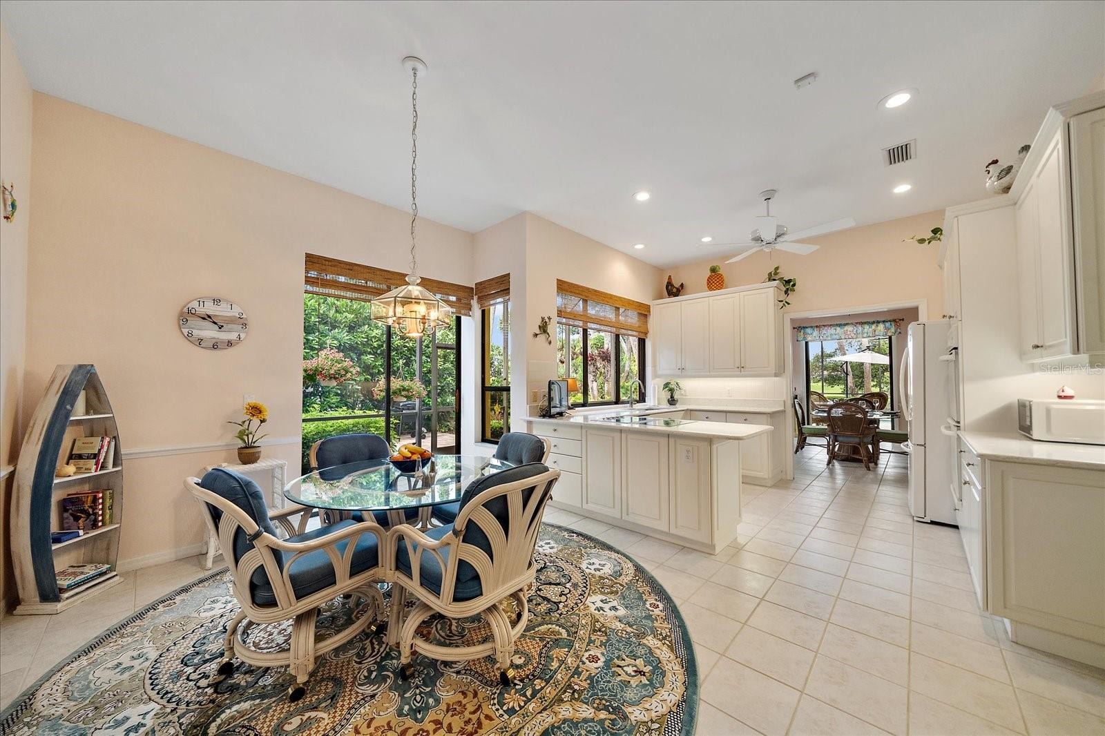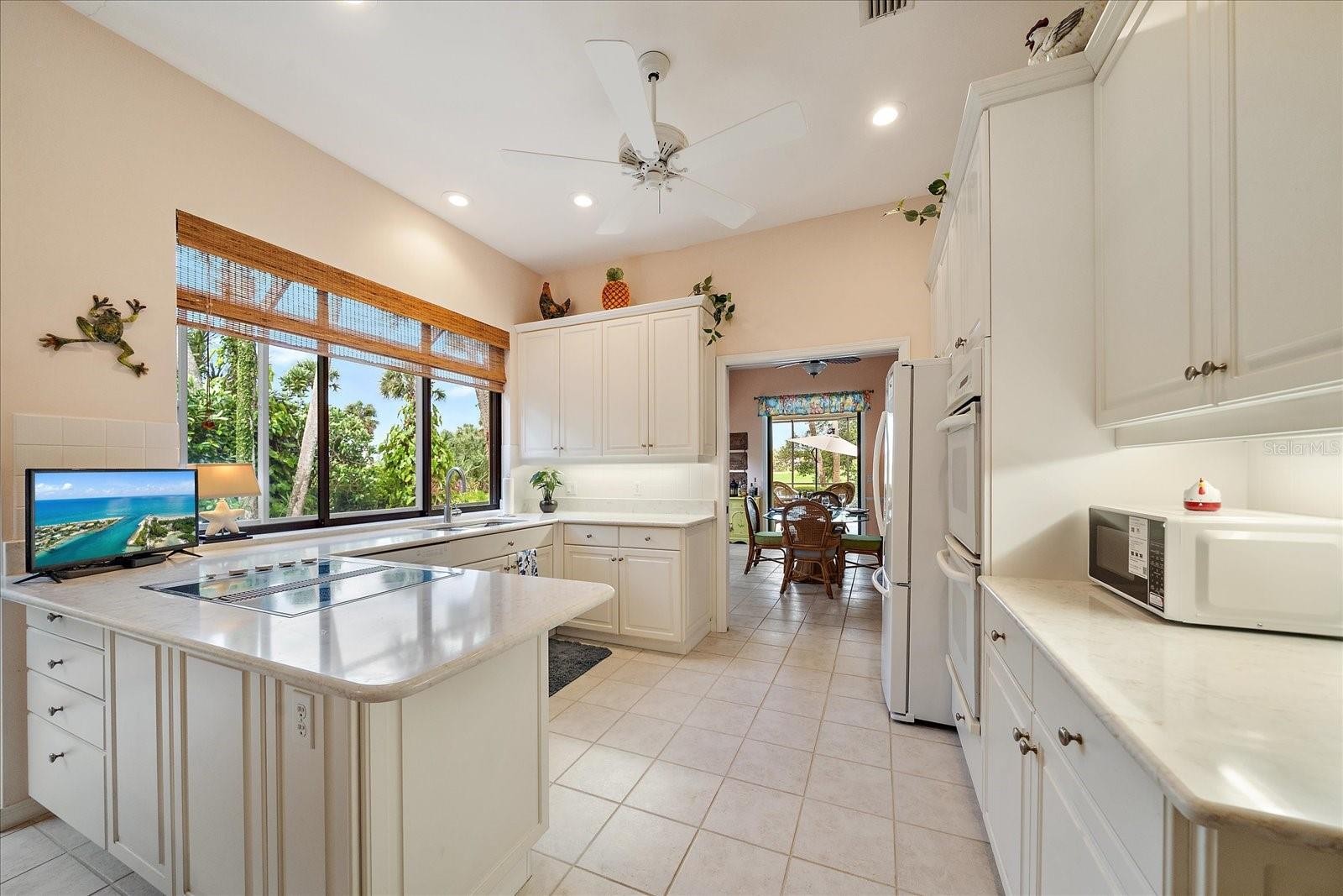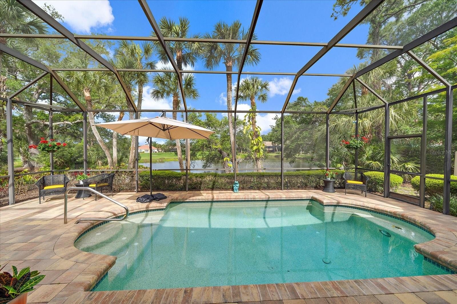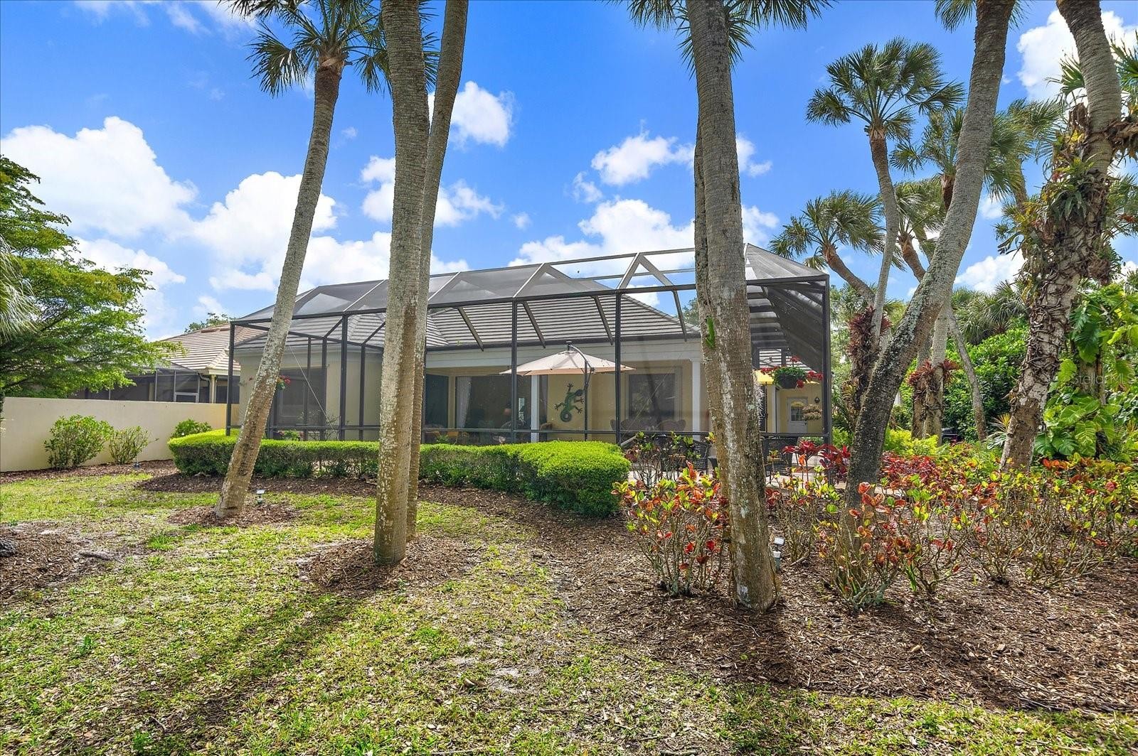 BEAUTIFUL HOME with POND and GOLF COURSE VIEWS! Situated on a picturesque street lined with canopying oak trees and mature landscape, you'll find this well appointed home. From the moment you arrive, you will notice lovely curb appeal including the brick paver driveway and side load garage. This elegantly designed and quality constructed home features 3 bedrooms and 2.5 bathrooms with 2,674 sq. ft. of living space. The floor plan offers endless possibilities. High ceilings greet you upon entry and invite you in to the spacious living room/great room which features tray ceilings and a beautiful grand skylight. The formal dining room offers an elegant setting and leads into the kitchen. The spacious kitchen features eat-in space, a double oven, large pantry, ample cabinetry, a window over the sink and sliding glass door providing access to the side patio. The half bathroom is convenient for guest access located off the kitchen and has access from the side patio. You'll love the huge laundry room with tons of storage space. The primary bedroom offers views from the large windows and sliding glass doors, and features two walk-in closets. The primary bathroom is well designed with 2 separate vanities, a soaking tub, walk-in shower and roomy private water closet. Additional features include sliding glass doors from the living room, dining room, kitchen and primary bedroom providing easy access from anywhere in the home to the covered lanai, expansive brick paver pool patio and heated pool. You'll love the outdoor space, with lush tropical mature landscape, beautiful oak and pine trees lining the backyard with views of the pond and golf course beyond, providing a peaceful setting. 1 YEAR HOME WARRANTY INCLUDED! Boca Royale Golf & Country Club "Original Section" is best known for luxurious custom built homes, each having charm and character, larger lot sizes, beautiful views and well-established mature landscape ~ where oak trees canopy the roads. Social membership is included. Amenities include the clubhouse, restaurant, tennis, pickleball, fitness, dining, social activities and more! Golf membership is optional. Conveniently located just minutes to pristine beaches, parks, shopping and restaurants. Schedule a showing today!