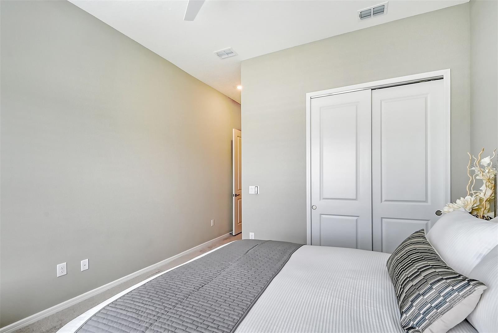 Welcome to this exquisite waterfront Stellar floor plan, perfectly positioned on an oversized cul-de-sac lot within the highly sought-after, guard-gated Del Webb Bayview community. Built with peace of mind in mind, the home features impact-rated glass windows and doors throughout—no hurricane shutters needed. Inside, you will find 3 bedrooms, 3 full bathrooms, a large den/office, tray ceilings, crown molding, luxury plank flooring, and motorized ceiling fans. The gourmet kitchen is a showpiece with veined quartz countertops, a custom built-in pantry, upgraded KitchenAid appliances, pull-out shelving, soft-close drawers, and an oversized island that seamlessly flows into the warm and inviting living area. A spacious dining area sits just off the kitchen and includes custom window treatments, plantation shutters, and high-end lighting. The owner’s suite is a true retreat, offering large windows and an oversized walk-in shower with floor-to-ceiling tile, a large niche, convenient bench seat, dual shower heads, and a rain shower feature. The owner’s closet is generously sized and professionally designed for optimal organization. The second bedroom provides an ideal guest sanctuary with its own private, spa-like bathroom—beautifully finished with custom floor-to-ceiling tile and seamless glass doors. The well-appointed laundry room makes everyday tasks a breeze with built-in cabinetry and a utility sink. Zero-corner sliders open the living space to the expansive lanai, which is pre-plumbed for an outdoor kitchen and equipped with a remote-controlled wind/solar screen. The serene water view and large lot present the perfect setting for a future pool. Residents of Del Webb’s premier 55+ community enjoy exceptional amenities including a clubhouse with fitness center, zero-entry pool, resistance pool, spa, and onsite restaurant, along with a vibrant calendar of activities, clubs, and outdoor recreation. Ideally located near St. Pete, Tampa, and Sarasota, you’ll have effortless access to dining, shopping, entertainment, and world-renowned beaches. Why wait for new construction? This move-in-ready home has it all. Disclaimer: Please note that the furniture shown in the online photos is no longer in the home. The homeowner lived on the property for only five months and moved, taking her furniture with her. The home has since been professionally staged with different furnishings than those depicted in the photos.