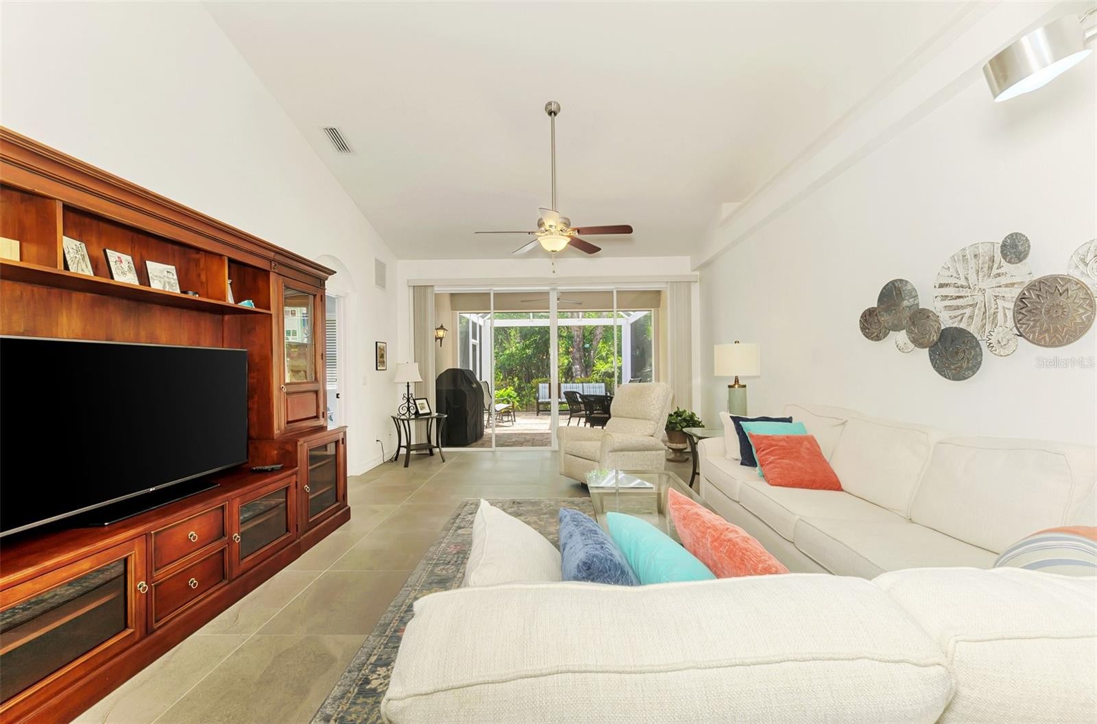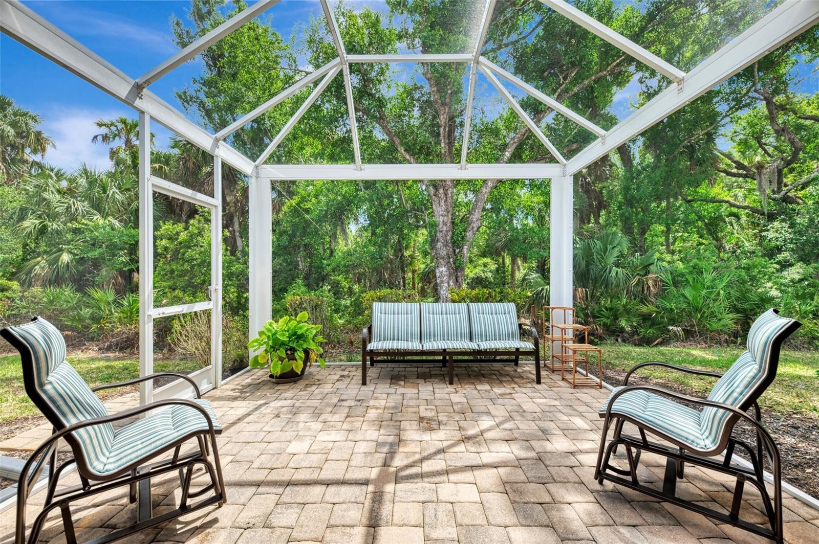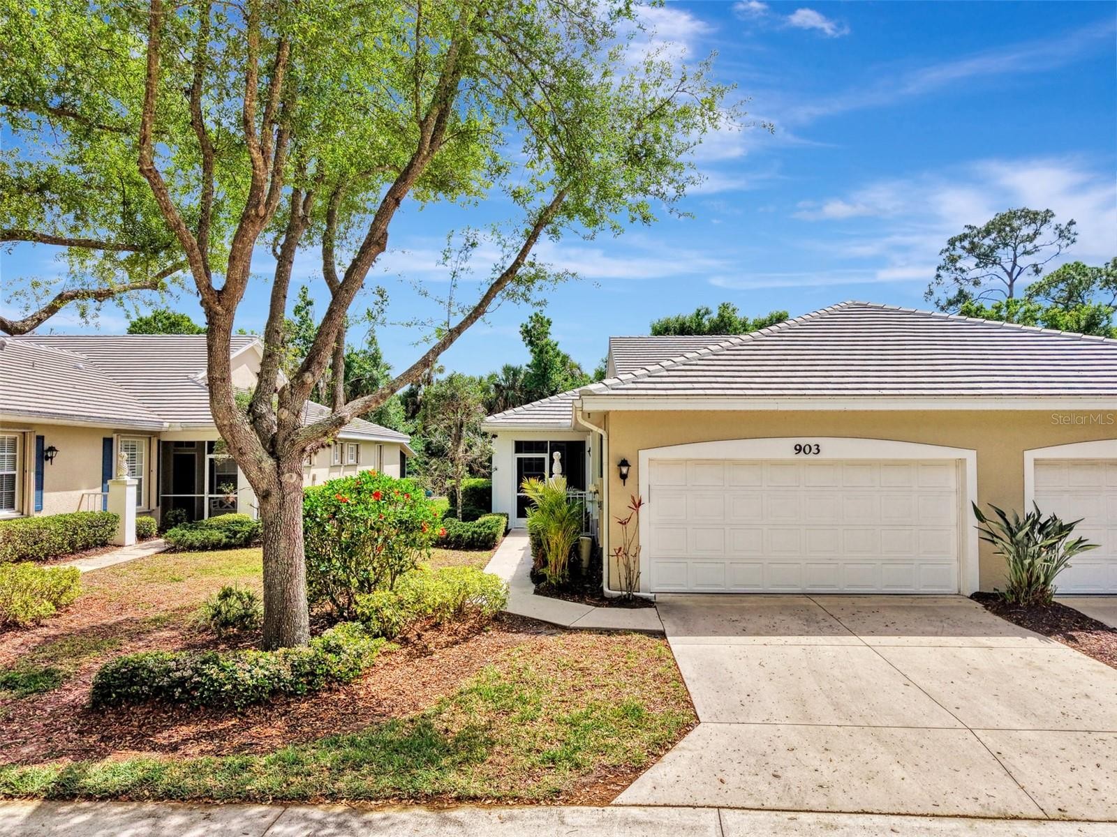 Nestled within the desirable Stratford on the Green enclave of Plantation in Venice, this impeccably maintained 2-bedroom, 2-bath villa with a versatile den offers a move-in-ready lifestyle that’s becoming harder to find. Thoughtfully updated and meticulously cared for, the home features a beautifully renovated kitchen and baths, along with updated flooring throughout creating a clean, modern feel that is both stylish and functional. What truly sets this villa apart is the ease of living. Outfitted with Storm Smart hurricane shutters that lock in the center and a Storm Smart roll-down screen on the lanai, storm preparation becomes simple—just lock and go. A brand-new roof (2024) and regularly maintained HVAC add another layer of confidence, showing this home has been proactively maintained in all the right ways. Step outside and enjoy your own private retreat. The oversized lanai with clear-view screening offers a peaceful space to relax or entertain, while the screened front porch invites in the coastal breeze. The community pool is just a short stroll away, making it easy to enjoy resort-style living without the upkeep. This villa is part of a condo-style association designed for true low-maintenance living. Fees include insurance on the structure (from drywall out), wind coverage, roof reserves, exterior painting, lawn care, pest control, termite prevention, pool maintenance, and full community management—along with water, trash, and cable/internet services. Simply put, everything is handled for you. Located within the sought-after Plantation community, residents have the option to join the Plantation Golf & Country Club while enjoying close proximity to Wellen Park, CoolToday Park (home of the Atlanta Braves Spring Training), and the stunning Gulf Coast beaches. If you’ve been searching for a home that combines thoughtful updates, smart storm protection, and truly maintenance-free living—this is Coastal Living, reimagined.