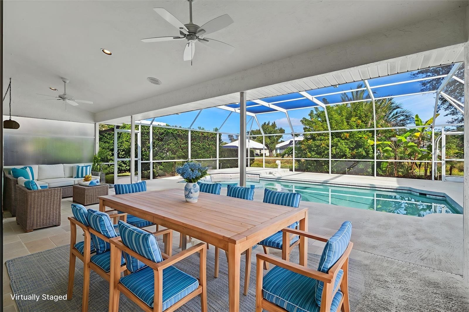 Priced to Sell! Welcome to this beautifully updated Chestnut Creek Estates pool home, offering the perfect blend of comfort, space, and timeless Florida charm. This home is not located in a flood zone, features a low HOA fee of only $600 per year, and is centrally located in the heart of Venice, just minutes from downtown, shopping, dining, and the beaches. Featuring 3 bedrooms, 2 bathrooms, a 2-car garage, and 2,294 square feet under air, this home is tucked into one of Venice’s most picturesque and sought-after communities. From the moment you step through the double front doors, you are greeted with a stunning view of the expansive backyard and impressive pool and lanai area, creating an immediate sense of privacy and relaxation. The thoughtfully designed split floor plan offers two separate living areas, ideal for both everyday living and entertaining. A formal dining room provides ample space for family gatherings, while the open family room features a beautiful fireplace, decorative mantel, and crown molding. The bright kitchen offers a breakfast bar, dinette seating, and large picture windows overlooking the pool and tranquil pond beyond, making it a perfect spot to start or end your day. Guest bedrooms are generously sized with walk-in closets, and the guest bathroom conveniently opens to the pool area. The primary suite is a true retreat, complete with sliding doors to the pool, two large walk-in closets, and a spacious ensuite bath featuring dual vanities, a soaking tub, and a separate walk-in shower. Additional highlights include a large laundry room with utility sink and folding counter, central vacuum system, abundant storage throughout, and an oversized garage (20x22) finished with indoor-outdoor carpeting. The home has been meticulously maintained and offers significant upgrades, including a tile roof installed in 2021, new AC in 2023, quartz kitchen countertops, updated kitchen appliances from 2022–2025, pool heater in 2021, new pool motor in 2023, pool pump in 2025, and fresh interior and exterior paint. Set within Chestnut Creek, a beautifully maintained community featuring 20 scenic lakes and a striking central lake with a bird rookery island, residents enjoy peaceful walking and biking paths, lush landscaping, and a true sense of community. With easy access to I-75, golf courses, beaches, and Venice’s vibrant downtown, this home offers both serenity and convenience. This is a rare opportunity to own a private, move-in-ready pool home in one of Venice’s most charming neighborhoods.